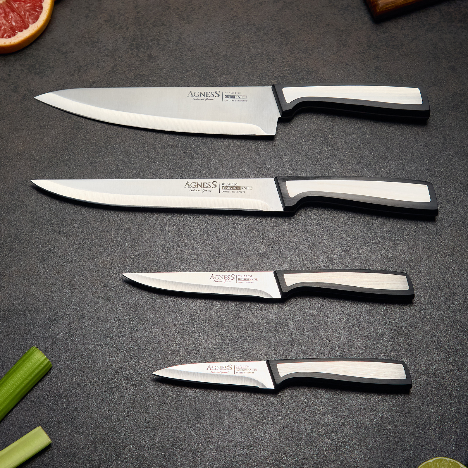Нож - главный инструмент на кухне, а вернее ножи, т.к. даже самый лучший нож не сможет справиться со всем многообразием задач. Выбирая набор ножей AGNESS - Вы приобретаете комплект самых необходимых и чаще всего используемых ножей. Преимущества ножей AGNESS: