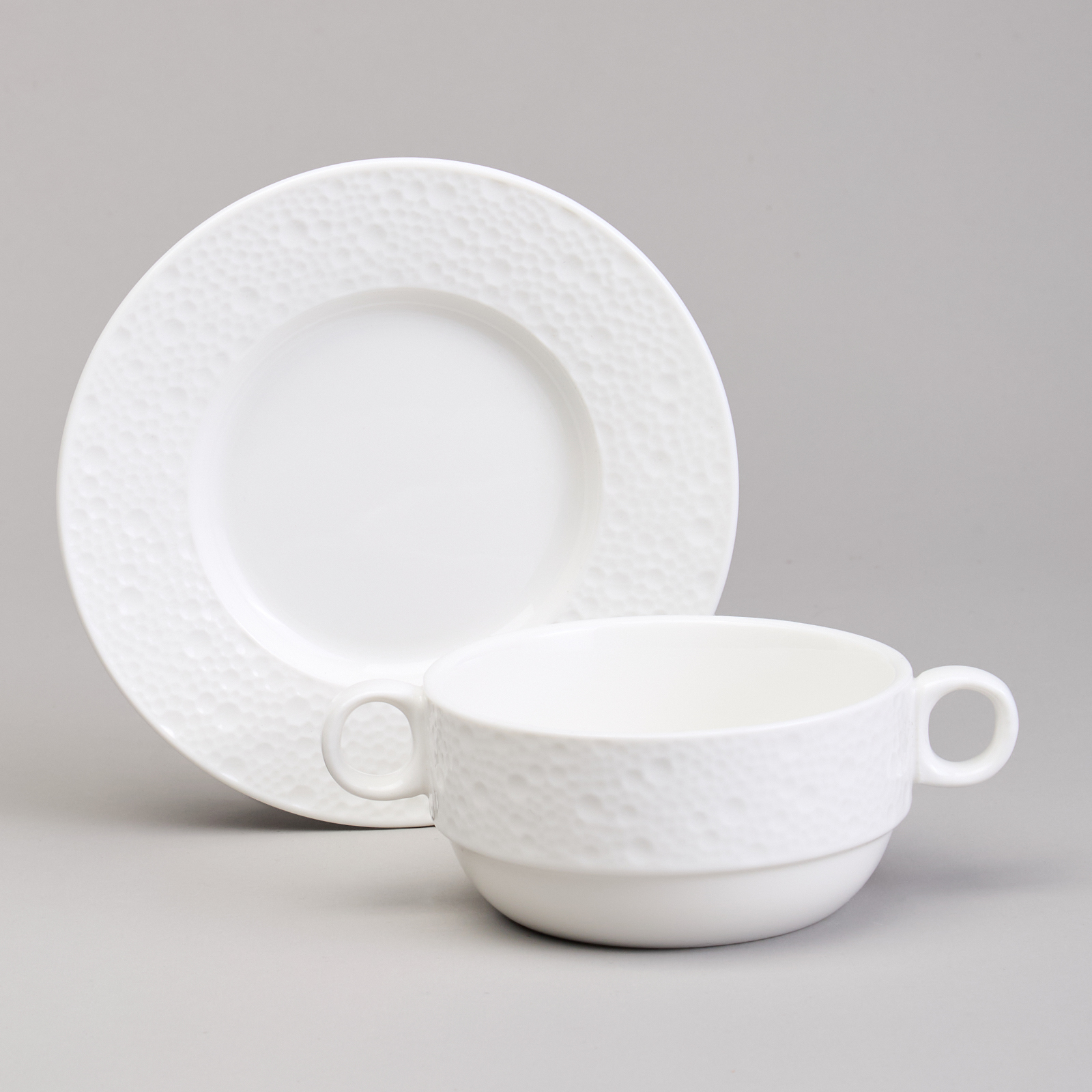 ТМ Lefard представляет Коллекцию посуды из качественного фарфора CAVIER. Белоснежная сверкающая посуда не уступает профессиональной ресторанной посуде по прочности и долговечности. Высокая температура обжига делает посуду термостойкой, гигиеничной и устойчивой к царапинам от столовых приборов. Каждый предмет коллекции украшен неповторимым и очень современным рельефным узором. Уникальный дизайн посуды удобных форм и оптимальных размеров удовлетворит самые изысканные потребности для идеальной сервировки торжественного стола и стола на ежедневный завтрак, обед или ужин. Коллекция универсальна, и станет оптимальным выбором для домашнего использования. Посуда легка в уходе, можно использовать в микроволновых печах, духовых шкафах, мыть в посудомоечной машине.