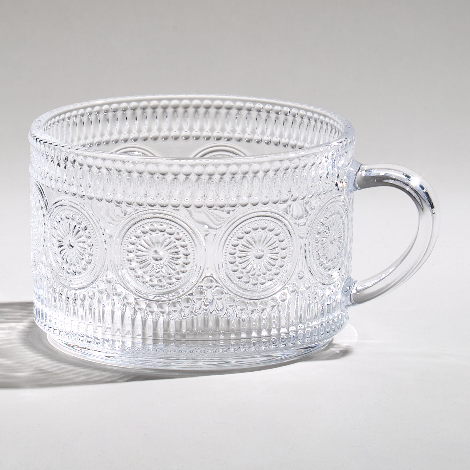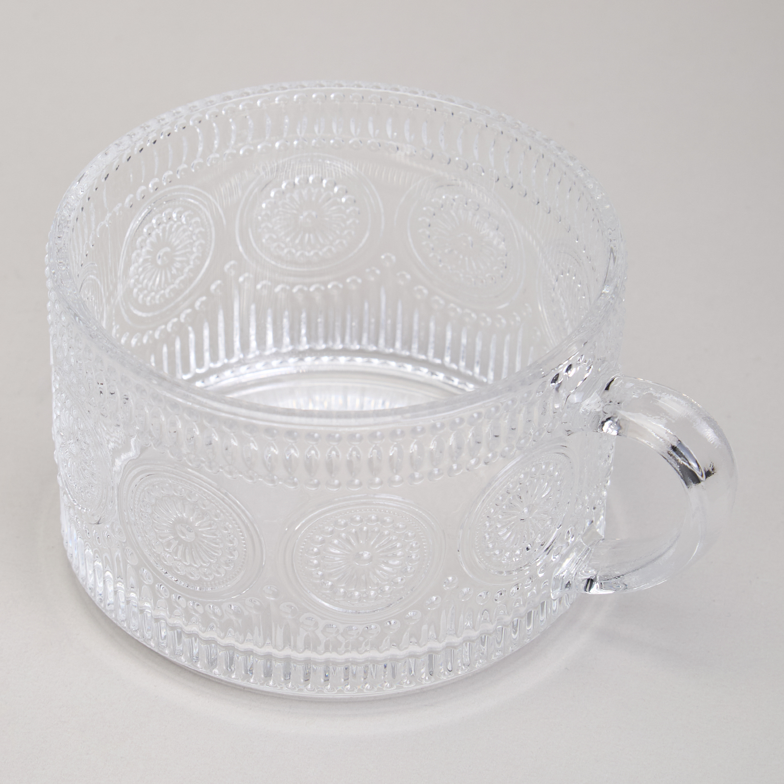 Объем в 400 мл делает её универсальной для различных напитков — от ароматного кофе и чая до освежающих коктейлей, и соков. Прозрачное стекло позволяет насладиться не только вкусом, но и красотой напитка, подчеркивая его насыщенные цвета и текстуры. Узоры на поверхности добавляют визуальное разнообразие, создавая уникальную эстетическую атмосферу.