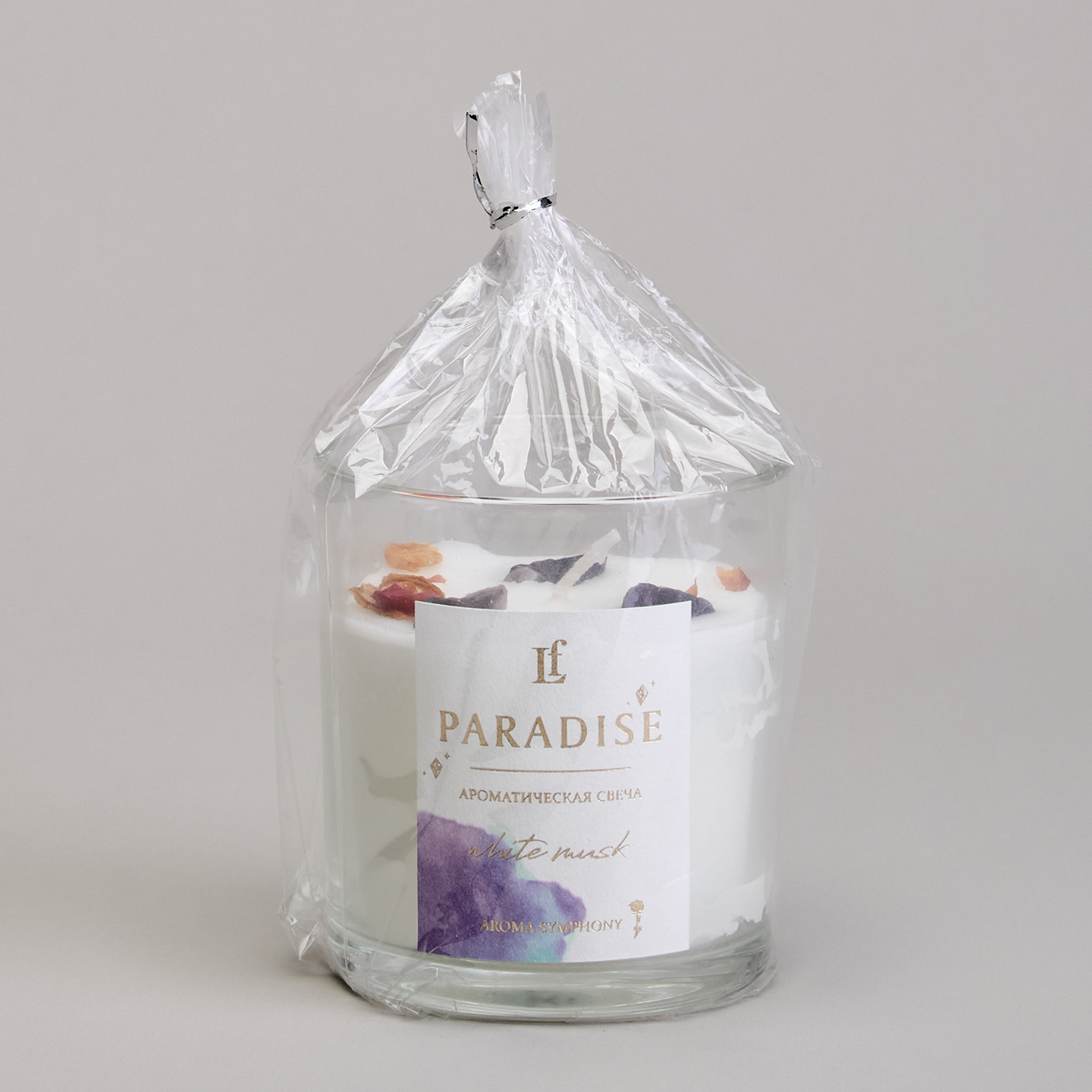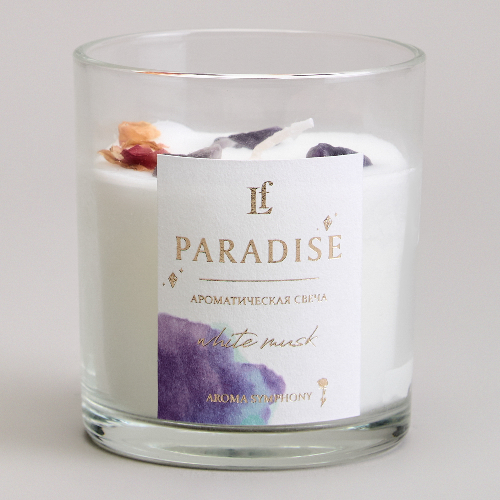 СВЕЧА АРОМАТИЗИРОВАННАЯ В СТАКАНЕ "PARADISE" WHITE MUSK 8*9 СМ МАЛ.= 9ШТ.