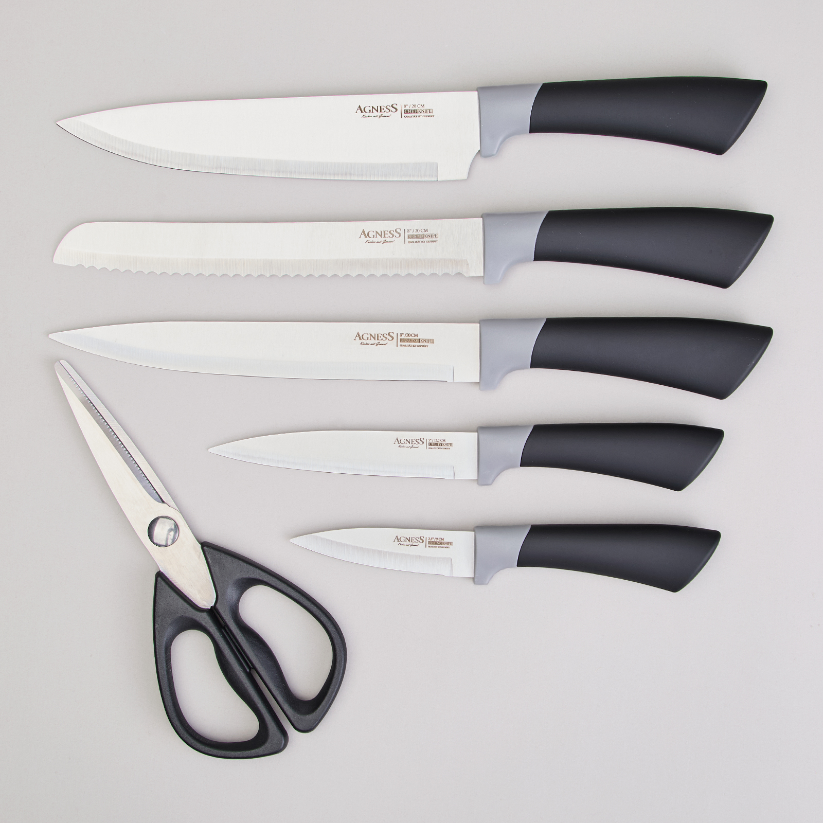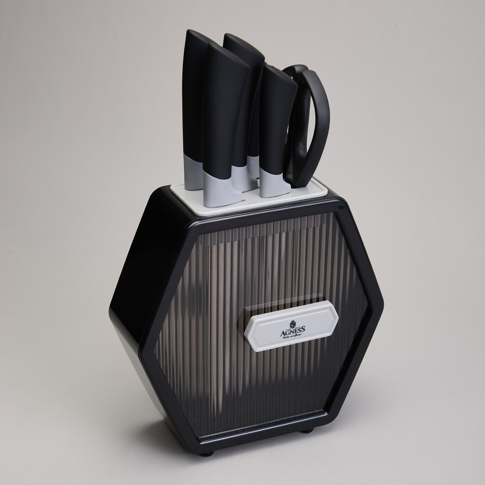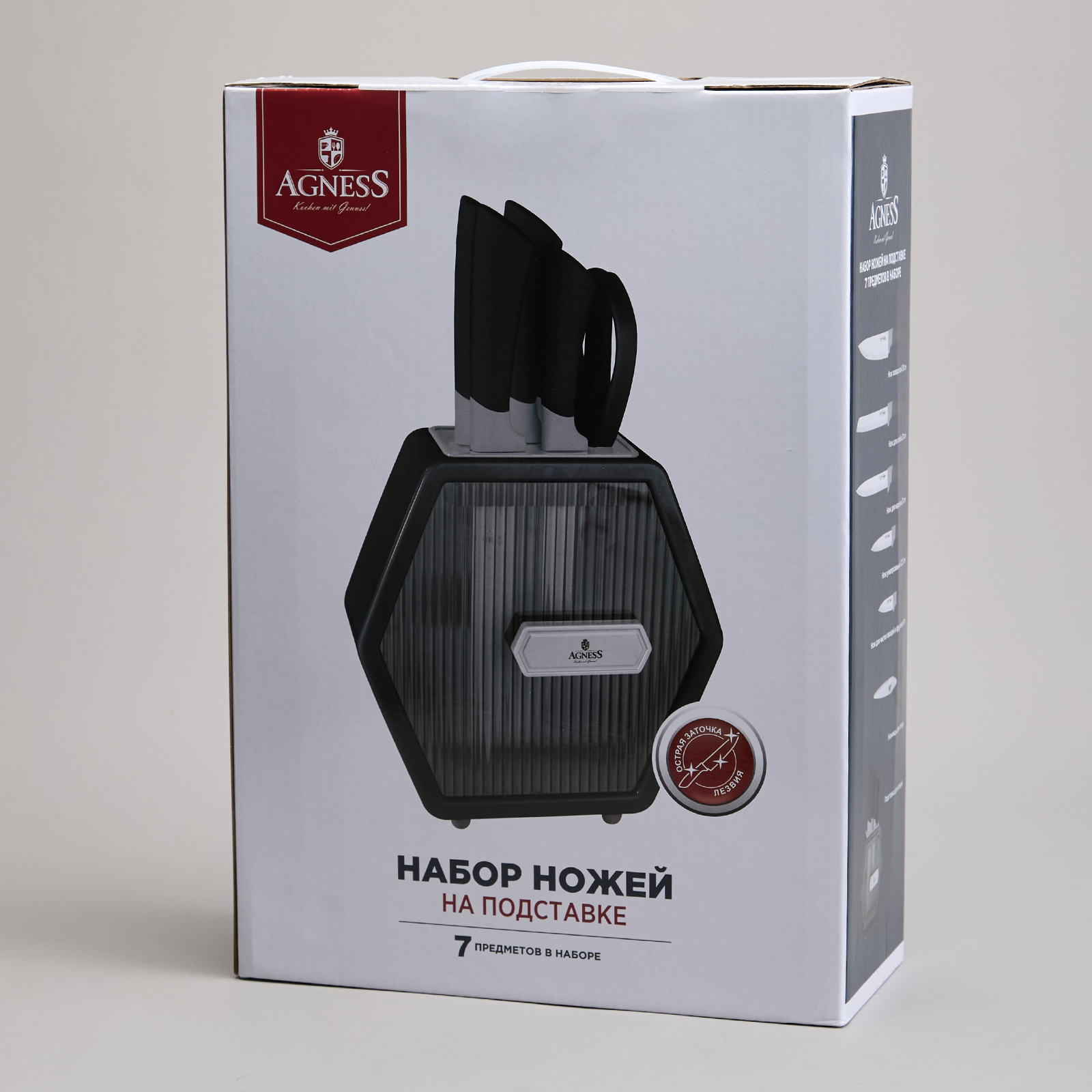 НАБОР НОЖЕЙ AGNESS НА ПЛАСТИКОВОЙ ПОДСТАВКЕ, 7 ПРЕДМЕТОВ