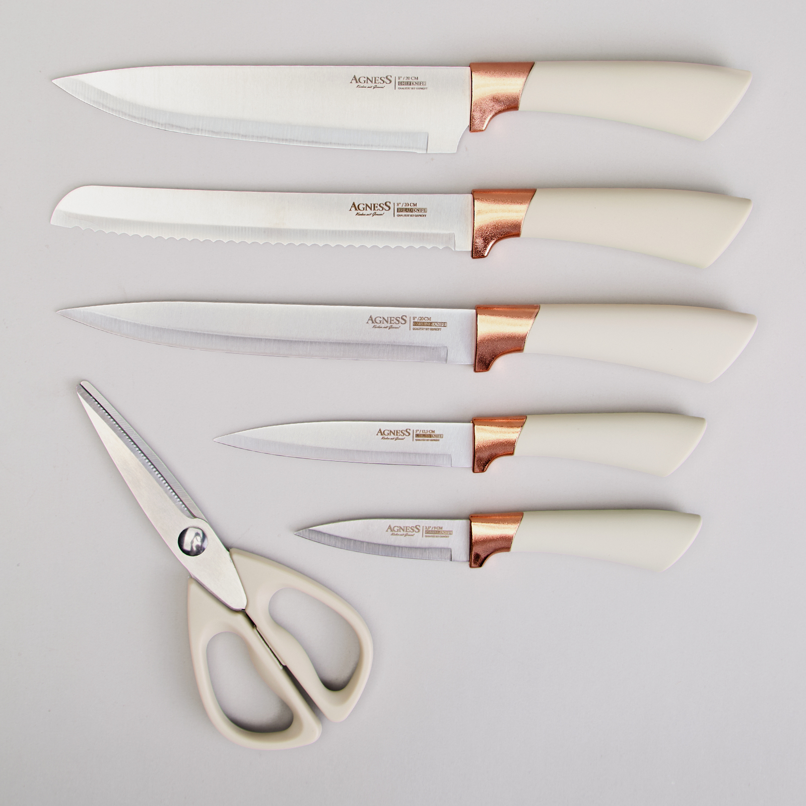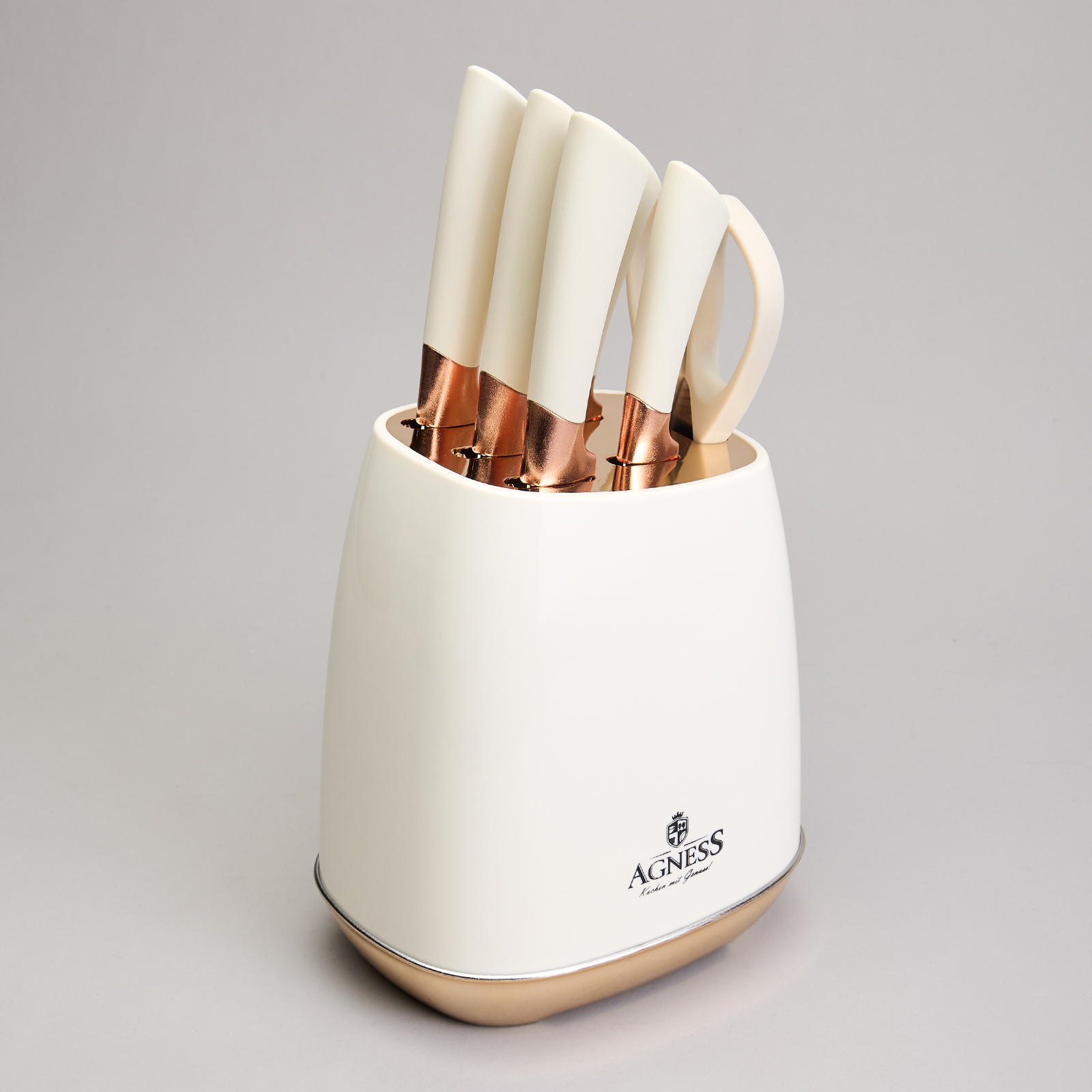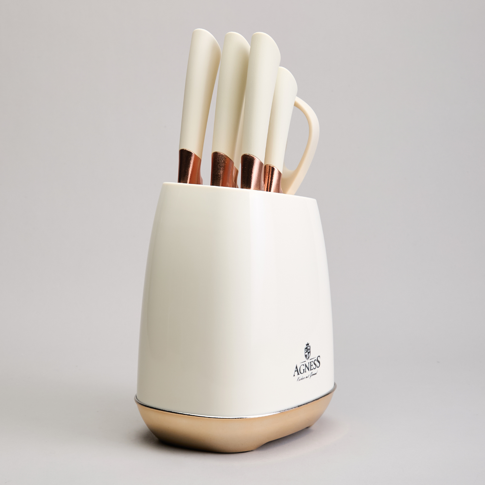 НАБОР НОЖЕЙ AGNESS НА ПЛАСТИКОВОЙ ПОДСТАВКЕ, 7 ПРЕДМЕТОВ