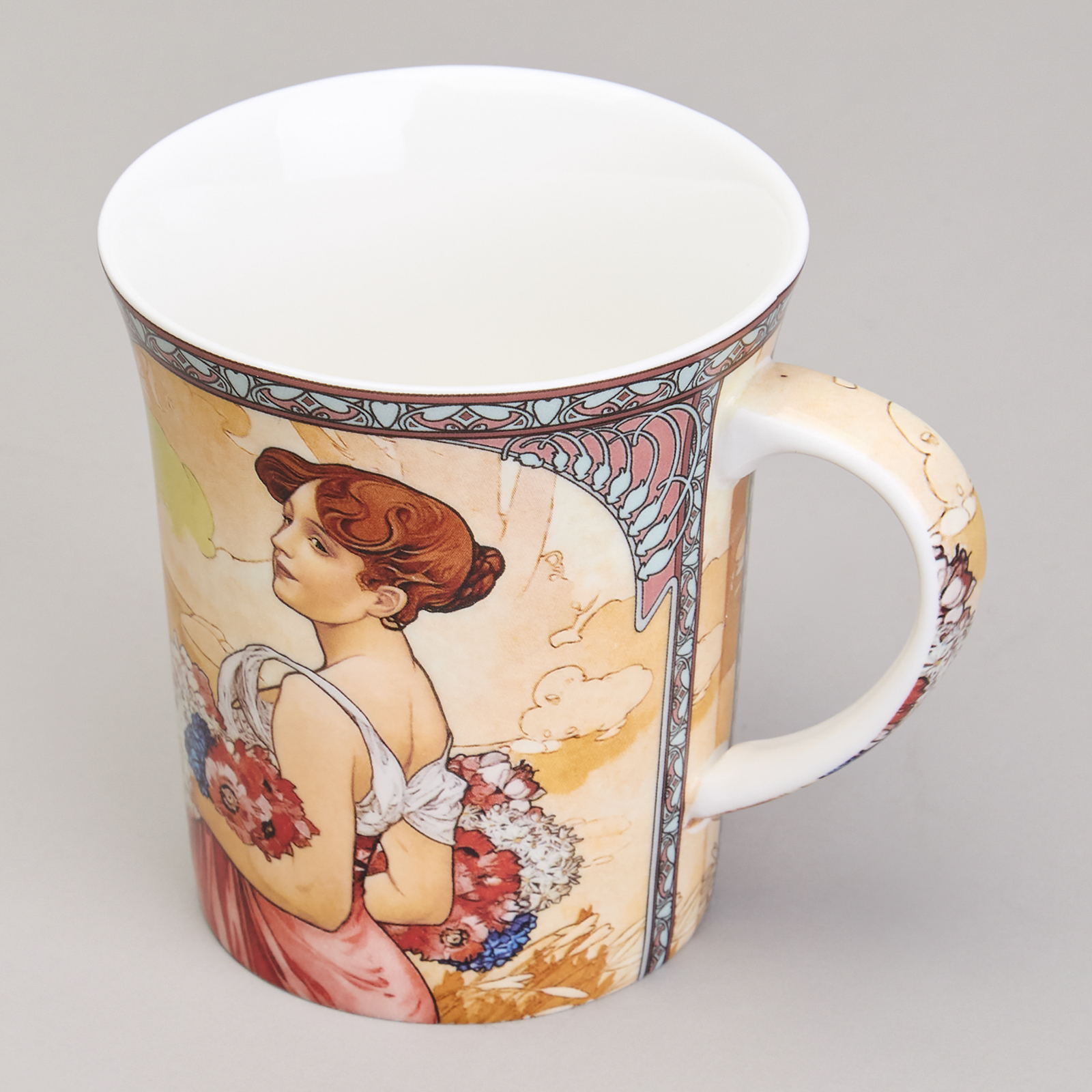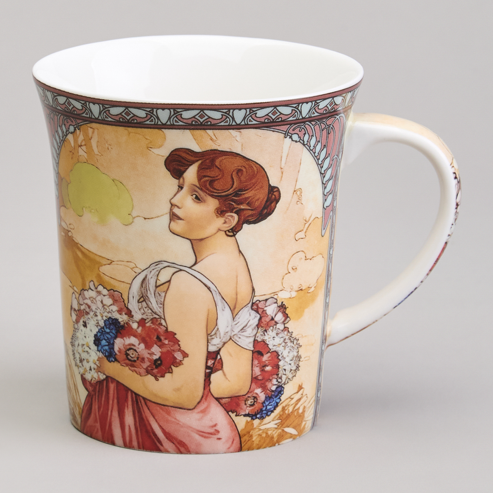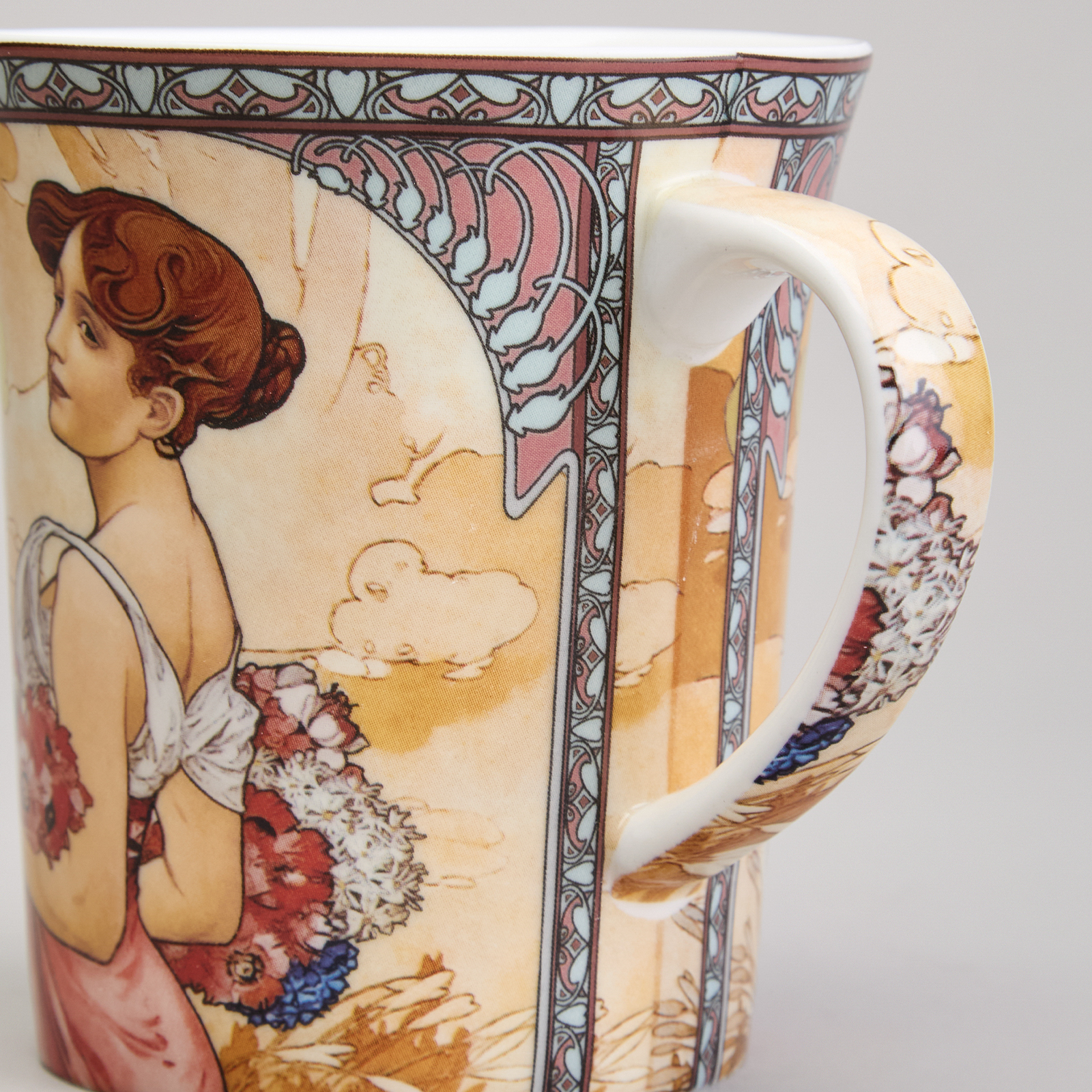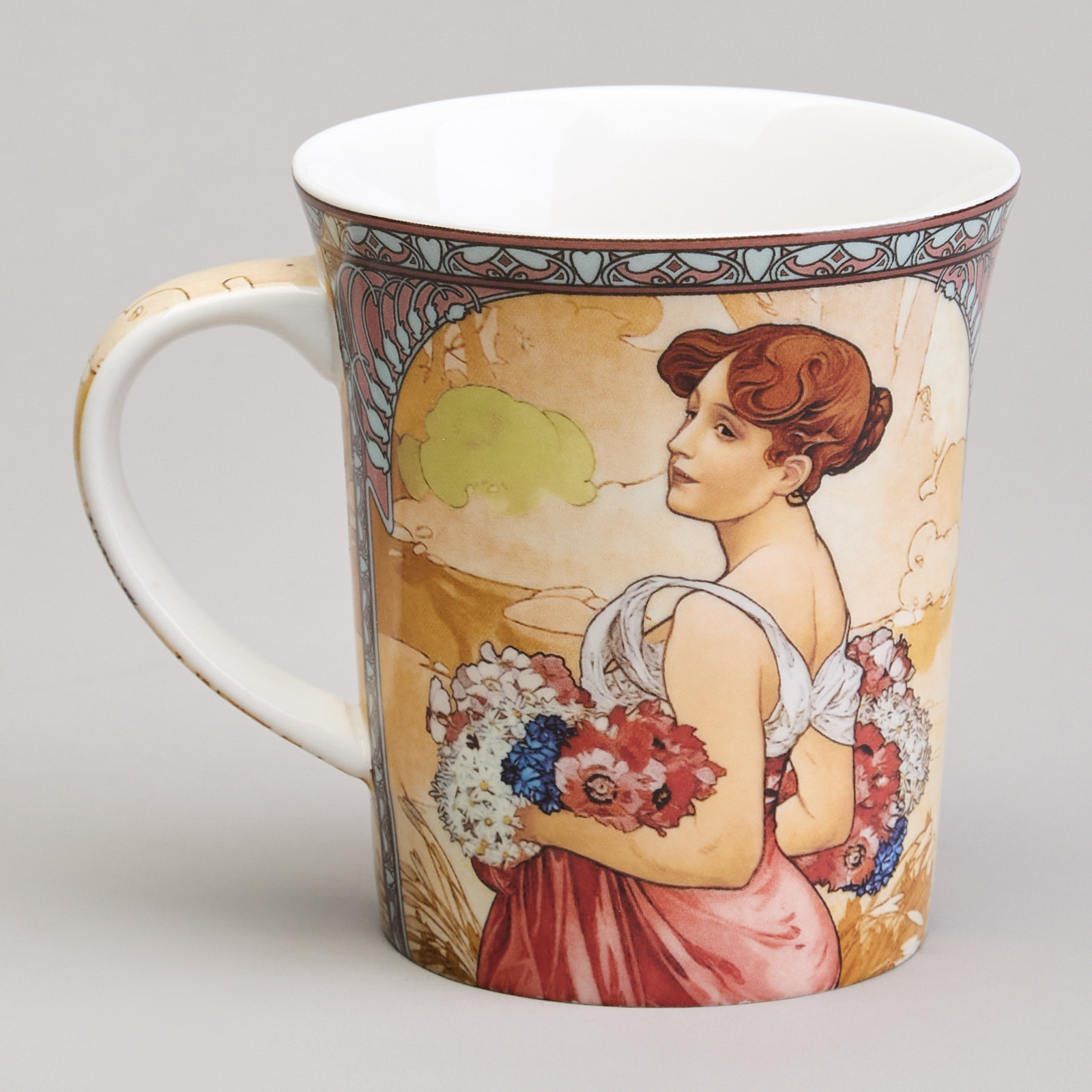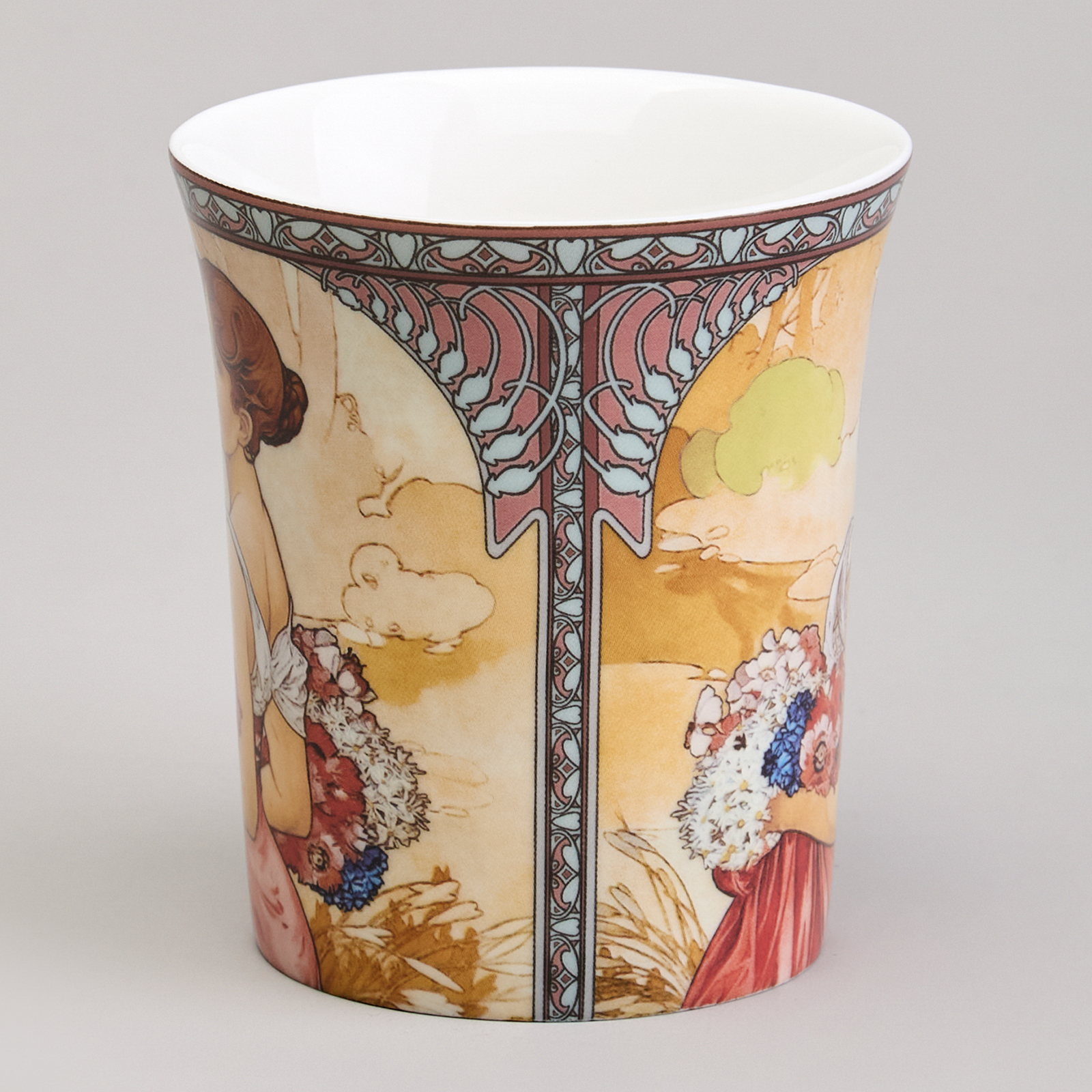 Арт Коллекция для ценителей прекрасного. Изделия из тонкостенного фарфора. Посуда прошла сертификацию, безопасна для контакта с пищевыми продуктами. Декор по мотивам картин Альфонса Мария Мухи. Удобная форма. Отличный подарок. Можно использовать в микроволновой печи и мыть в посудомоечной машине.