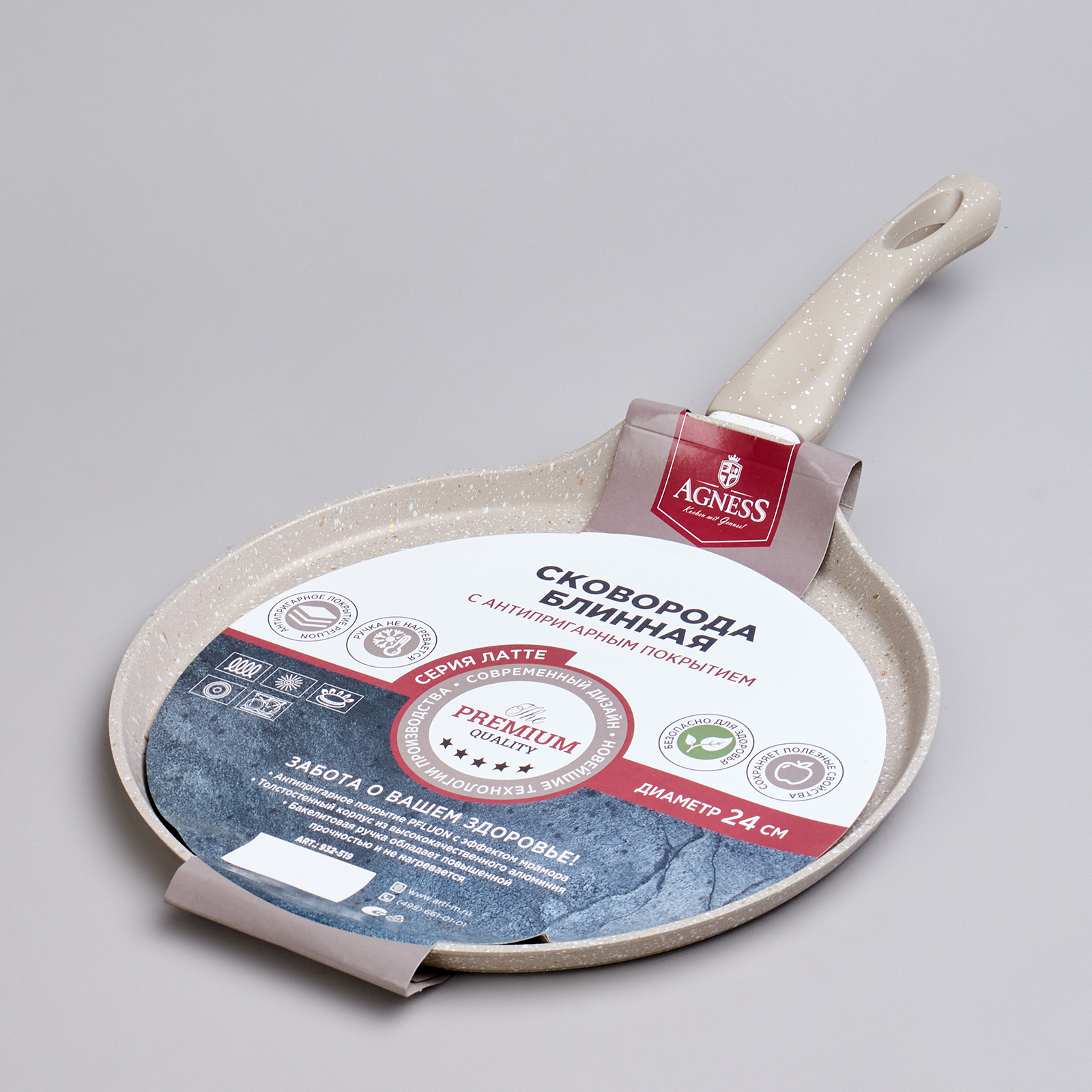 СКОВОРОДА БЛИННАЯ AGNESS С АНТИПРИГАРНЫМ ПОКРЫТИЕМ "LATTE" - это идеальный выбор для тех, кто ценит удобство и функциональность в посуде.