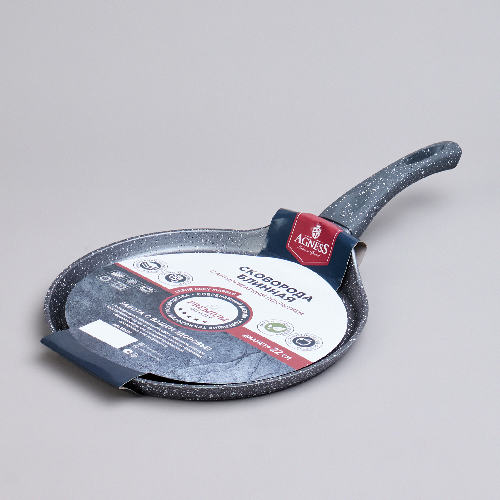 СКОВОРОДА БЛИННАЯ AGNESS С АНТИПРИГАРНЫМ ПОКРЫТИЕМ "GREY MARBLE" - это идеальный выбор для тех, кто ценит удобство и функциональность в посуде.