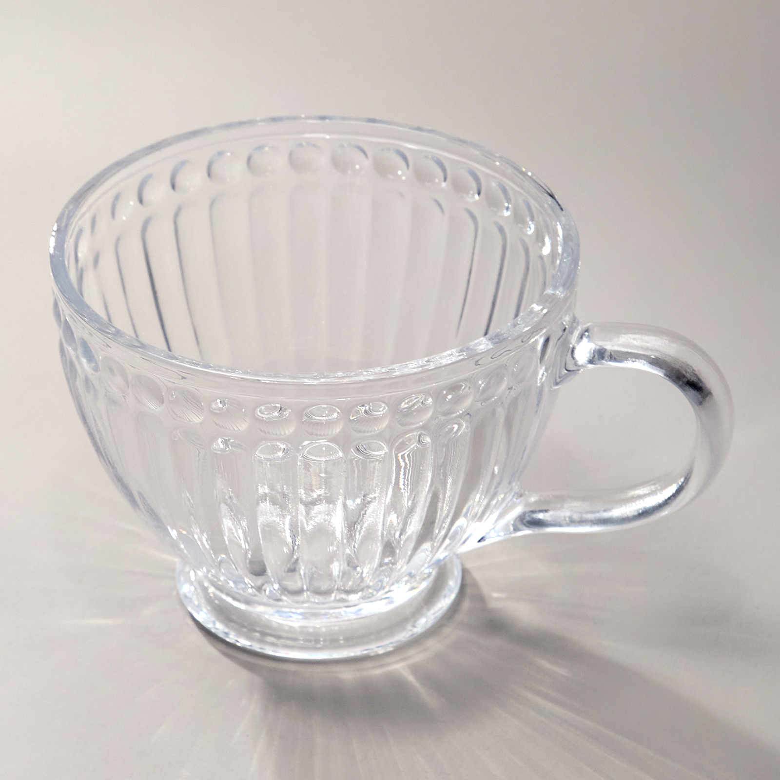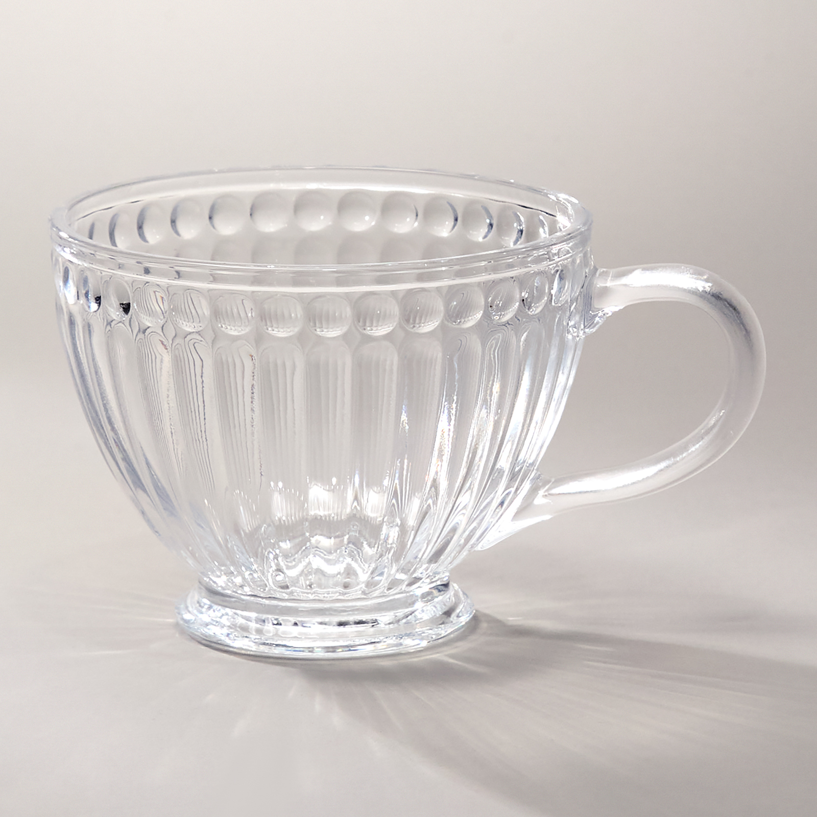 Объем в 420 мл делает её универсальной для различных напитков — от ароматного кофе и чая до освежающих коктейлей, и соков. Прозрачное стекло позволяет насладиться не только вкусом, но и красотой напитка, подчеркивая его насыщенные цвета и текстуры. Узоры на поверхности добавляют визуальное разнообразие, создавая уникальную эстетическую атмосферу.