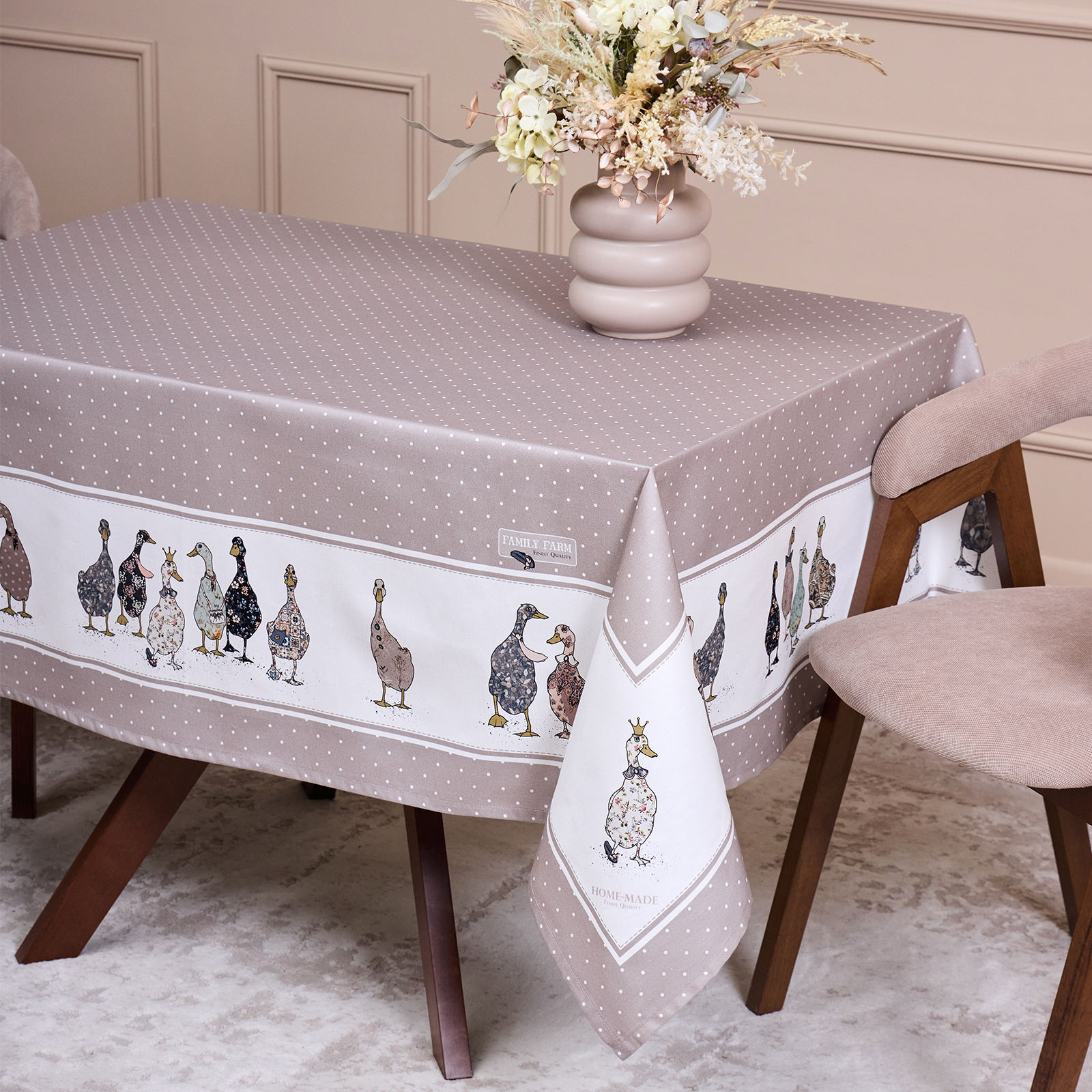 СКАТЕРТЬ "FAMILY FARM" 140Х180СМ ,100% ХЛОПОК, КАПУЧИНО , ТВИЛ, ПРОПИТКА