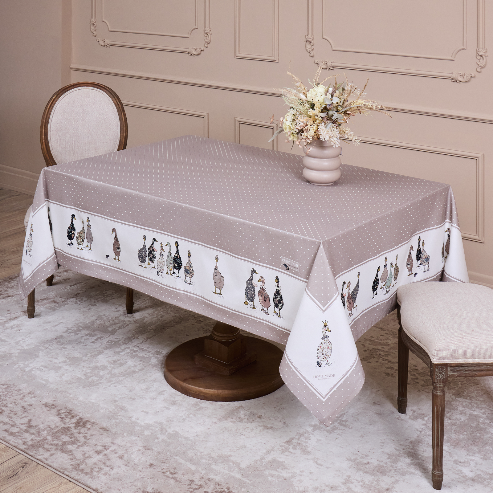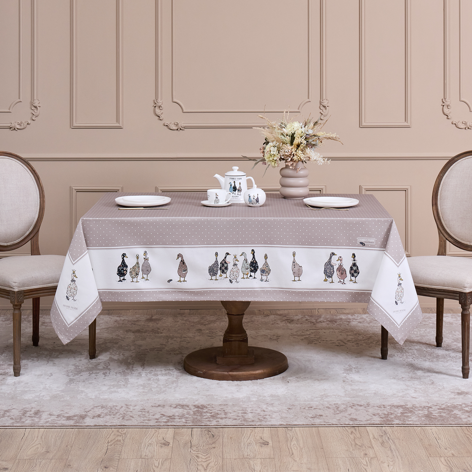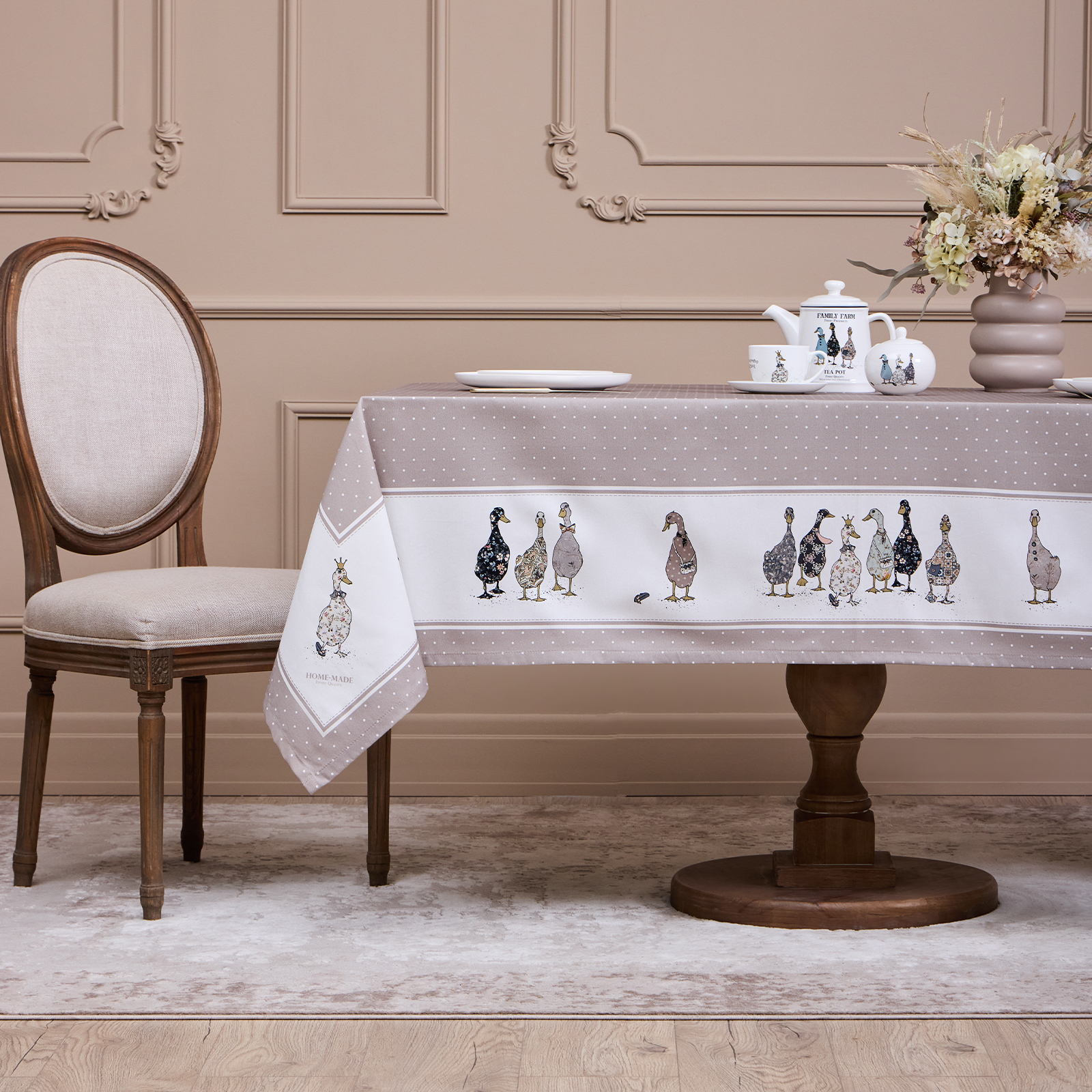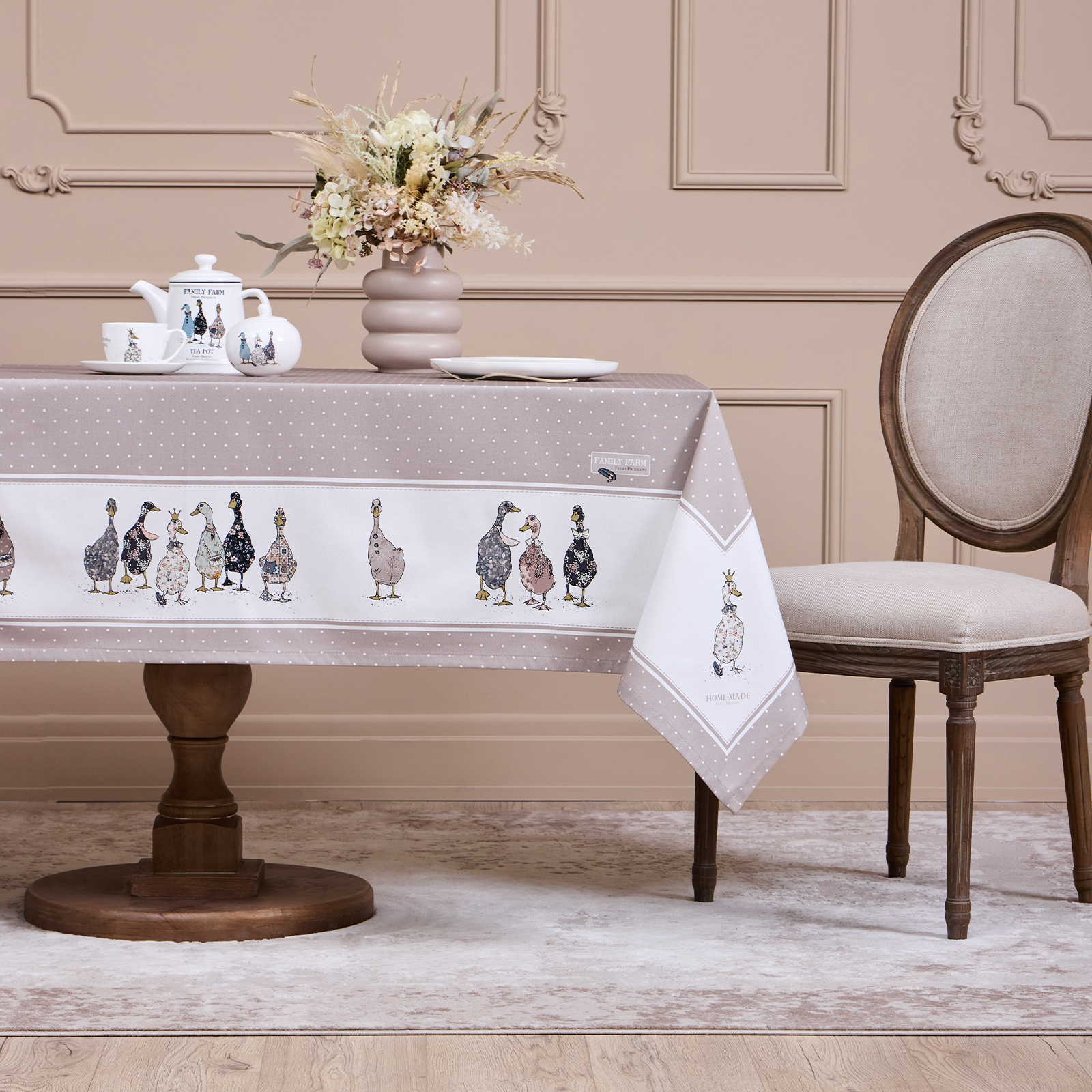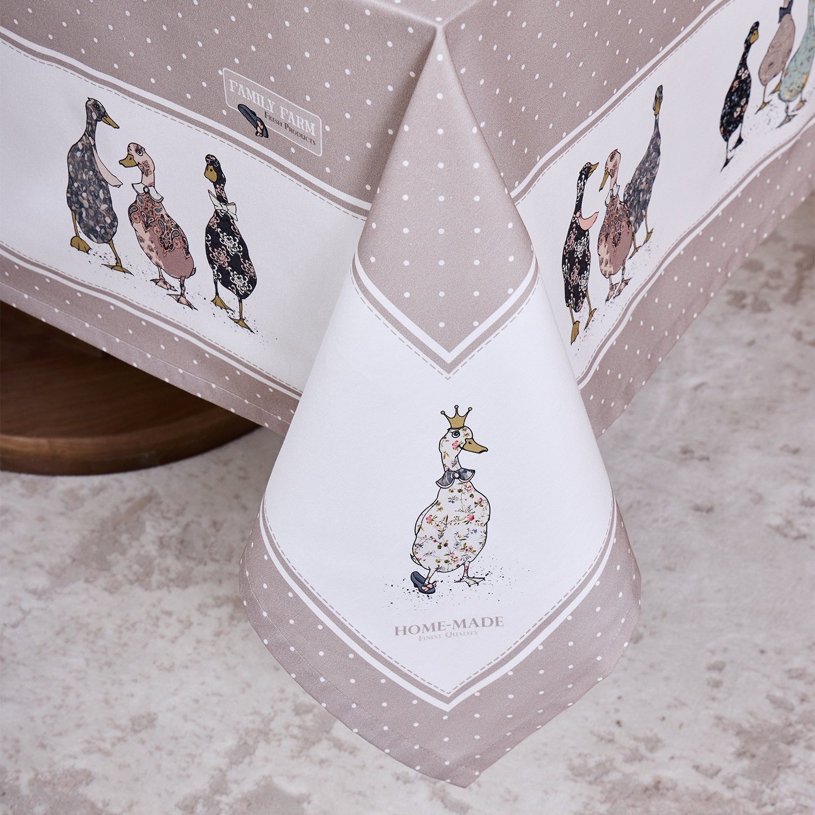 СКАТЕРТЬ "FAMILY FARM" 160Х220СМ , 100% ХЛОПОК, КАПУЧИНО, ТВИЛ, ПРОПИТКА