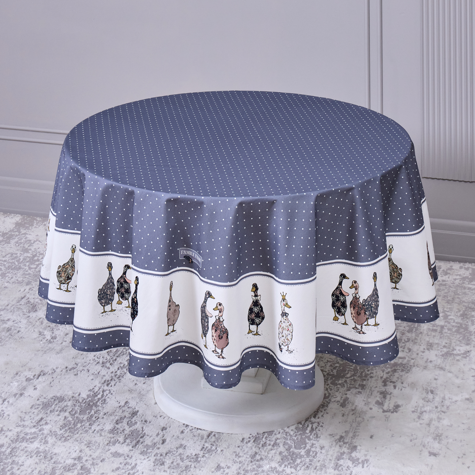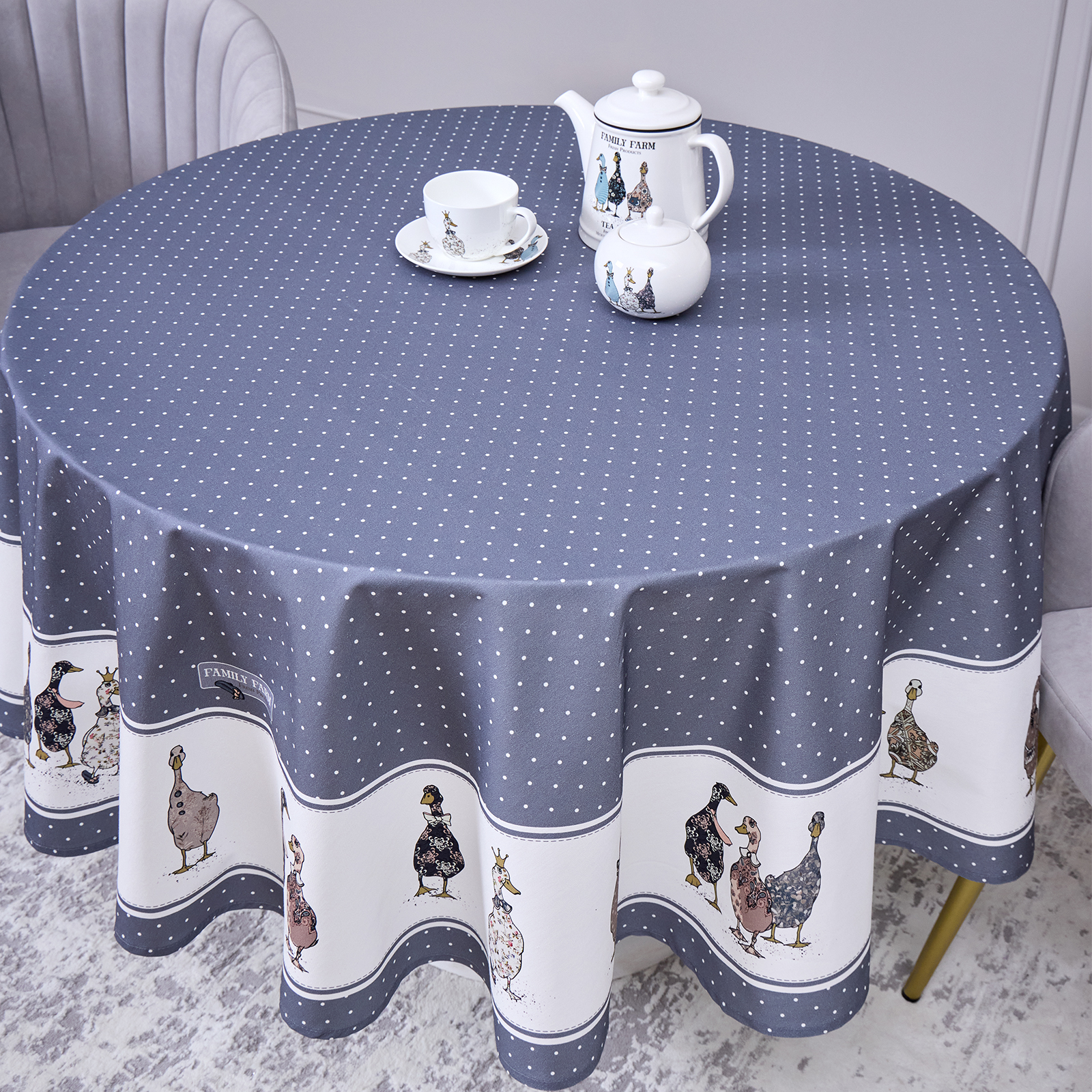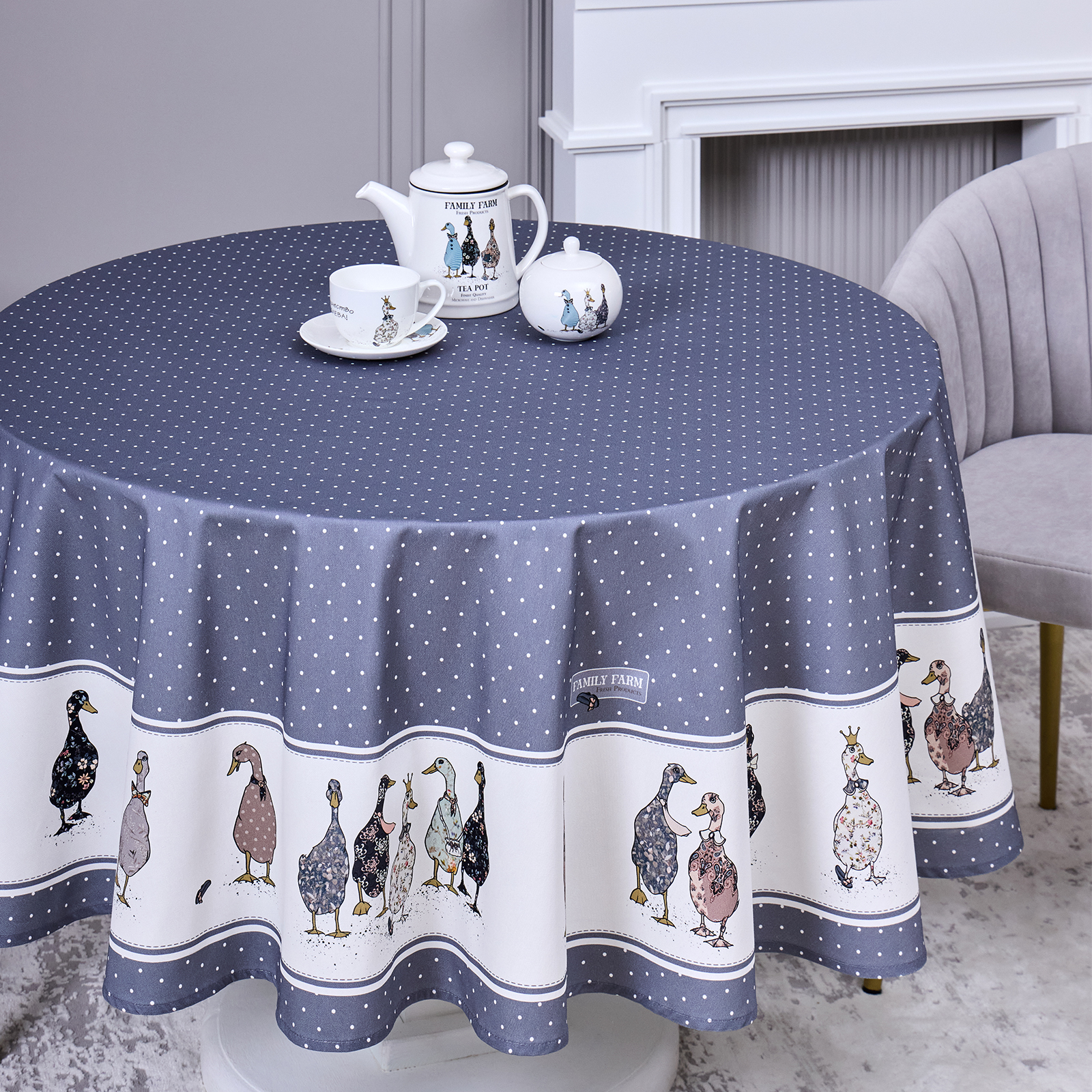 СКАТЕРТЬ КРУГЛАЯ "FAMILY FARM" 190 СМ , 100% ХЛОПОК,ТВИЛ, ПРОПИТКА, ГРАФИТ