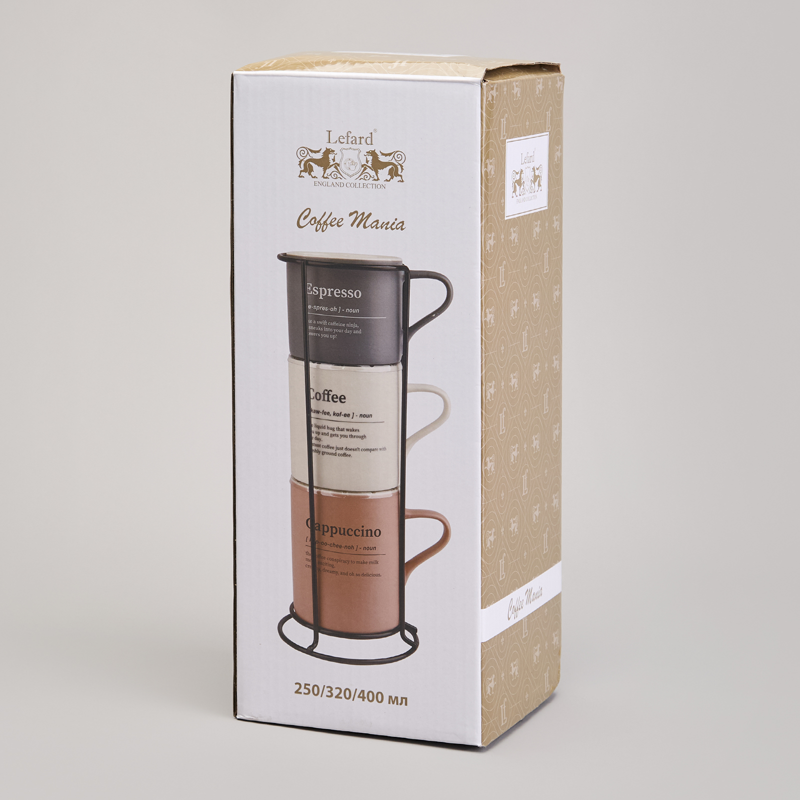 НАБОР КРУЖЕК LEFARD 3ШТ НА МЕТАЛ.ПОДСТАВКЕ 250/320/400МЛ