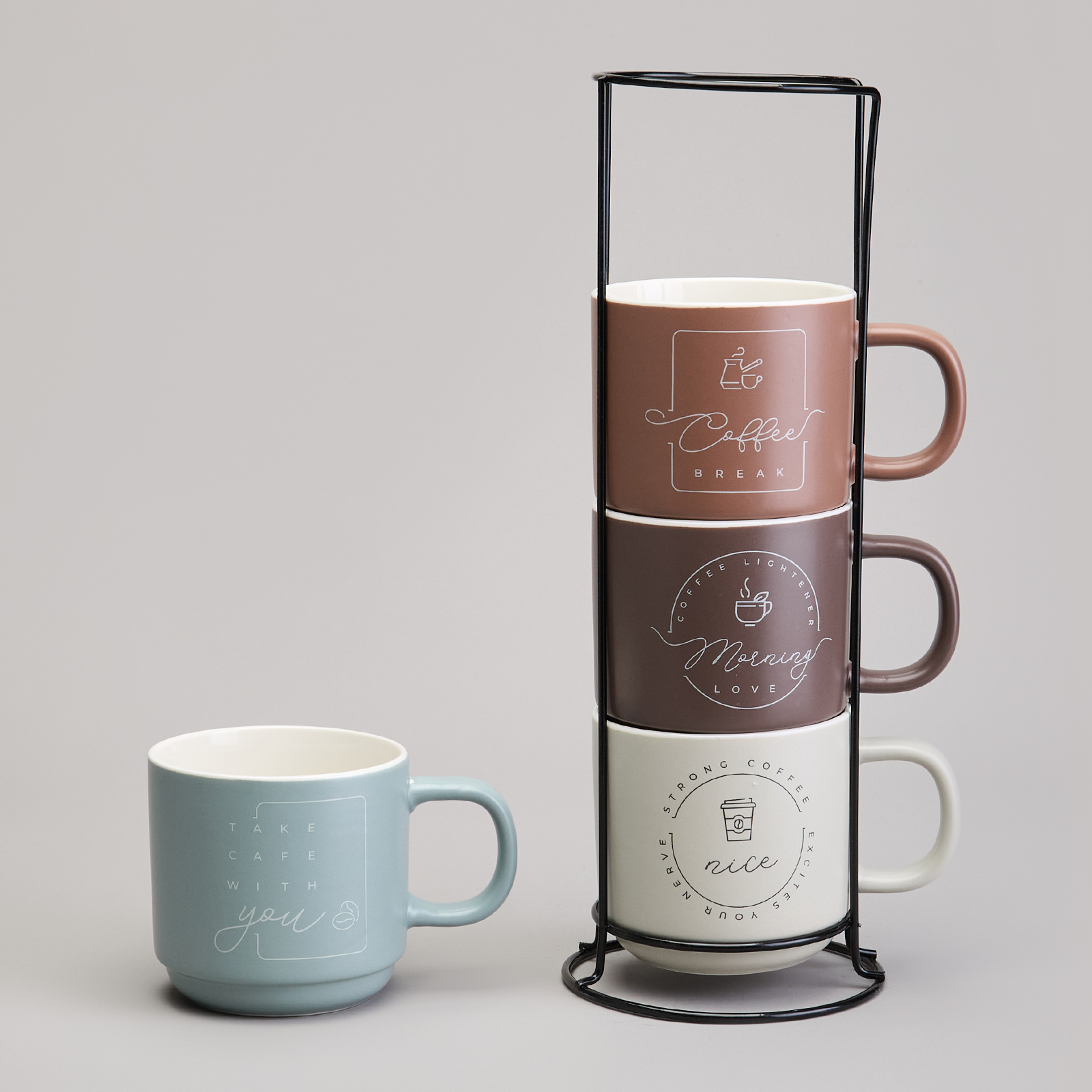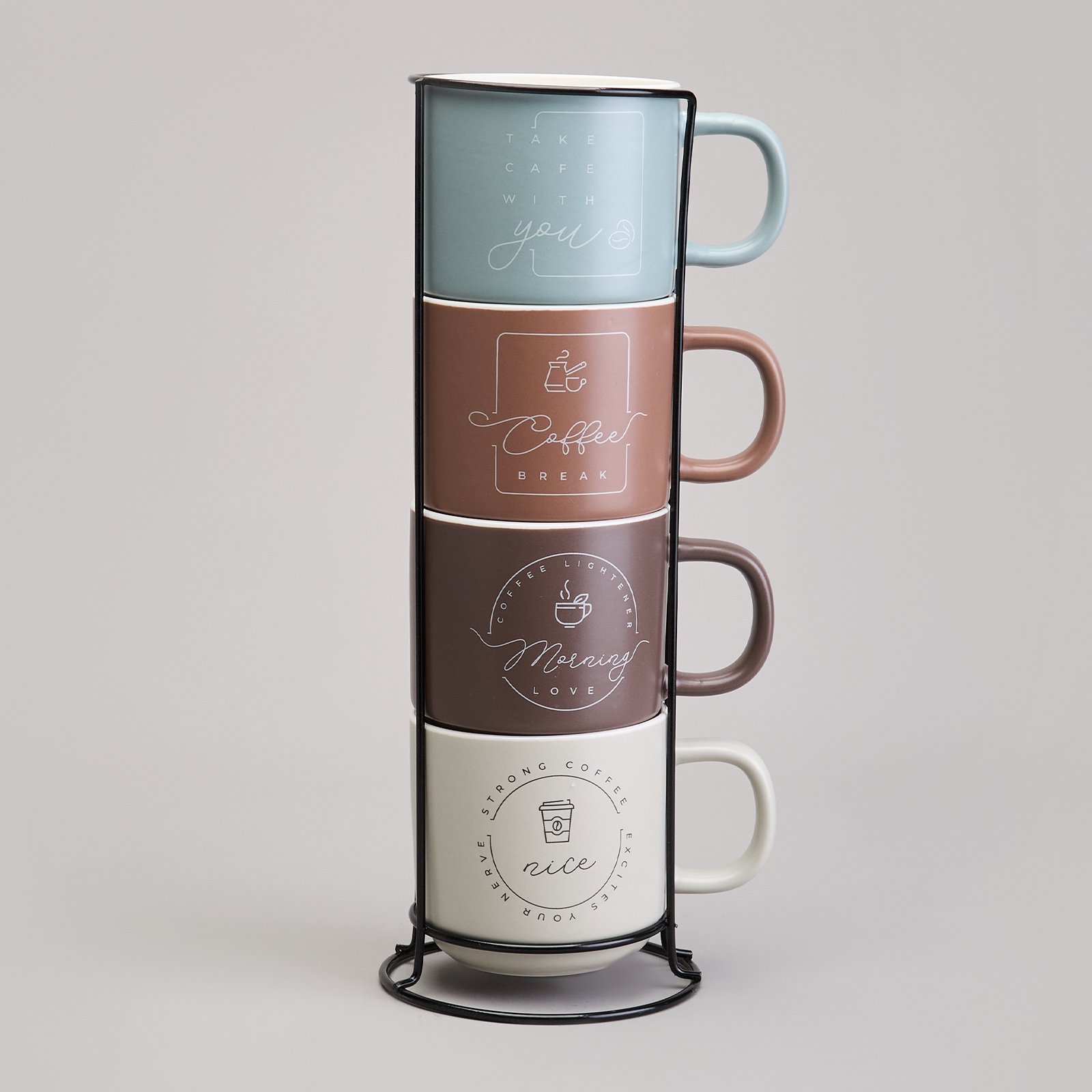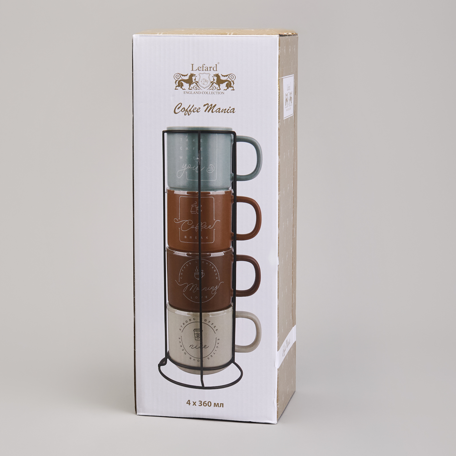 НАБОР КРУЖЕК LEFARD 4ШТ НА МЕТАЛ.ПОДСТАВКЕ 360МЛ