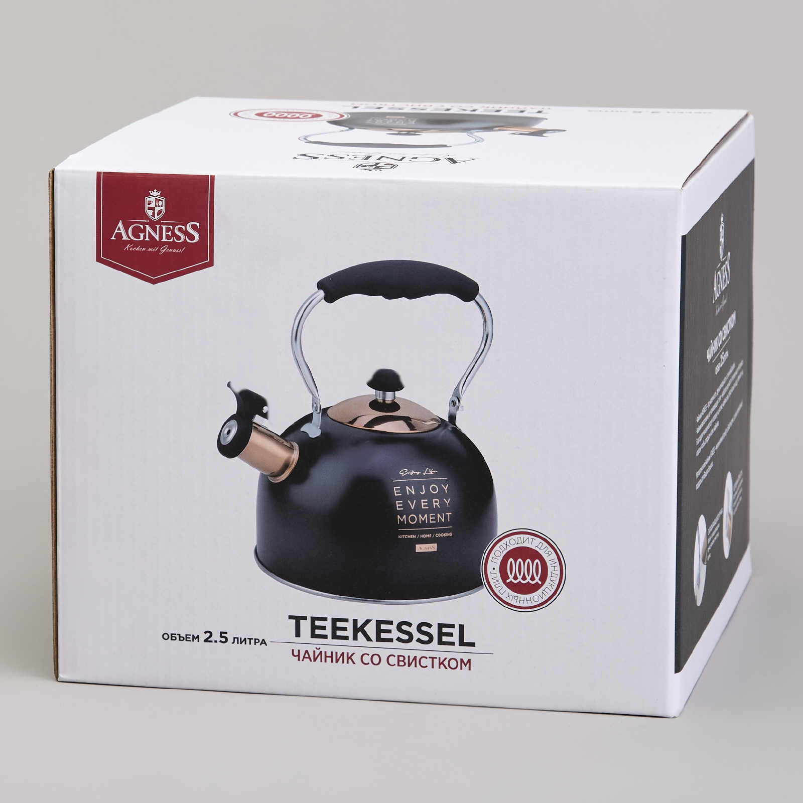 • Благодаря внешнее жаропрочному покрытию и стильному дизайну чайник AGNESS украсит любую кухню