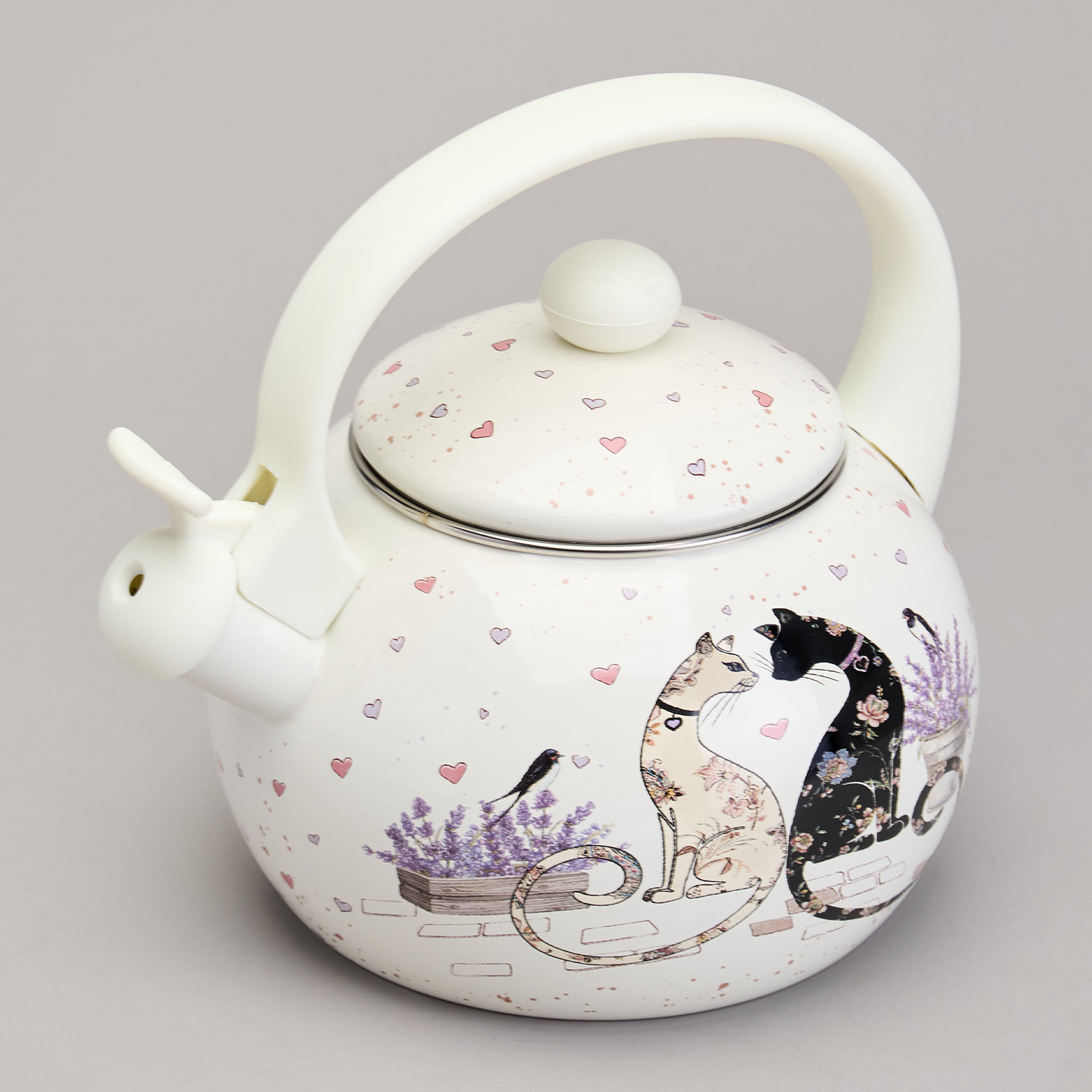 ЧАЙНИК AGNESS ЭМАЛИРОВАННЫЙ СО СВИСТКОМ СЕРИЯ "LAVENDER CATS", 2,2 Л