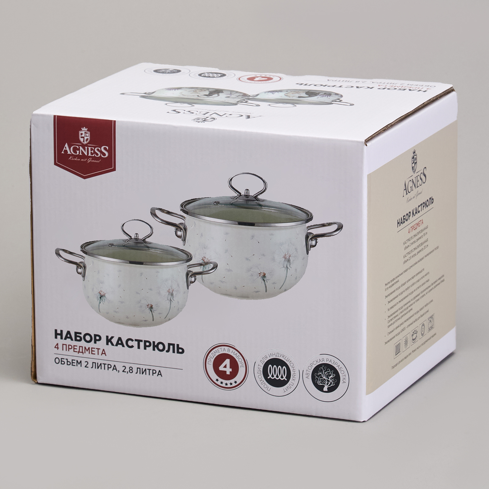 НАБОР КАСТРЮЛЬ ЭМАЛИРОВАННЫЙ, СЕРИЯ "DANDELION" 4ПР. 2,0/2,8Л ДИА.18/20СМ
