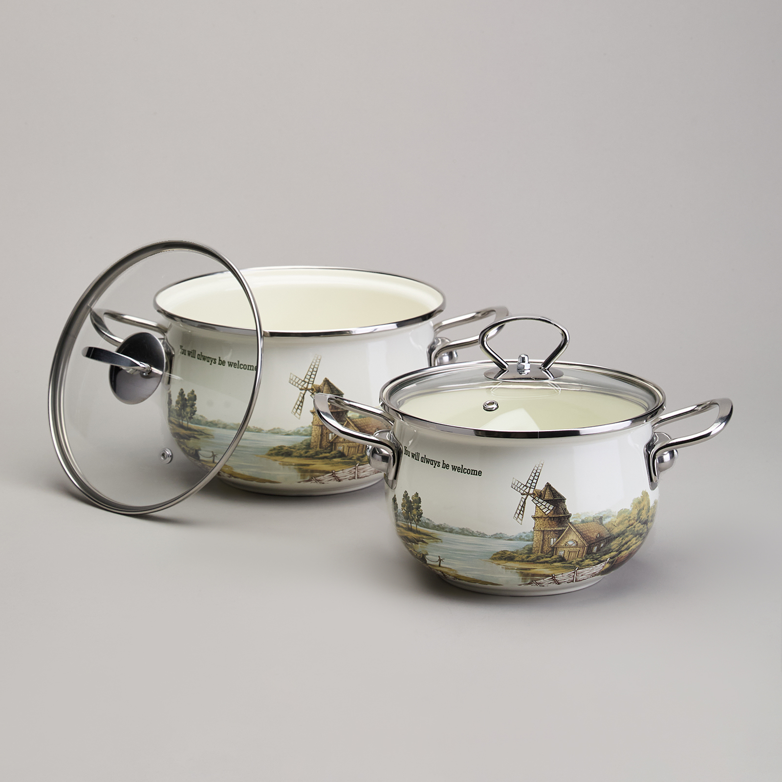 НАБОР КАСТРЮЛЬ ЭМАЛИРОВАННЫЙ, СЕРИЯ "FAMILY HOUSE" 4ПР. 2,0/2,8Л ДИА.18/20СМ