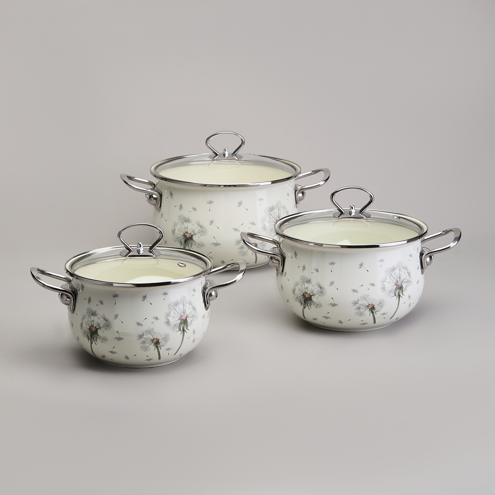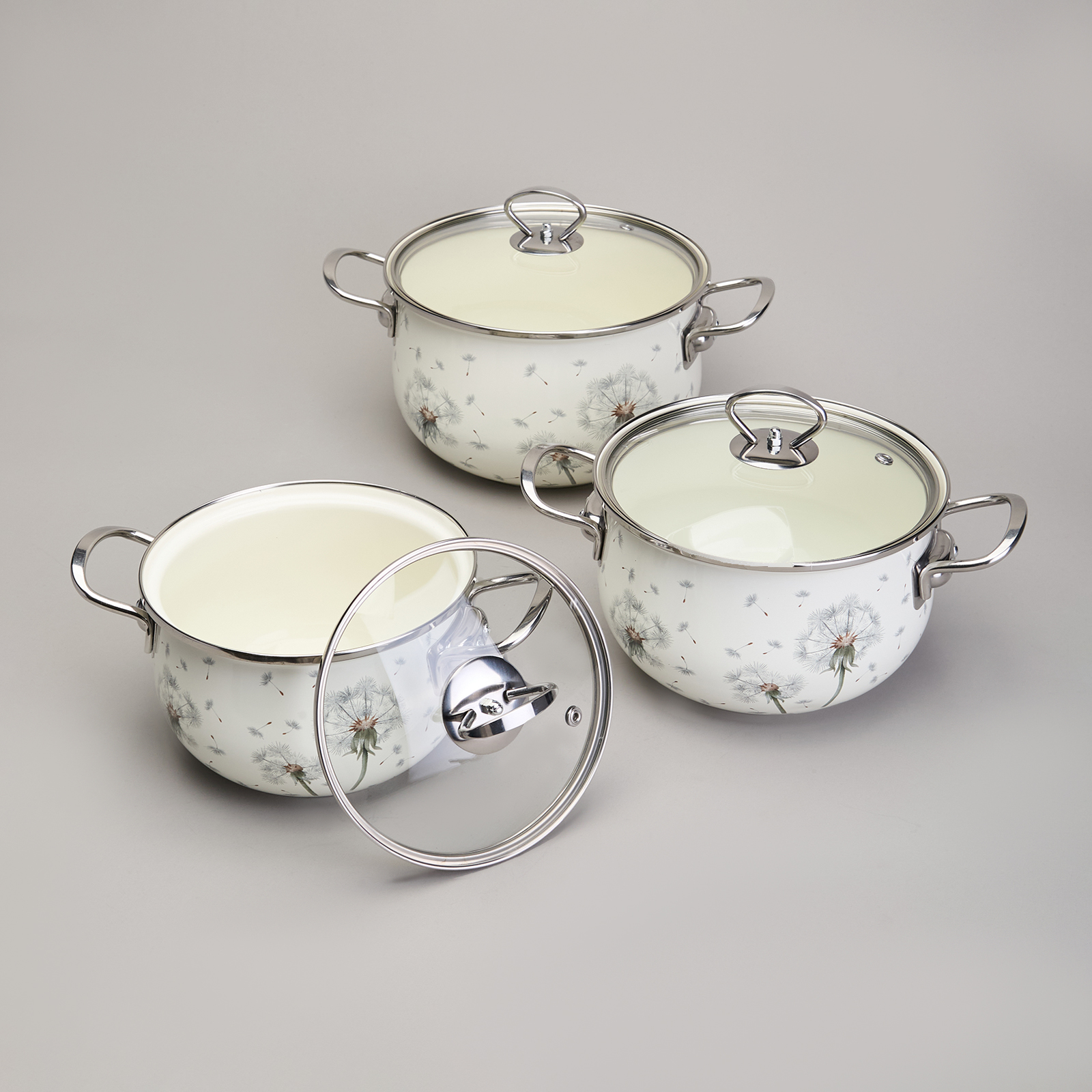 НАБОР КАСТРЮЛЬ ЭМАЛИРОВАННЫЙ, СЕРИЯ "DANDELION" 6ПР. 2,0/2,8/3,8Л ДИА.18/20/22СМ