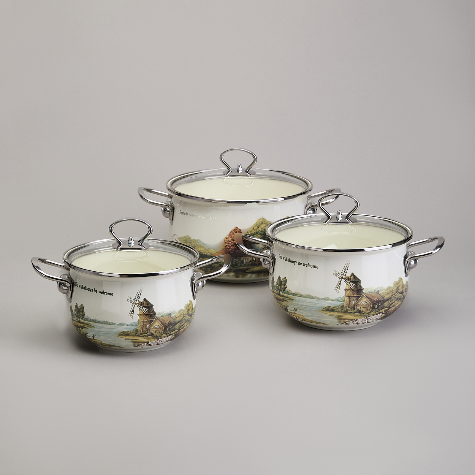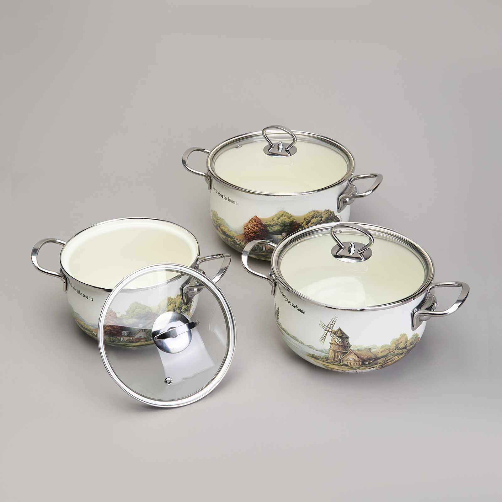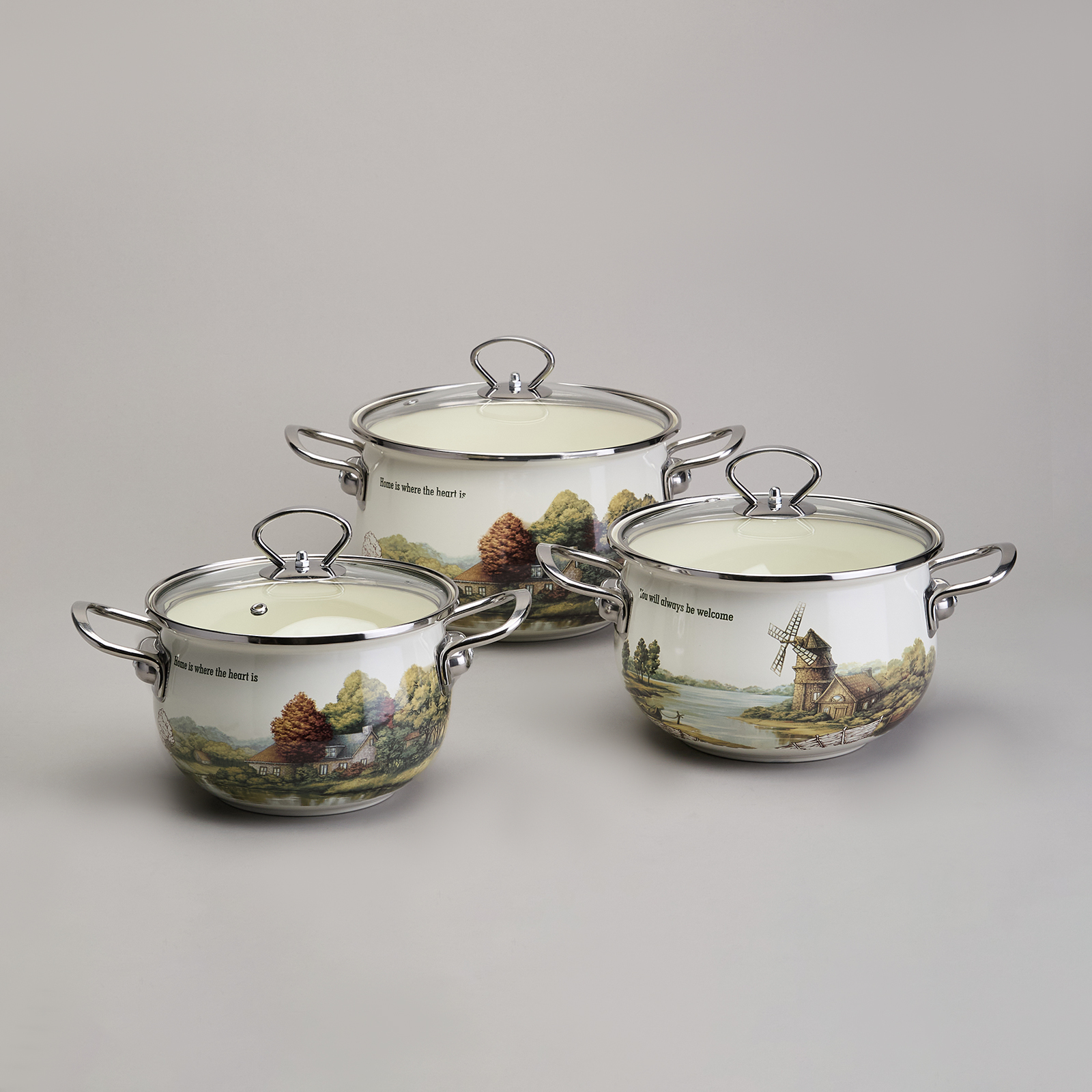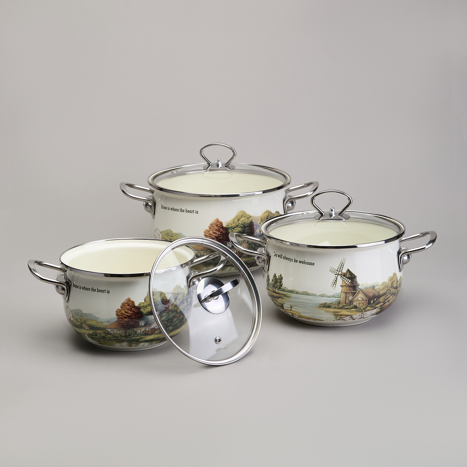 НАБОР КАСТРЮЛЬ ЭМАЛИРОВАННЫЙ, СЕРИЯ "FAMILY HOUSE" 6ПР. 2,0/2,8/3,8Л ДИА.18/20/22СМ