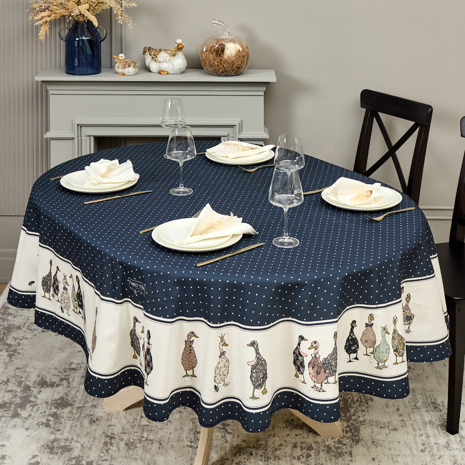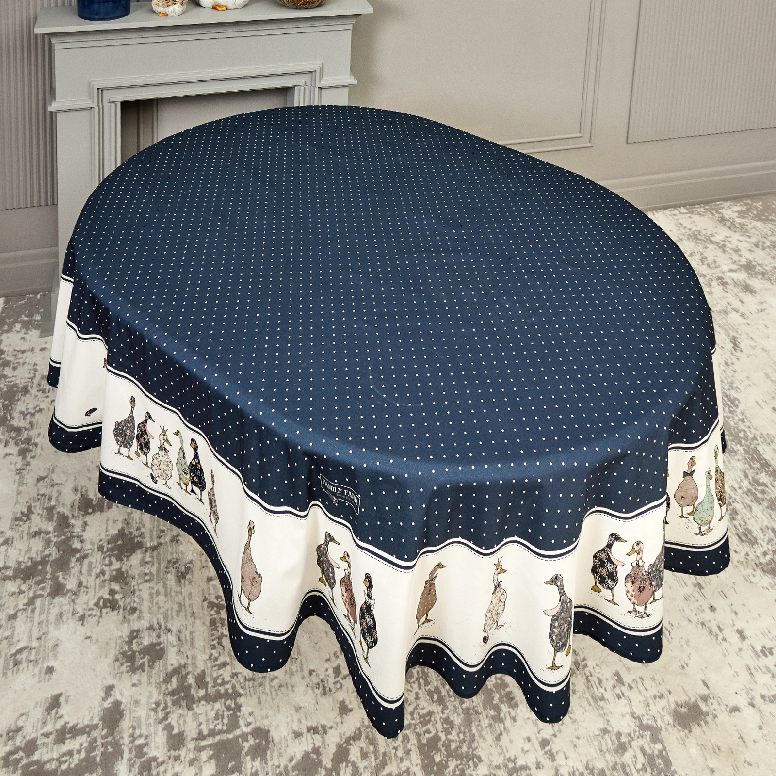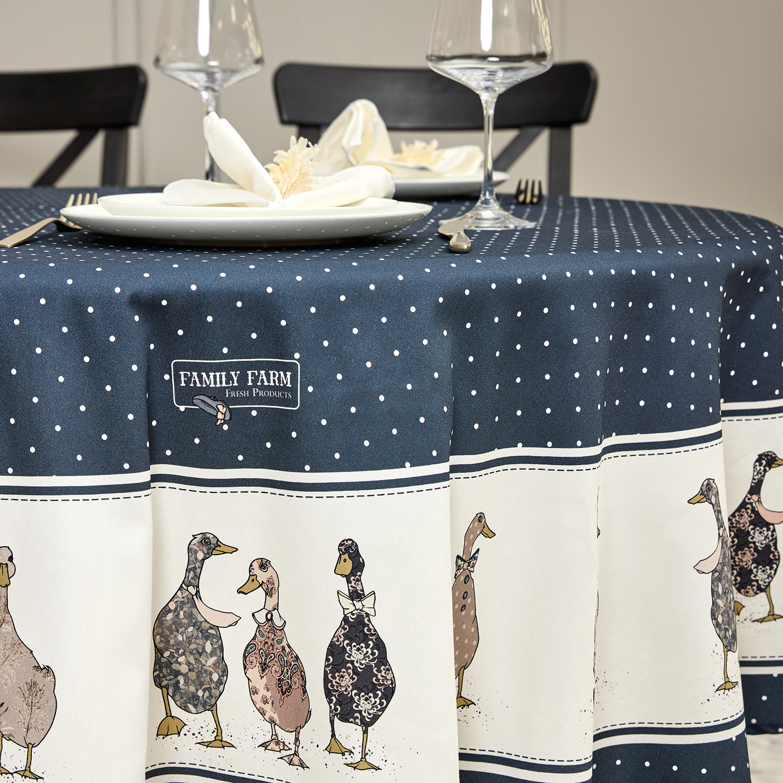СКАТЕРТЬ ОВАЛЬНАЯ "FAMILY FARM" 160Х220 СМ ,СИНИЙ, 100% ХЛОПОК, ТВИЛ, С ПРОПИТКОЙ