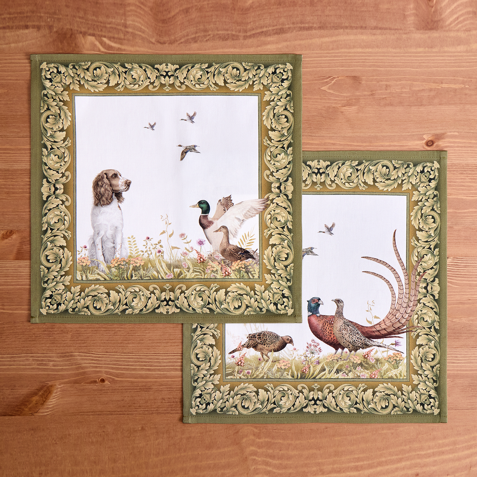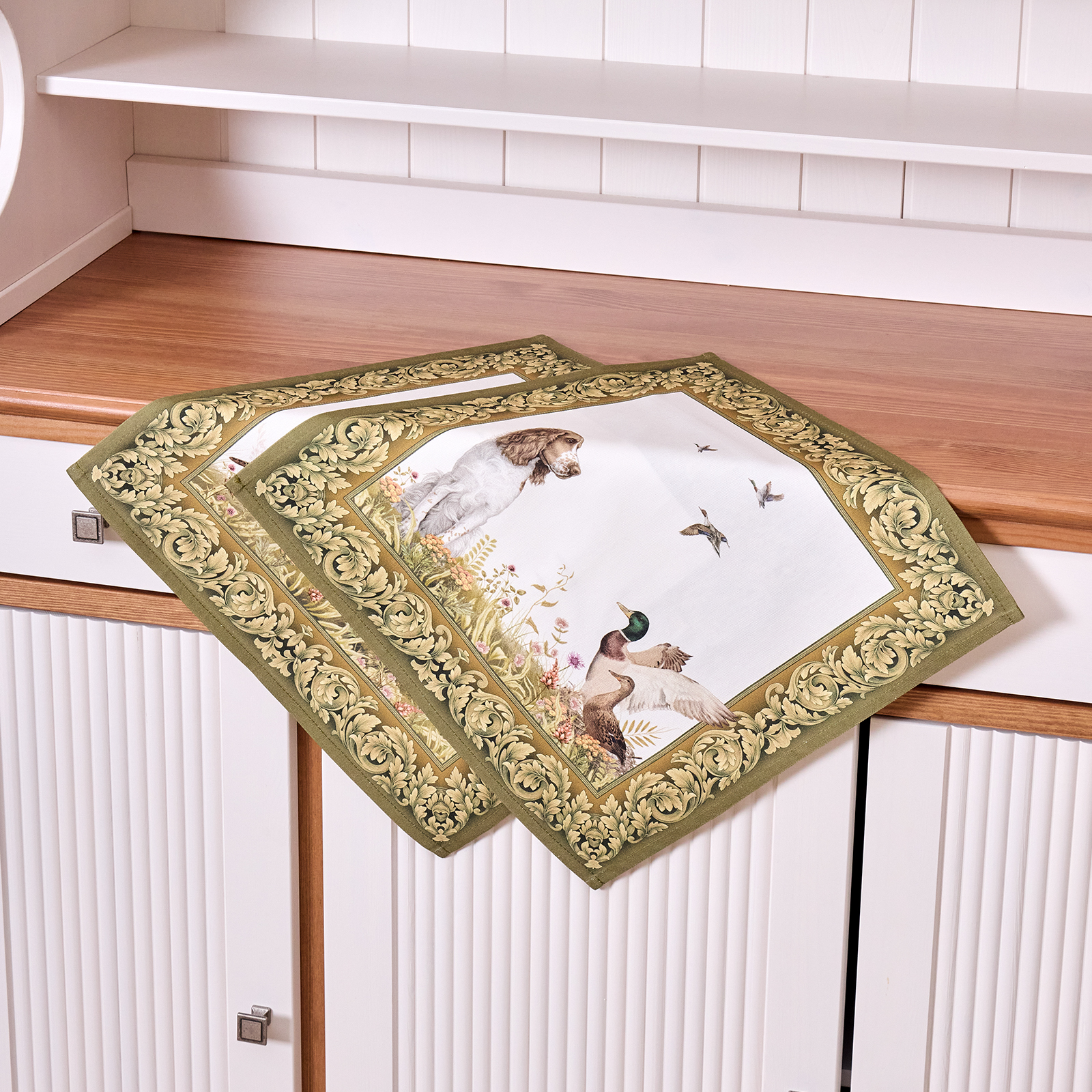НАБОР САЛФЕТОК ИЗ 2-Х ШТ "ОХОТА" 40Х40СМ, ТВИЛ,100% ХЛОПОК, СОБАКА