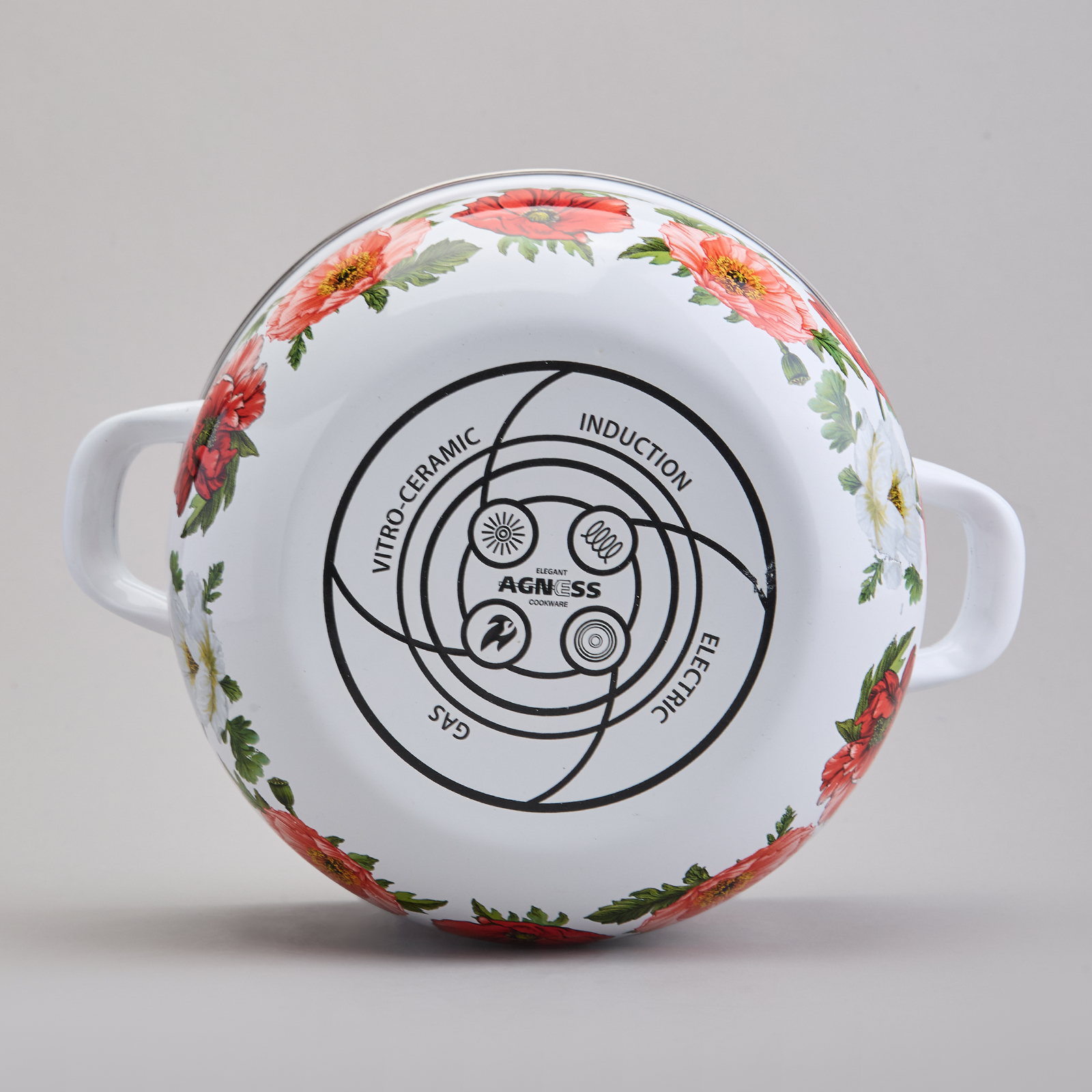 КАСТРЮЛЯ AGNESS ЭМАЛИРОВАННАЯ С ЭМАЛ.КРЫШКОЙ СЕРИЯ "МАКИ", 2.8 Л, 20*12 СМ