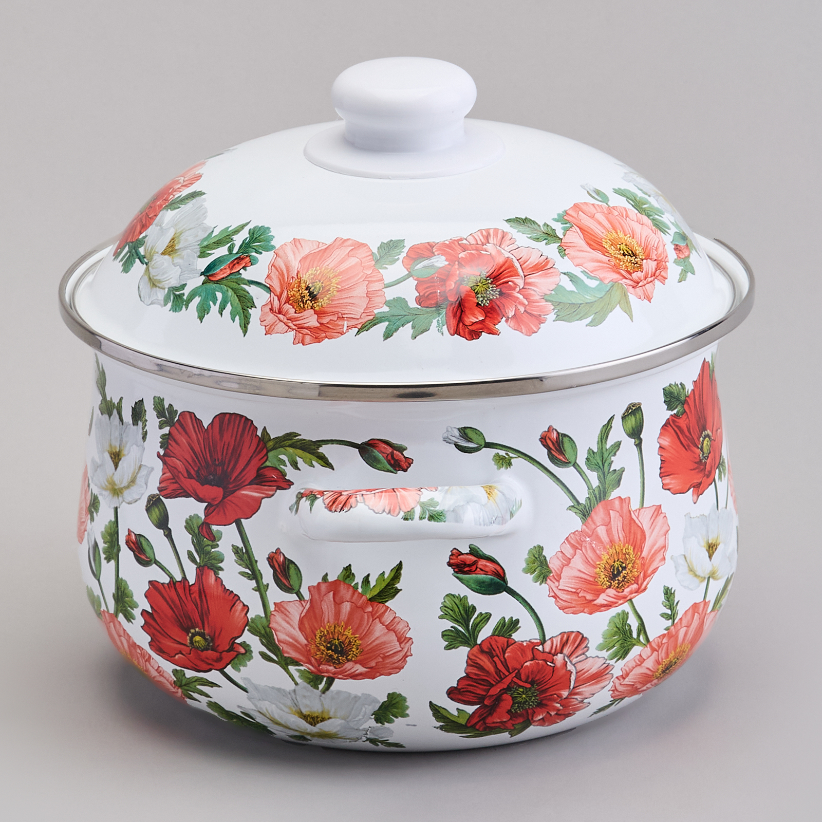 Стильный и нежный декор эмалированной посуды украсит любую кухню.