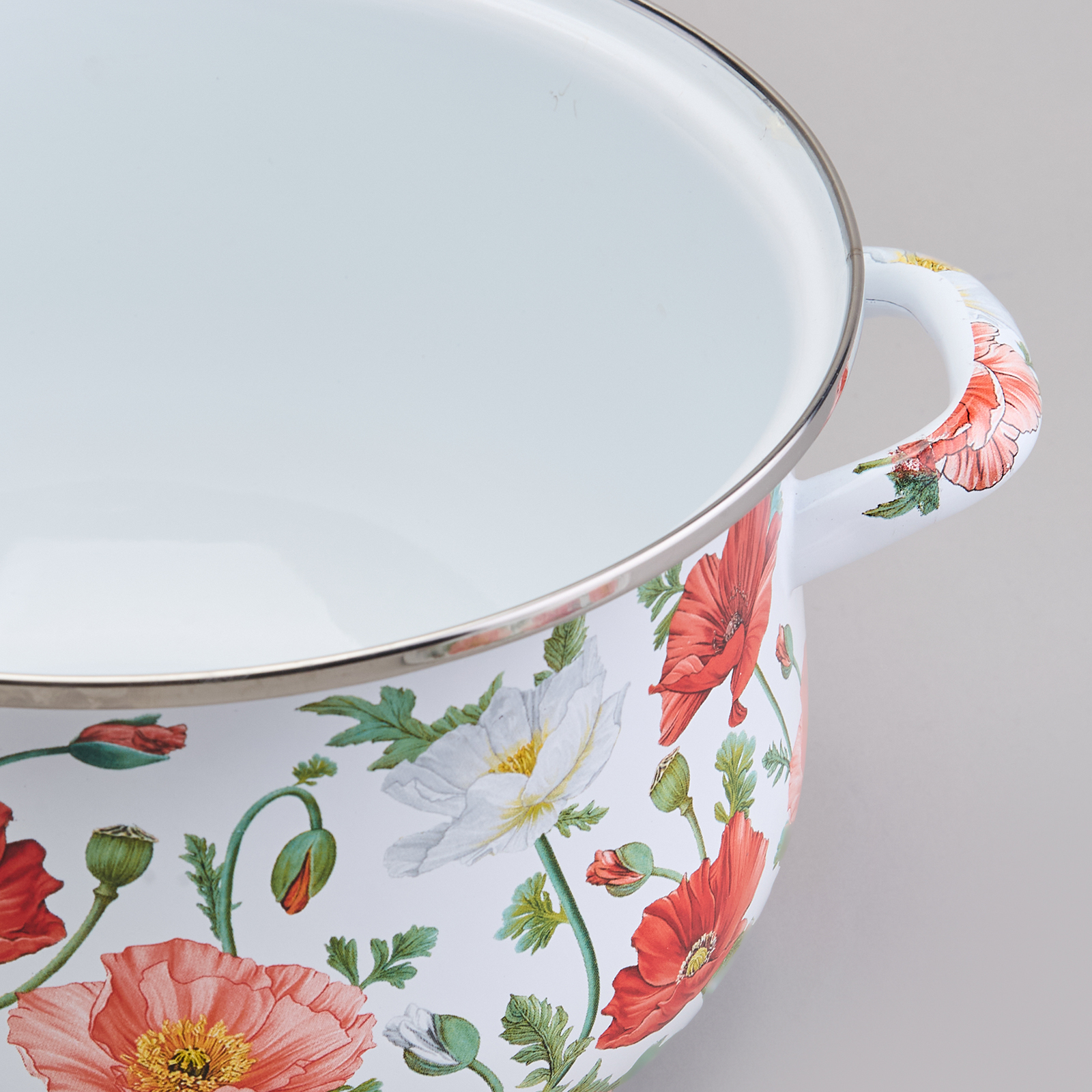 КАСТРЮЛЯ AGNESS ЭМАЛИРОВАННАЯ С ЭМАЛ.КРЫШКОЙ СЕРИЯ "МАКИ", 3.6 Л, 22*13 СМ