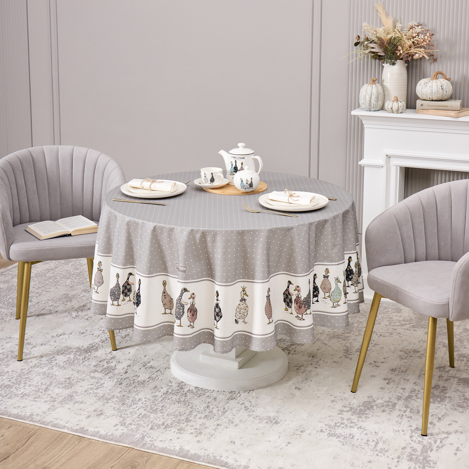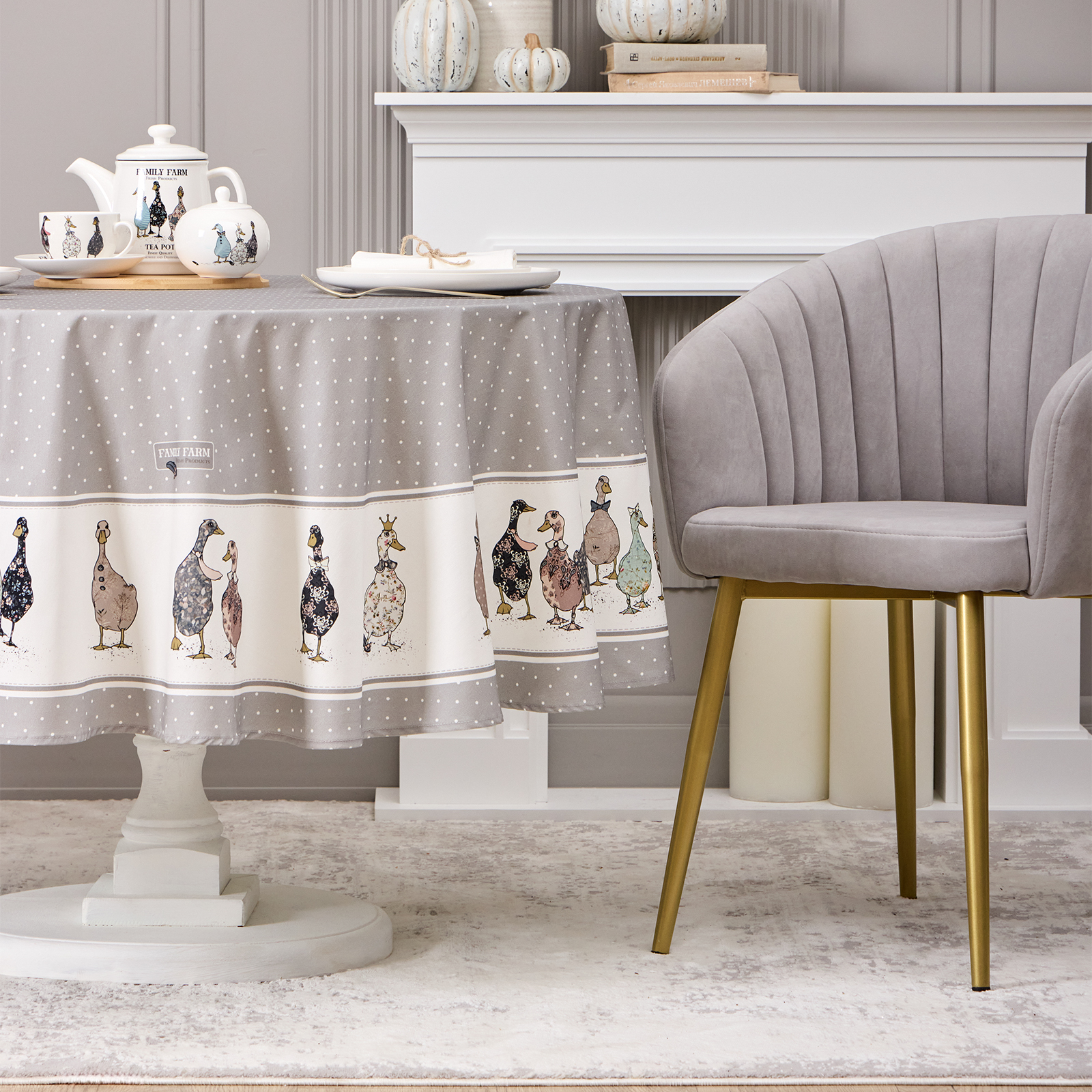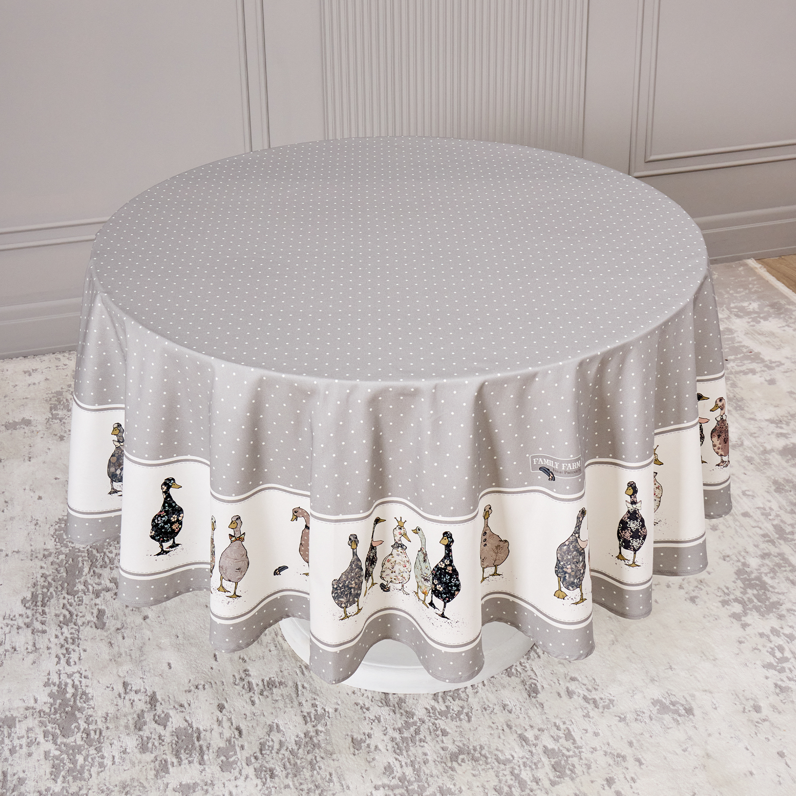 СКАТЕРТЬ КРУГЛАЯ "FAMILY FARM" 190 СМ , СЕРЫЙ ,100% ХЛОПОК , ТВИЛ, ПРОПИТКА