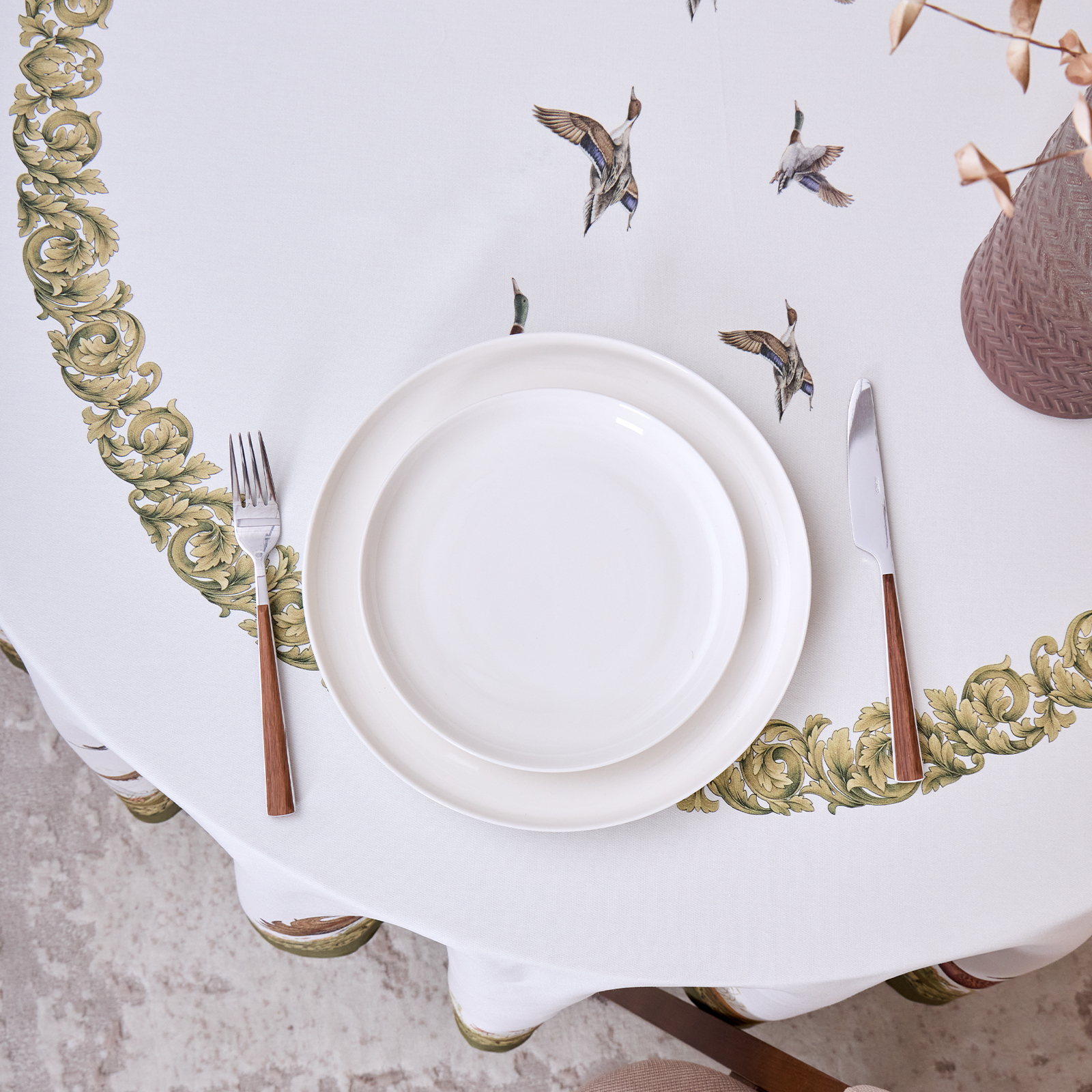 Круглая скатерть 190 см из коллекции «Охота» от Lefard — практичное и декоративное решение для круглого стола. Подходит для столов диаметром 100–120 см, формируя равномерный и эстетичный свес.