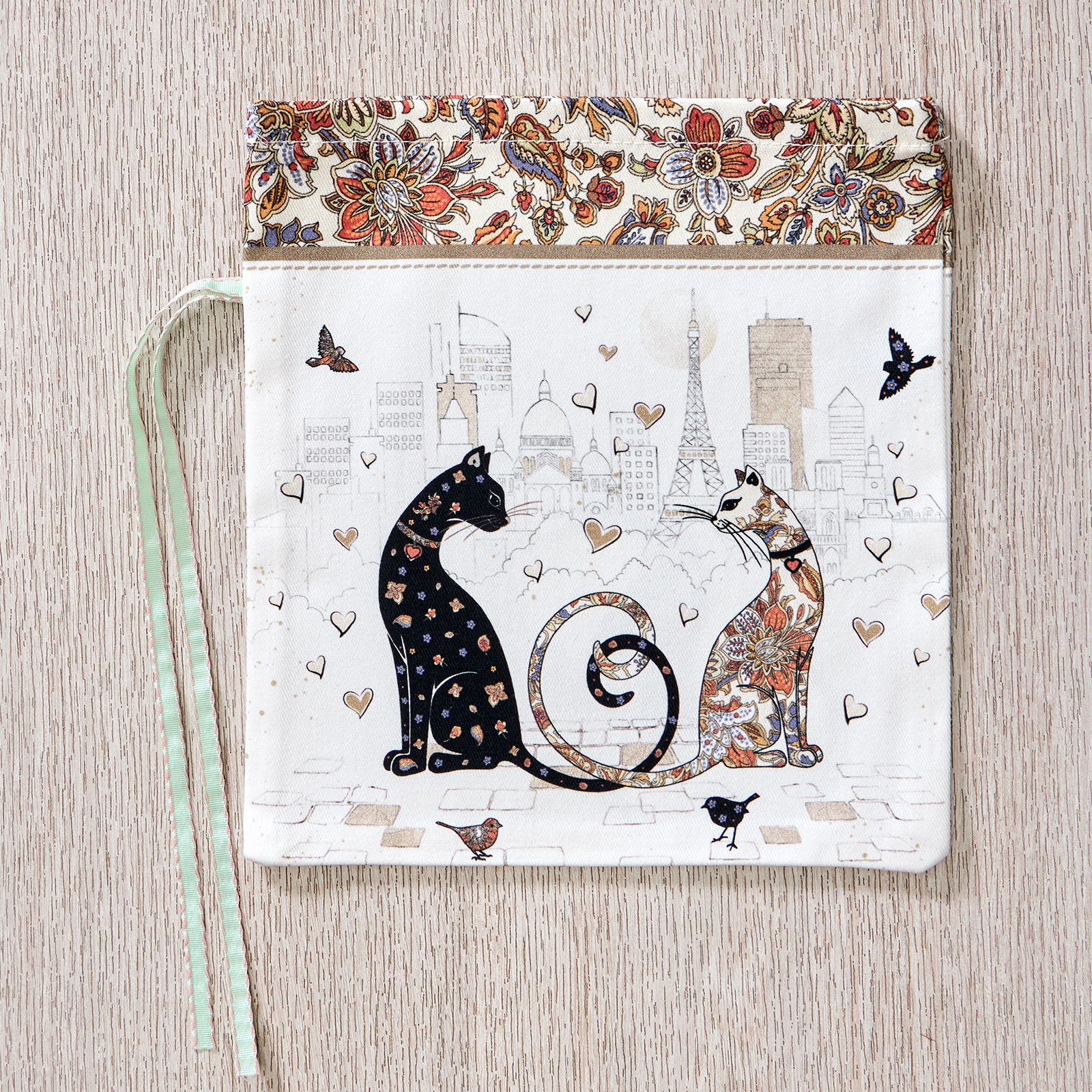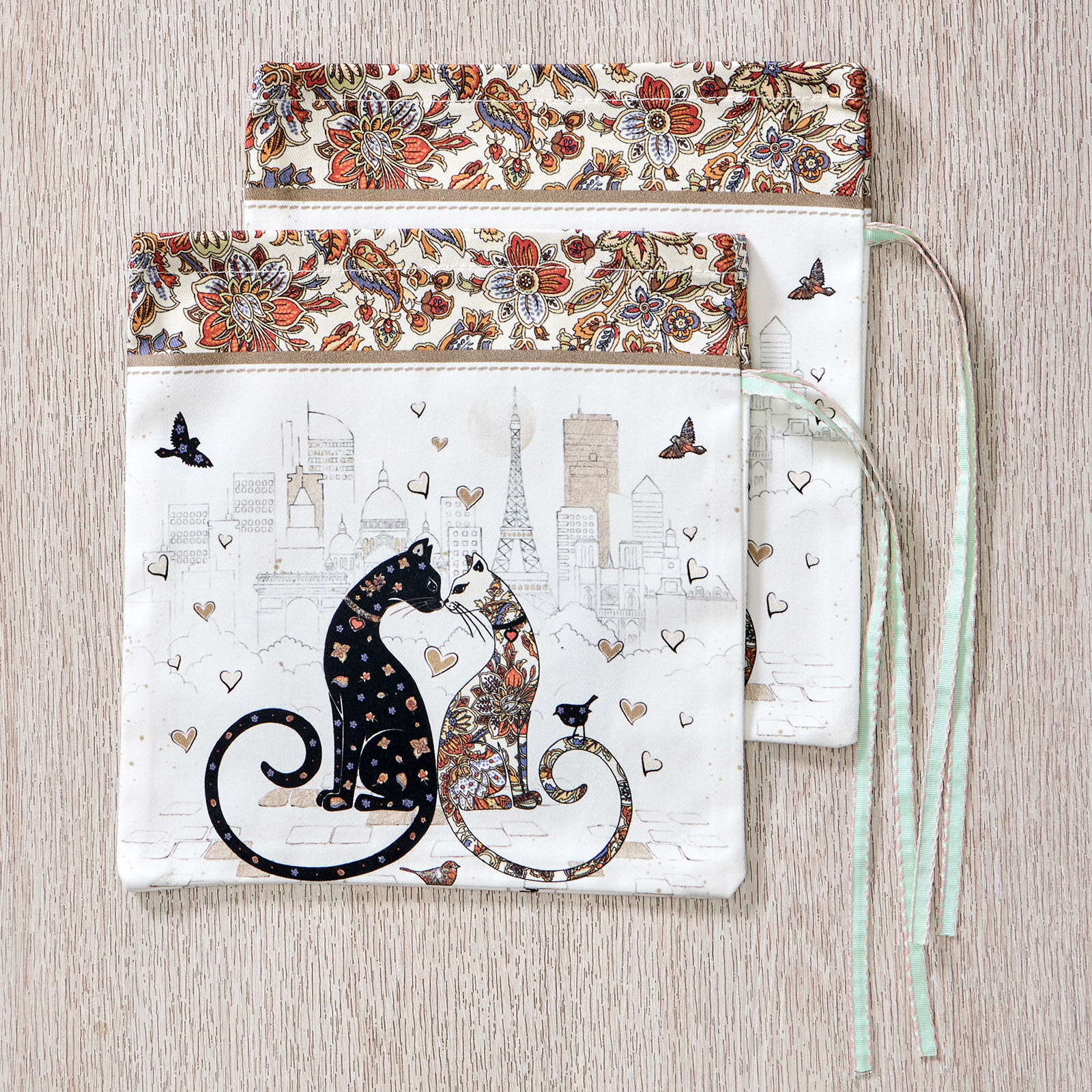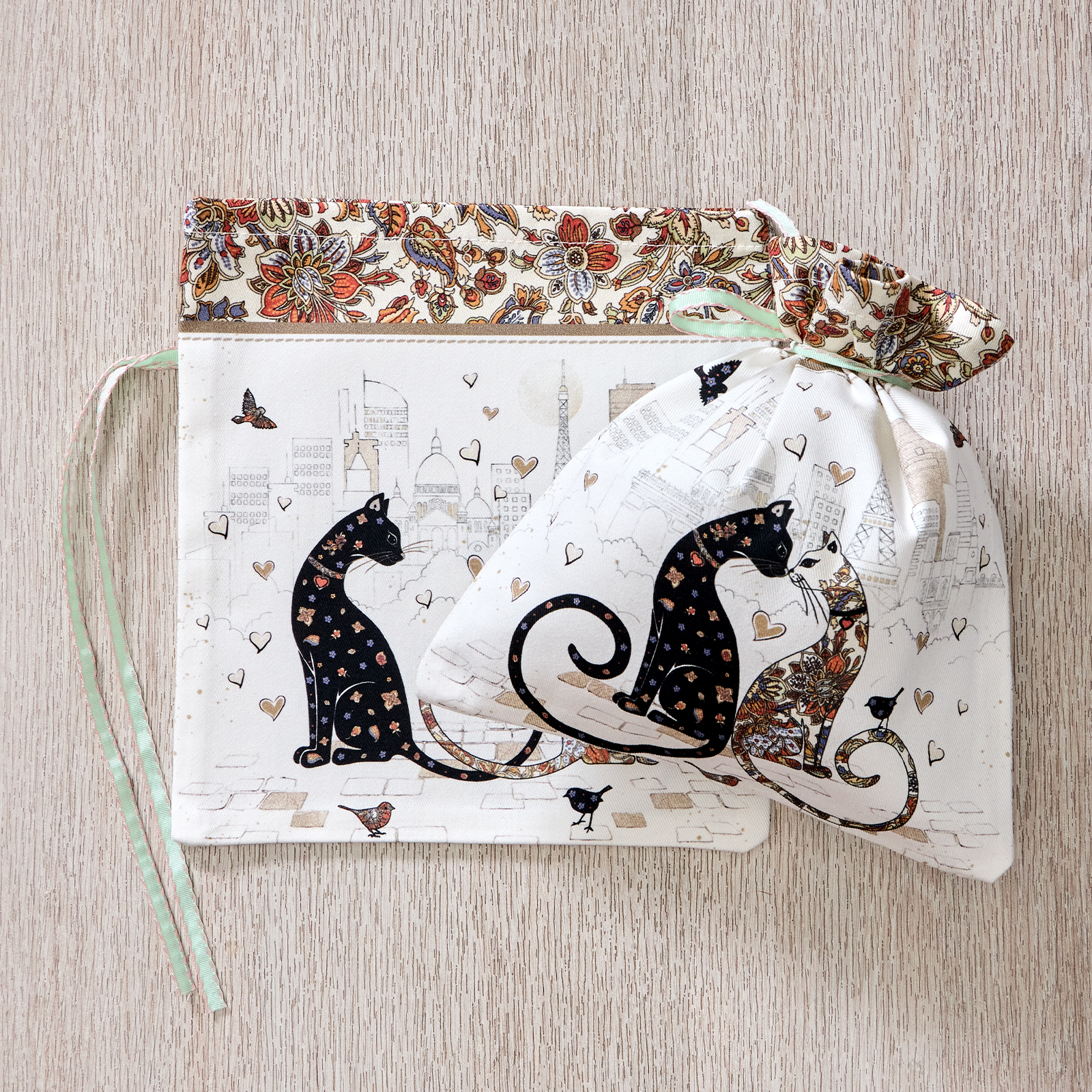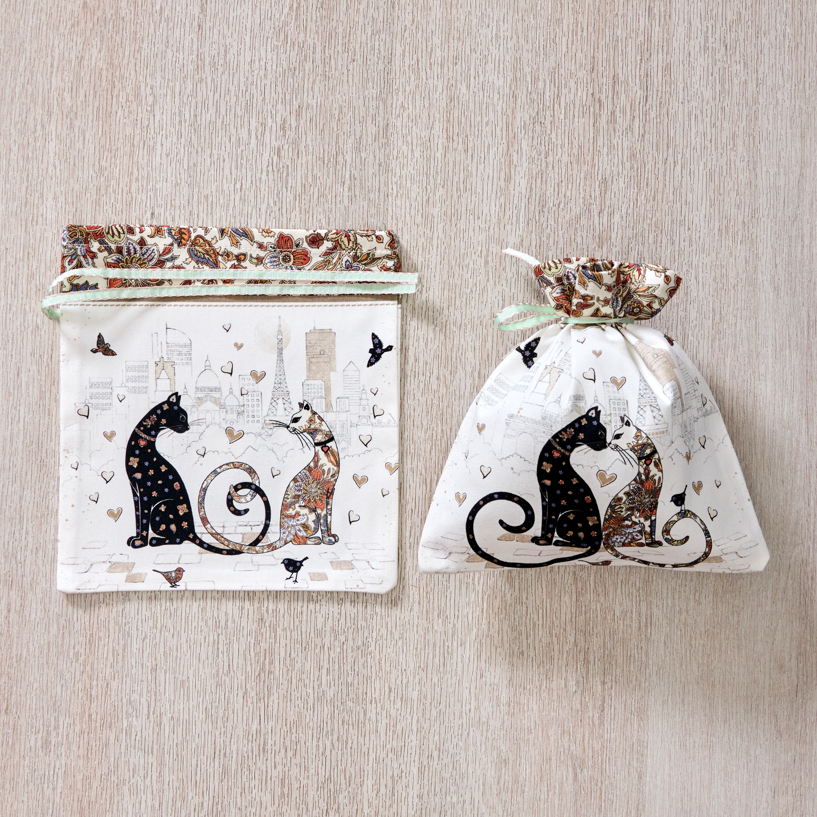 Набор тканевых мешочков от Lefard "Парижские коты" — 21×23 см, 100% хлопок, многоразовые эко-мешочки.