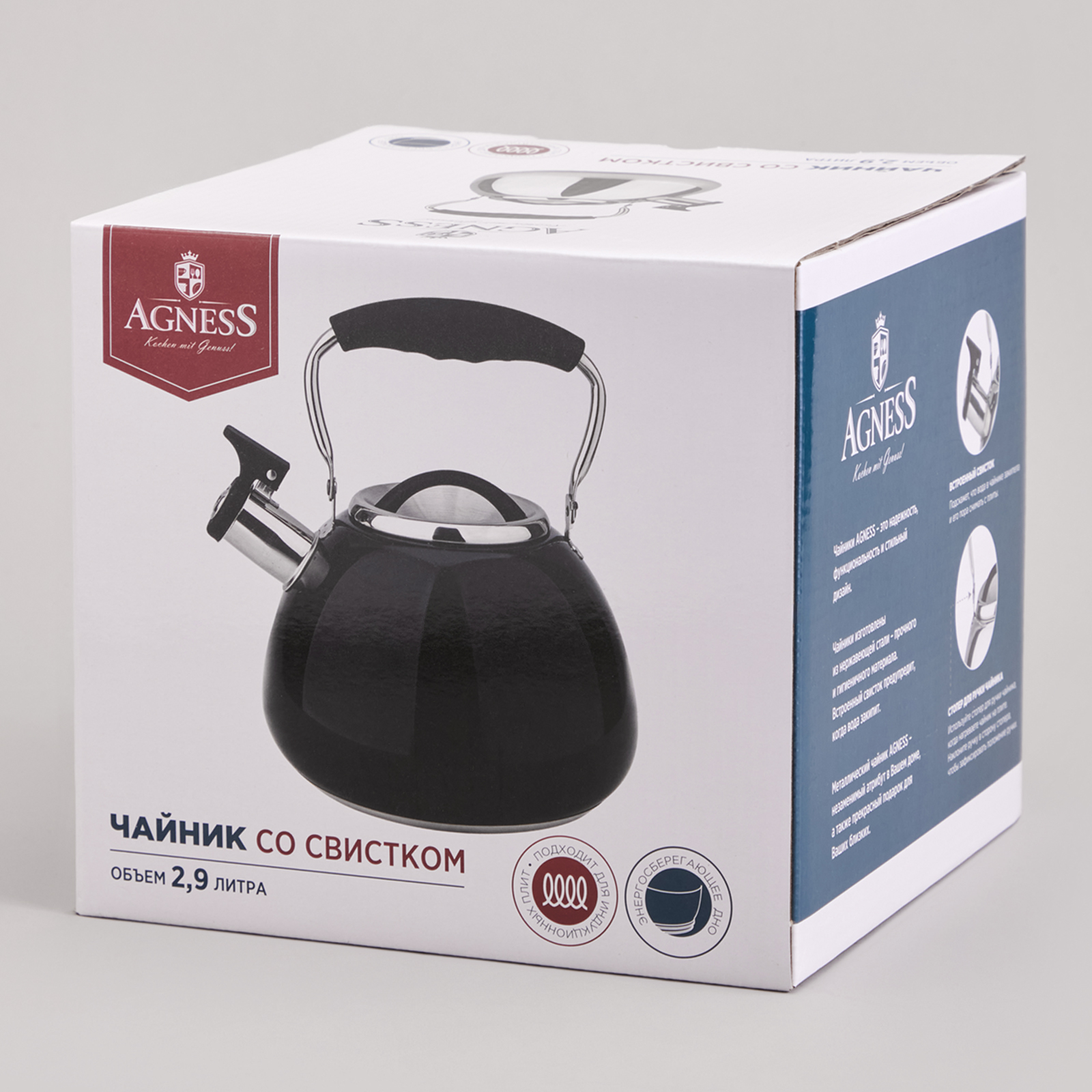 • Благодаря внешнее жаропрочному покрытию и стильному дизайну чайник AGNESS украсит любую кухню