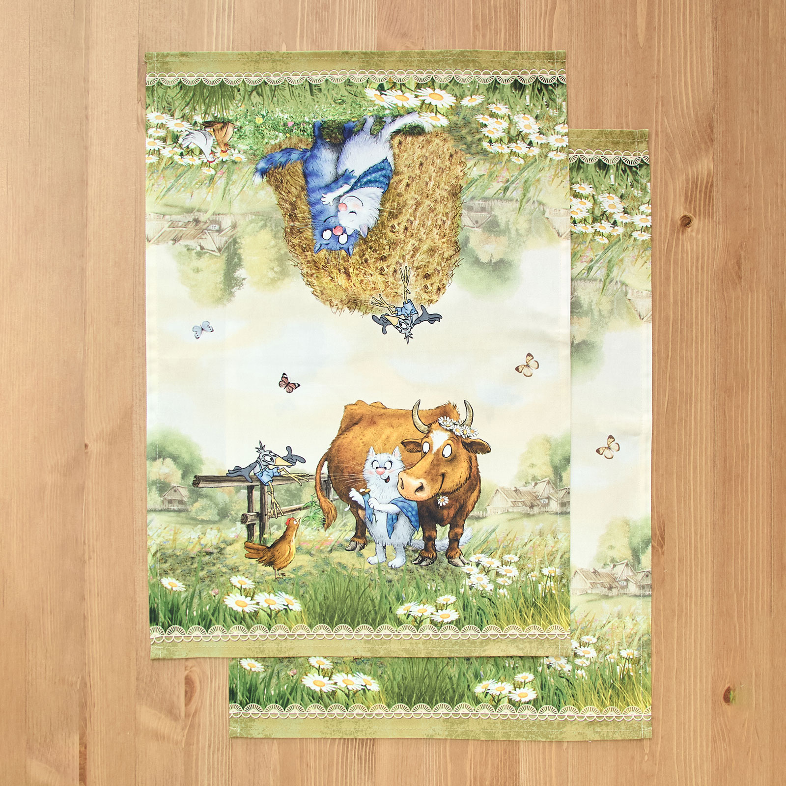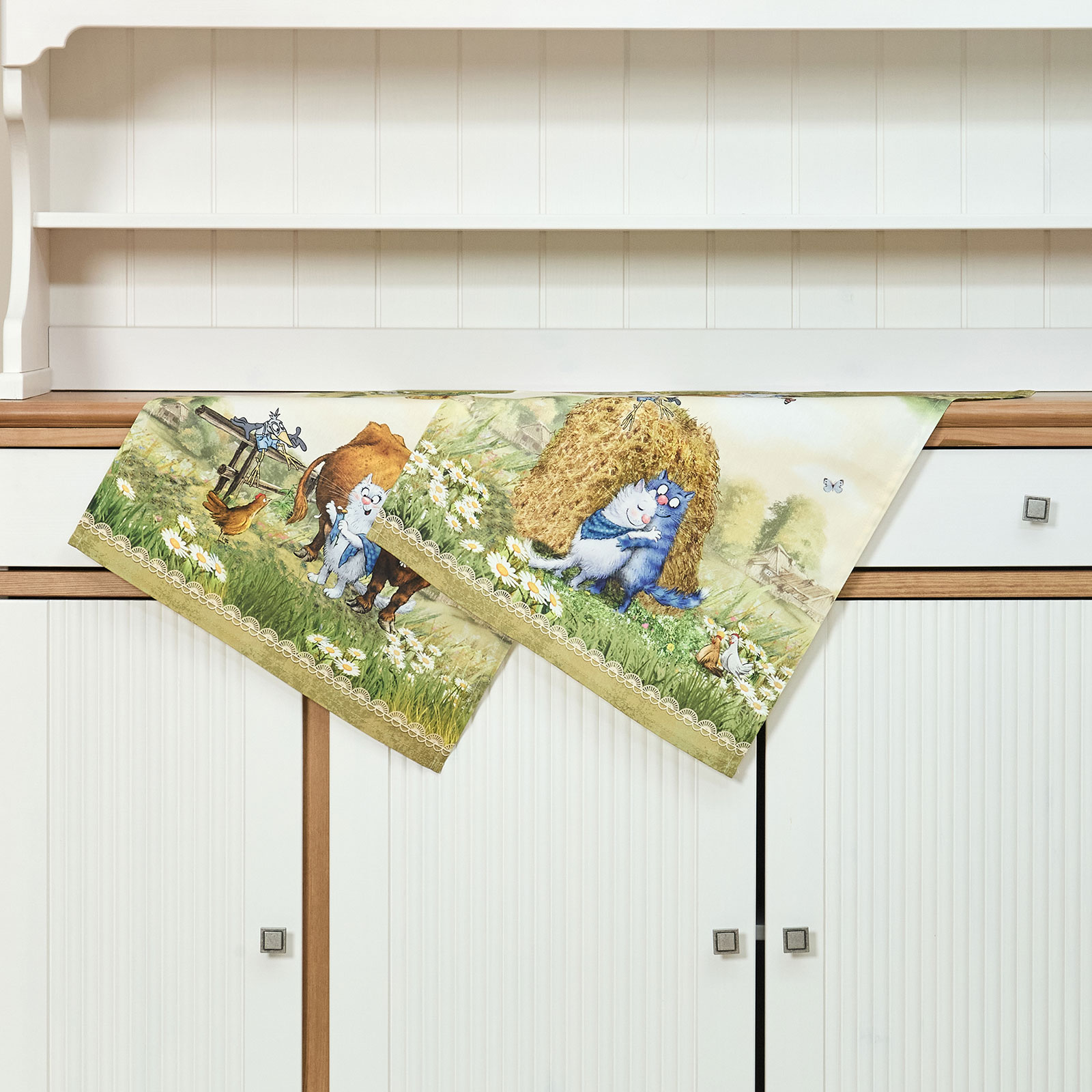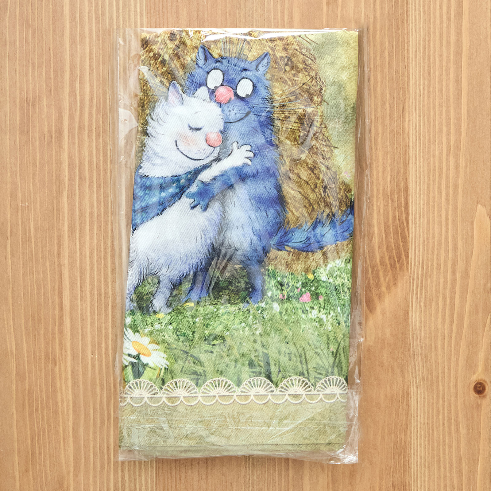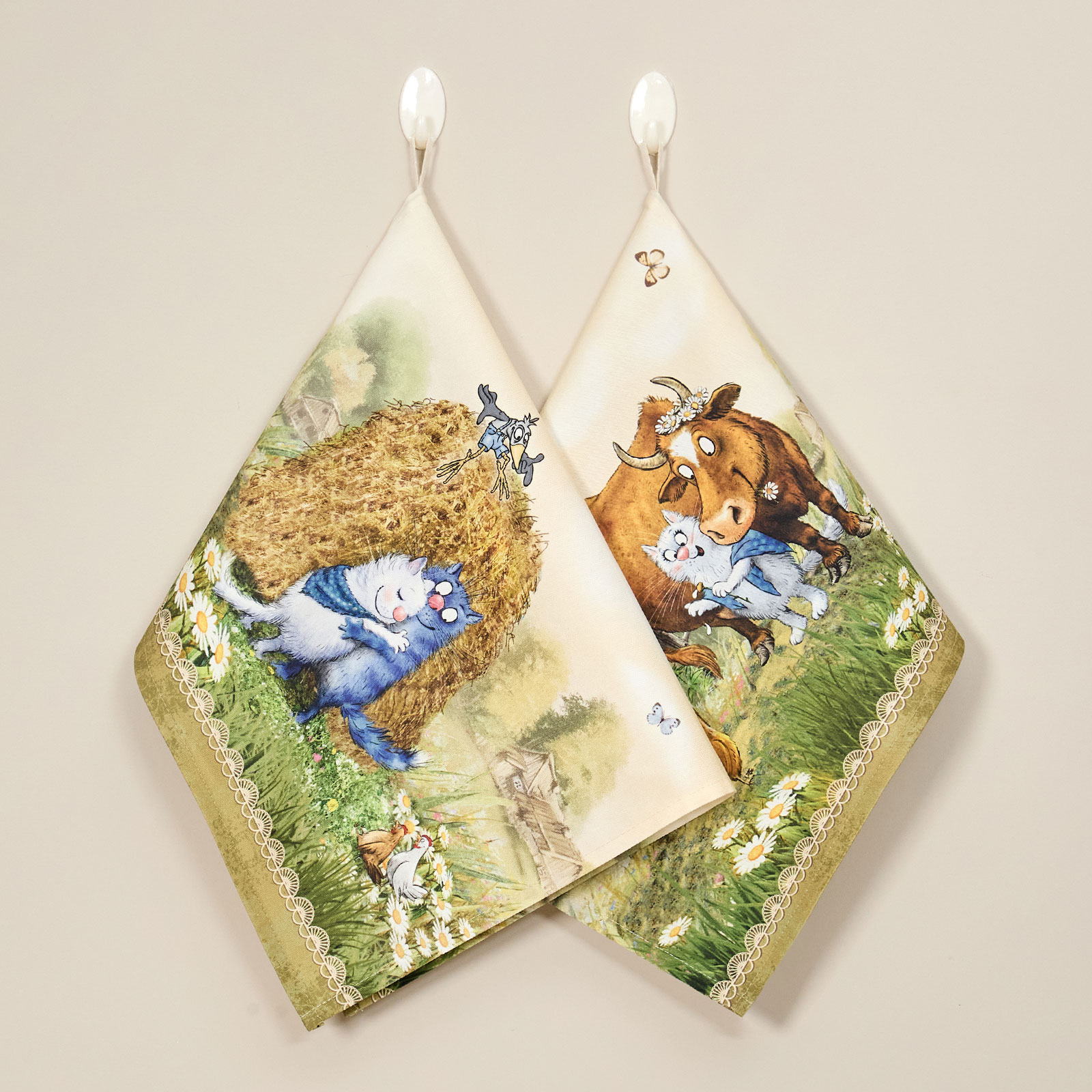 НАБОР ПОЛОТЕНЕЦ 2 ШТ "СИНИЕ КОТЫ. ПРО ЛЮБОВЬ ",40Х60 СМ, 100% ХЛОПОК,ТВИЛ, БЕЖ