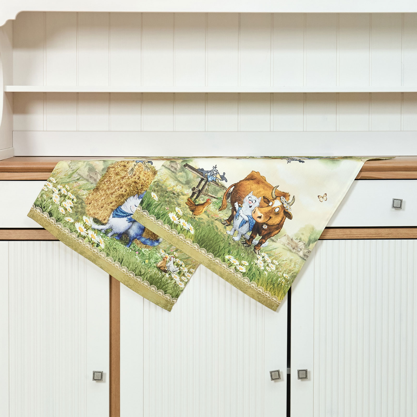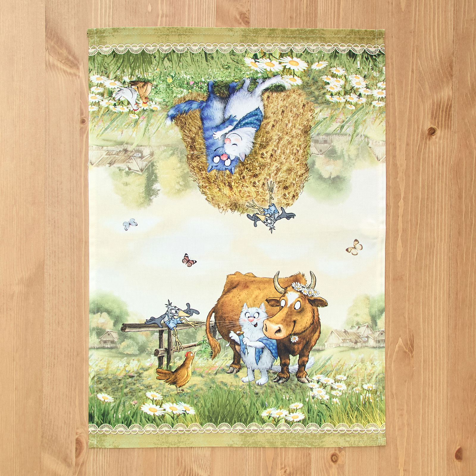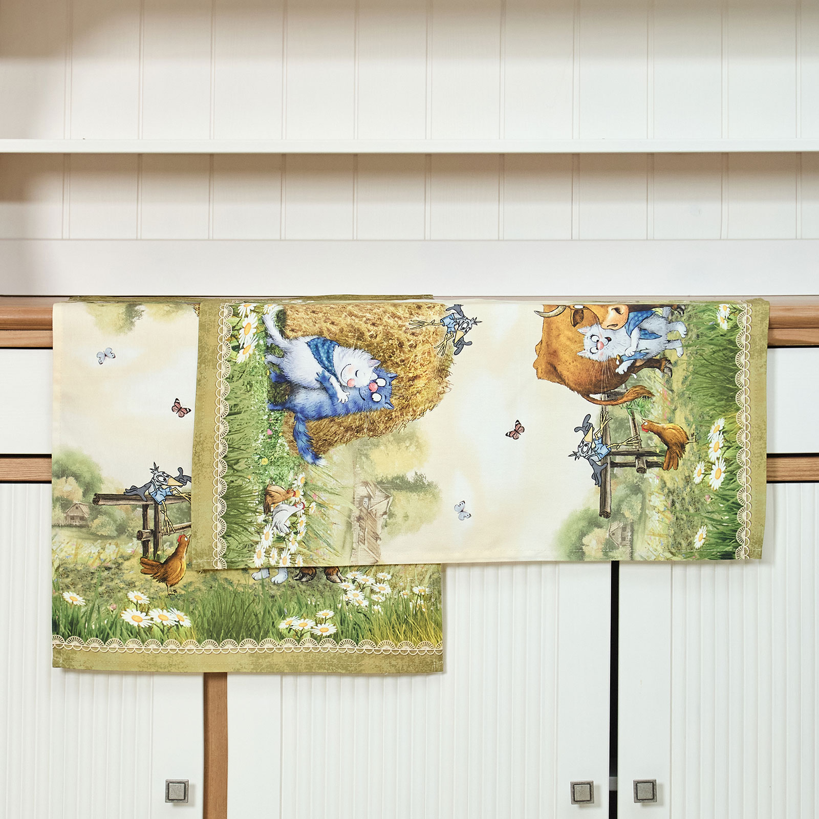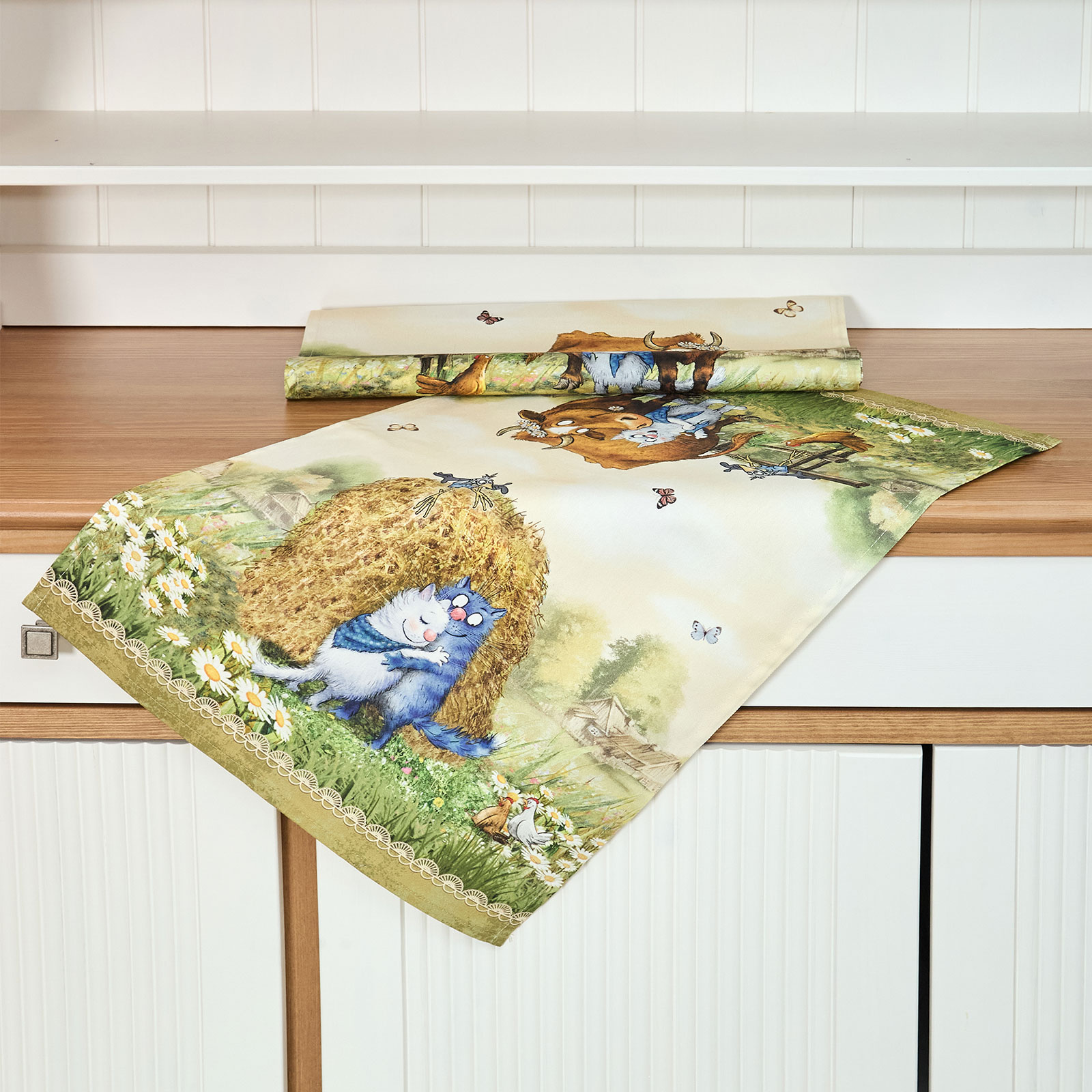НАБОР ПОЛОТЕНЕЦ 2 ШТ "СИНИЕ КОТЫ. ПРО ЛЮБОВЬ ",40Х60 СМ, 100% ХЛОПОК,ТВИЛ, БЕЖ