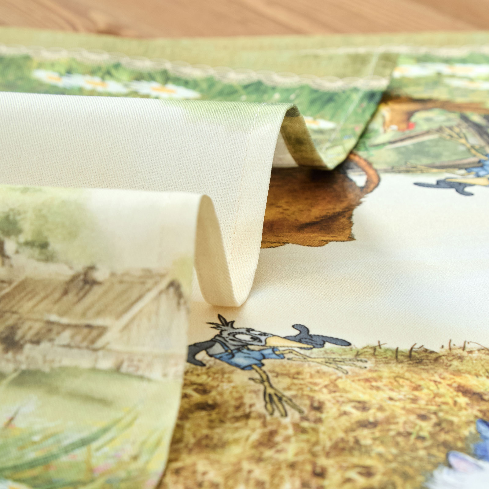 Особым направлением бренда «SANTALINO» является изготовление столового белья (скатерти, салфетки, дорожки (раннер), плейсметы, полотенца, фартуки) по эксклюзивным дизайнам наших художников, воплощённых в цифровой печати, на современном оборудовании. Для пошива изделий используются только натуральные материалы 100% хлопок, плотность ткани составляет 190 гр\м2, она имеет приятную структуру в мелкий рубчик и называется твил, отличается хорошей капиллярностью (впитываемость влаги), драпируемостью, износостойкостью, ткань проходит процесс каландрирования, что делает её более плотной и придаёт лёгкий атласный блеск, предотвращает образование так называемых «катышек» т.е. уменьшается пилингуемость ткани. Цифровая печать позволяет перенести на изделия не только всё богатство красок и оттенков, но и придать особую прочность крашению, ткань не теряет своей яркости даже после 100 стирок. Изделия легки и неприхотливы в уходе, стирать нужно при температуре 40С, гладить при температуре от 110-170С с отпариванием, но нельзя подвергать хлорному отбеливанию. Для удобства эксплуатации на ряд изделий, такие как фартуки, скатерти, дорожки может наноситься водогрязеотталкивающая пропитка, которая не влияет на внешний вид изделия, но позволяет избежать сильного загрязнения при использовании.