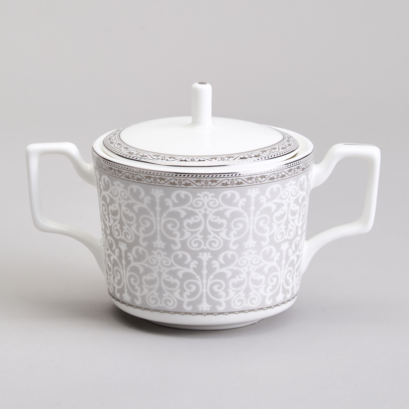 TM Lefard коллекции столовой посуды из костянного фарфора. "VERSAILLES" - это яркость и пышность дворцовых узоров на классических формах в платиновом исполнении. 45 % костяной золы сделало изделия тонкими, прочными, прозрачными, мягкого молочного цвета. Изготовление изделий из костяного фарфора не поддаётся автоматизации, производство таких вещей возможно только с использованием ручного труда. Не рекомендуется использовать в микроволной печи, мыть в посудомоечной машине.