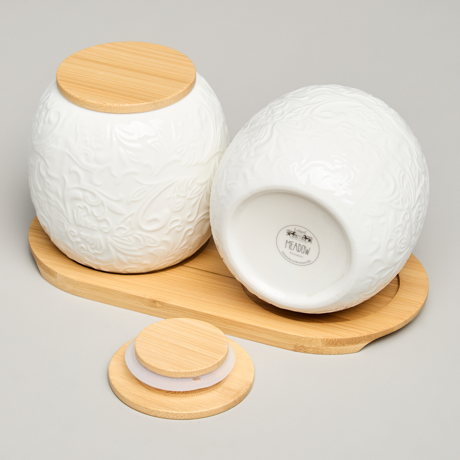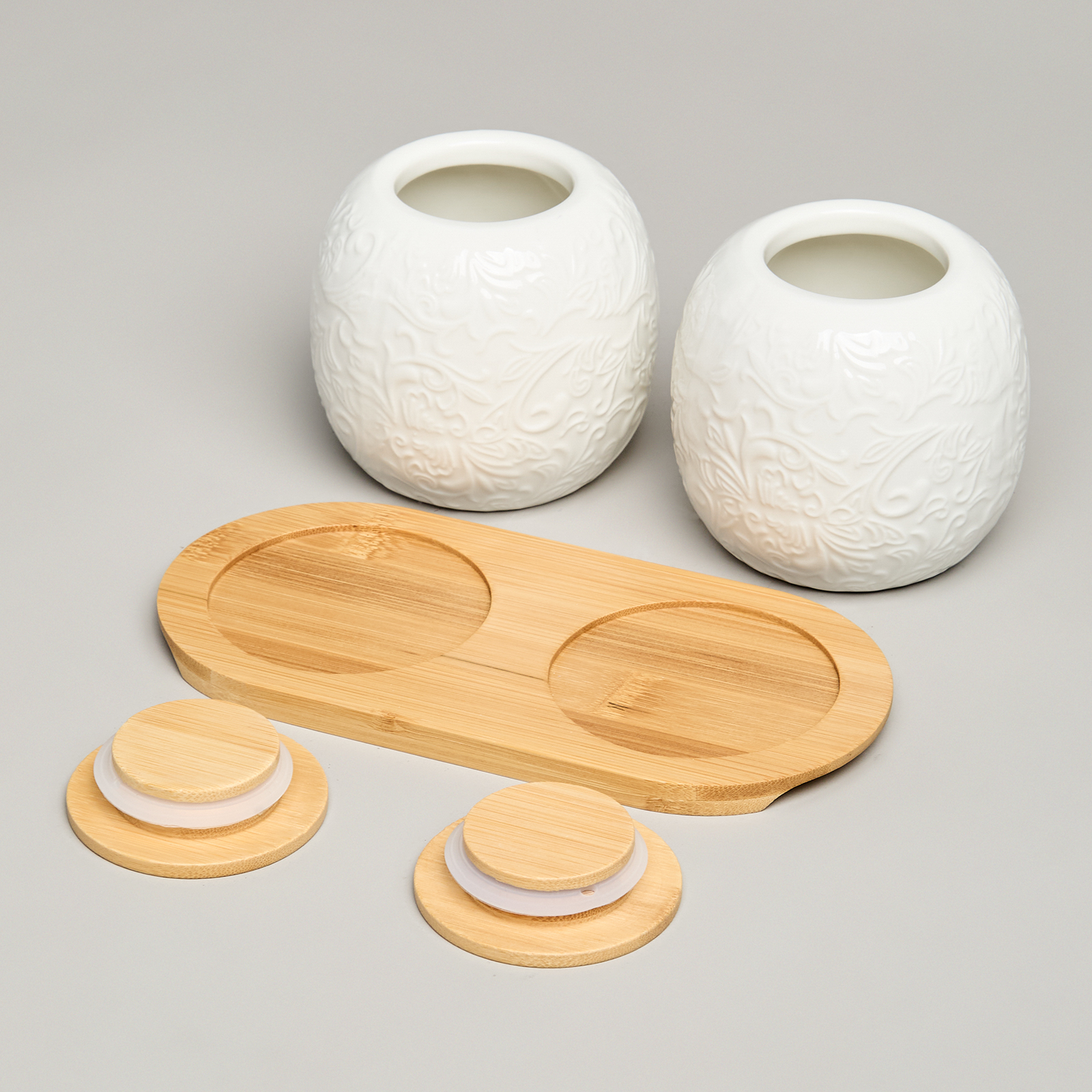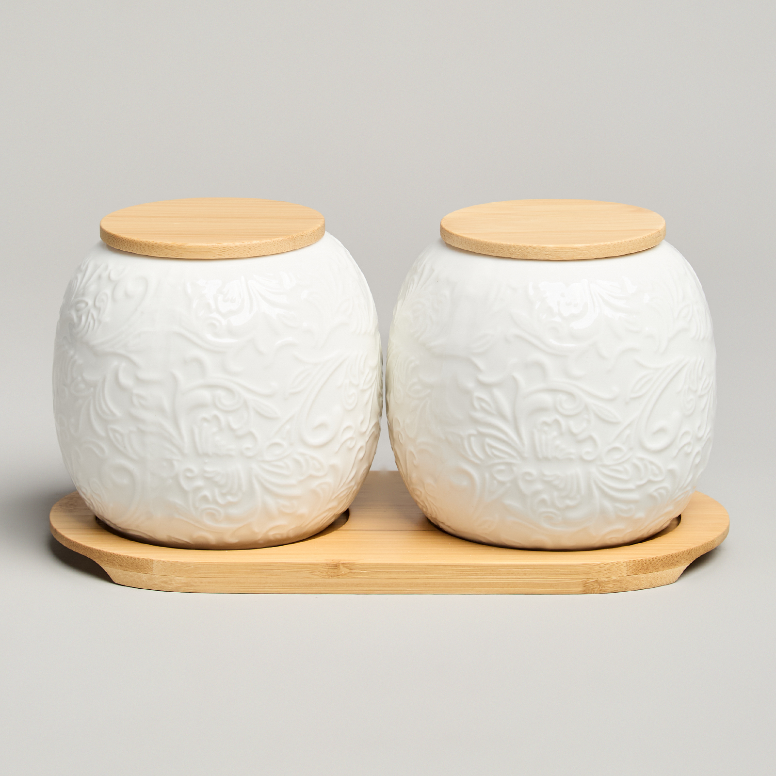 НАБОР БАНОК LEFARD "MUSE" С ДЕР.КРЫШКОЙ НА ДЕР.ПОДСТАВКЕ 2 ШТ. 19,5*9,5 СМ 400 МЛ