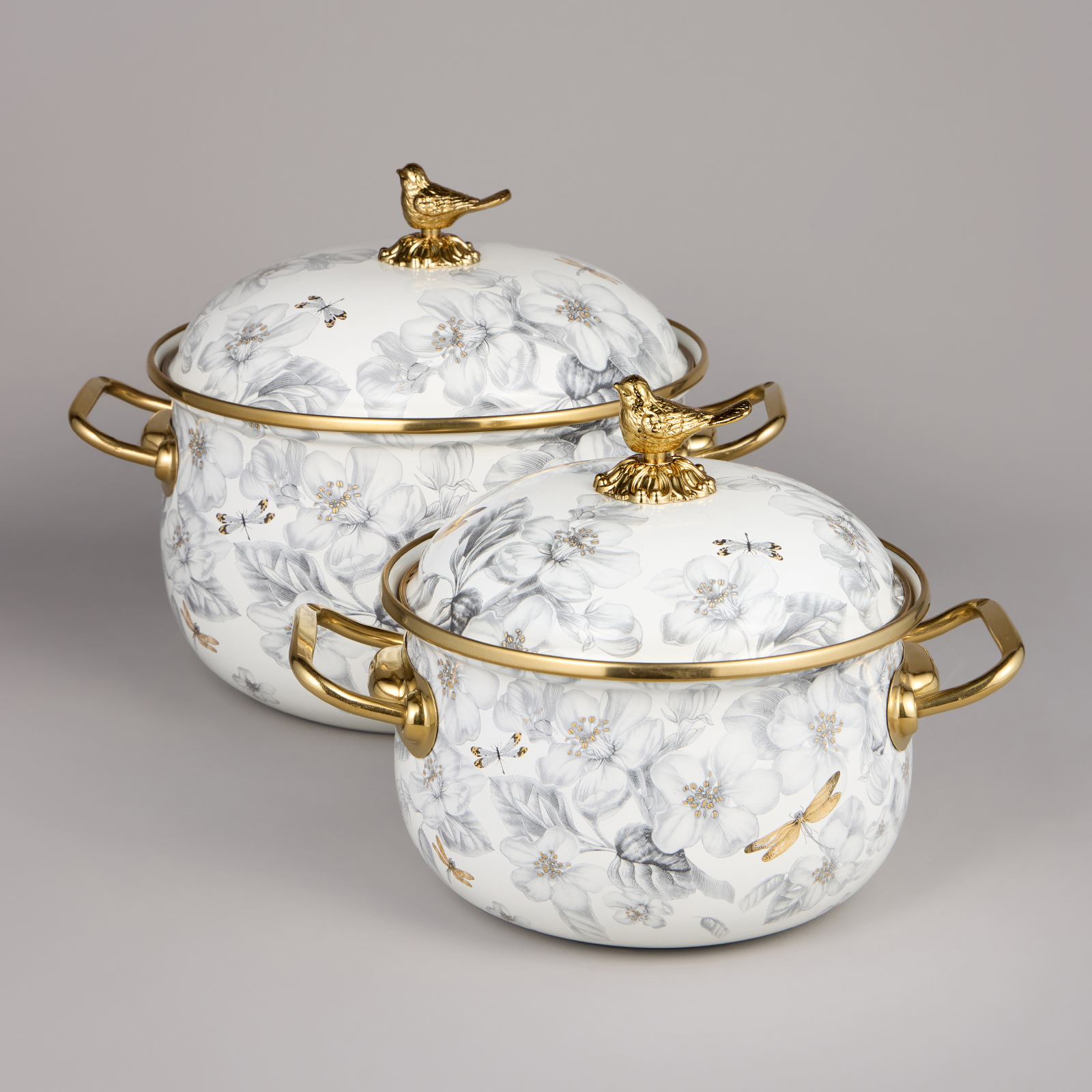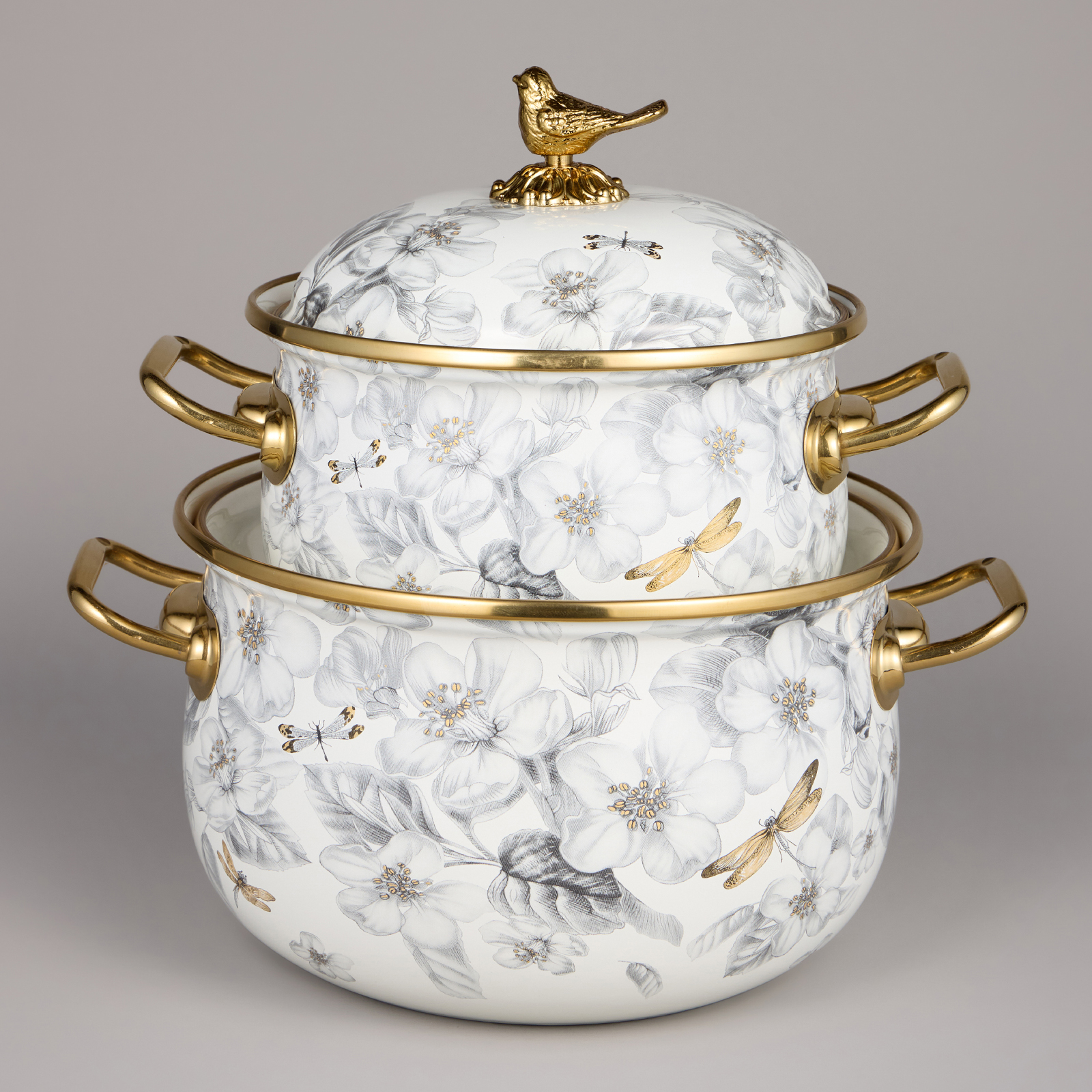 НАБОР КАСТРЮЛЬ AGNESS ЭМАЛИРОВАННЫХ СЕРИЯ "ЯБЛОНЕВЫЙ САД", 4ПР. 2,1Л И 3,8Л