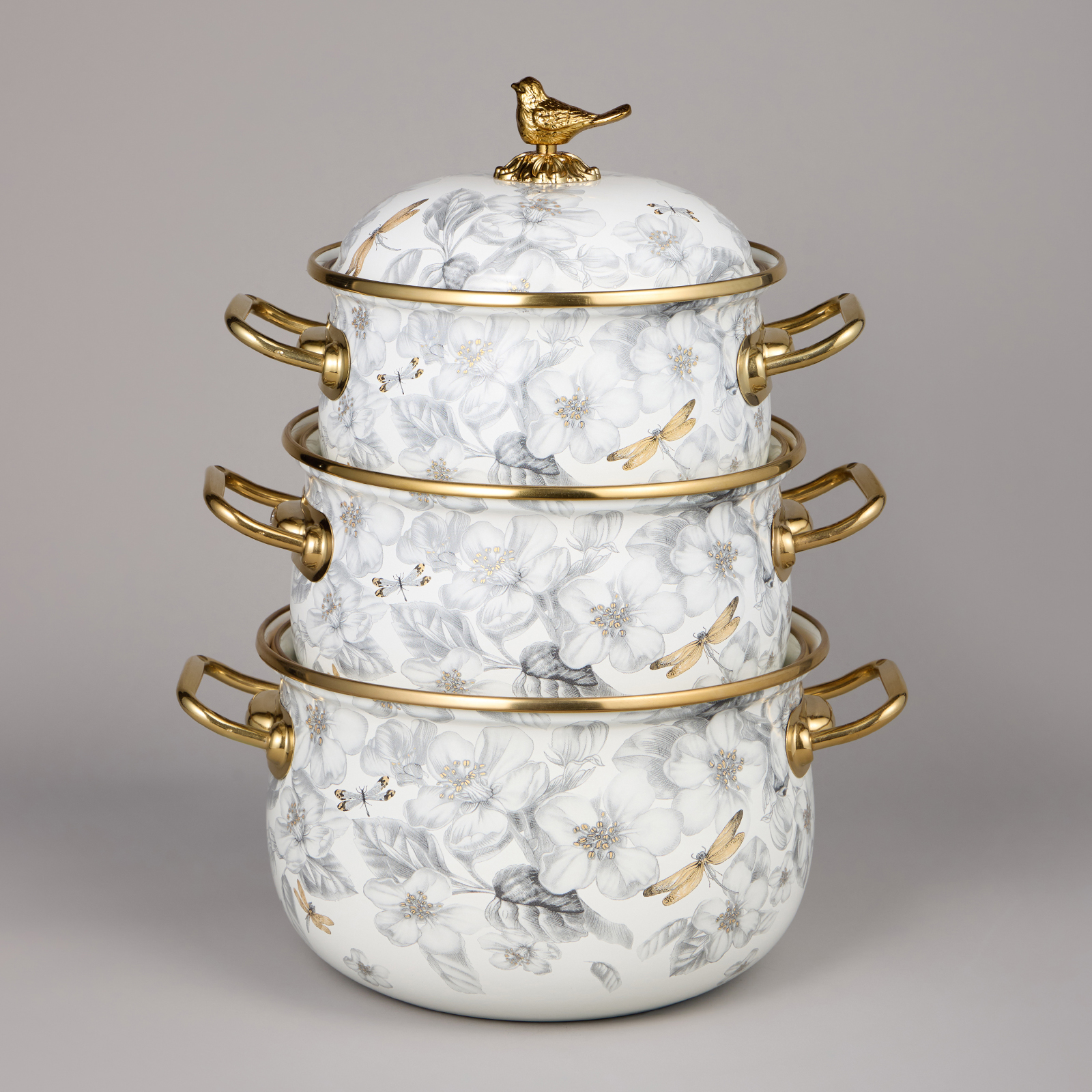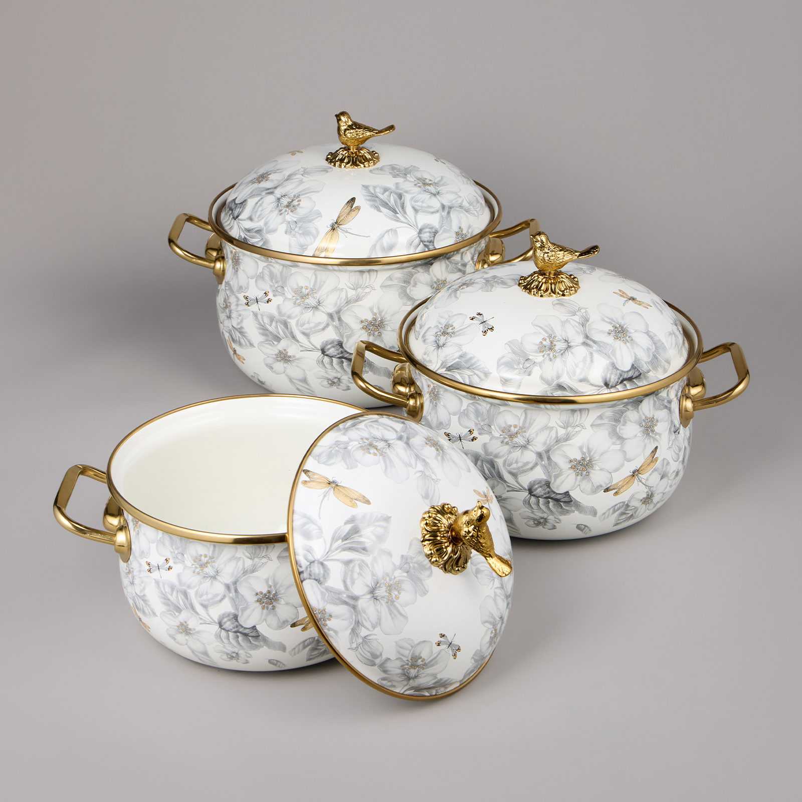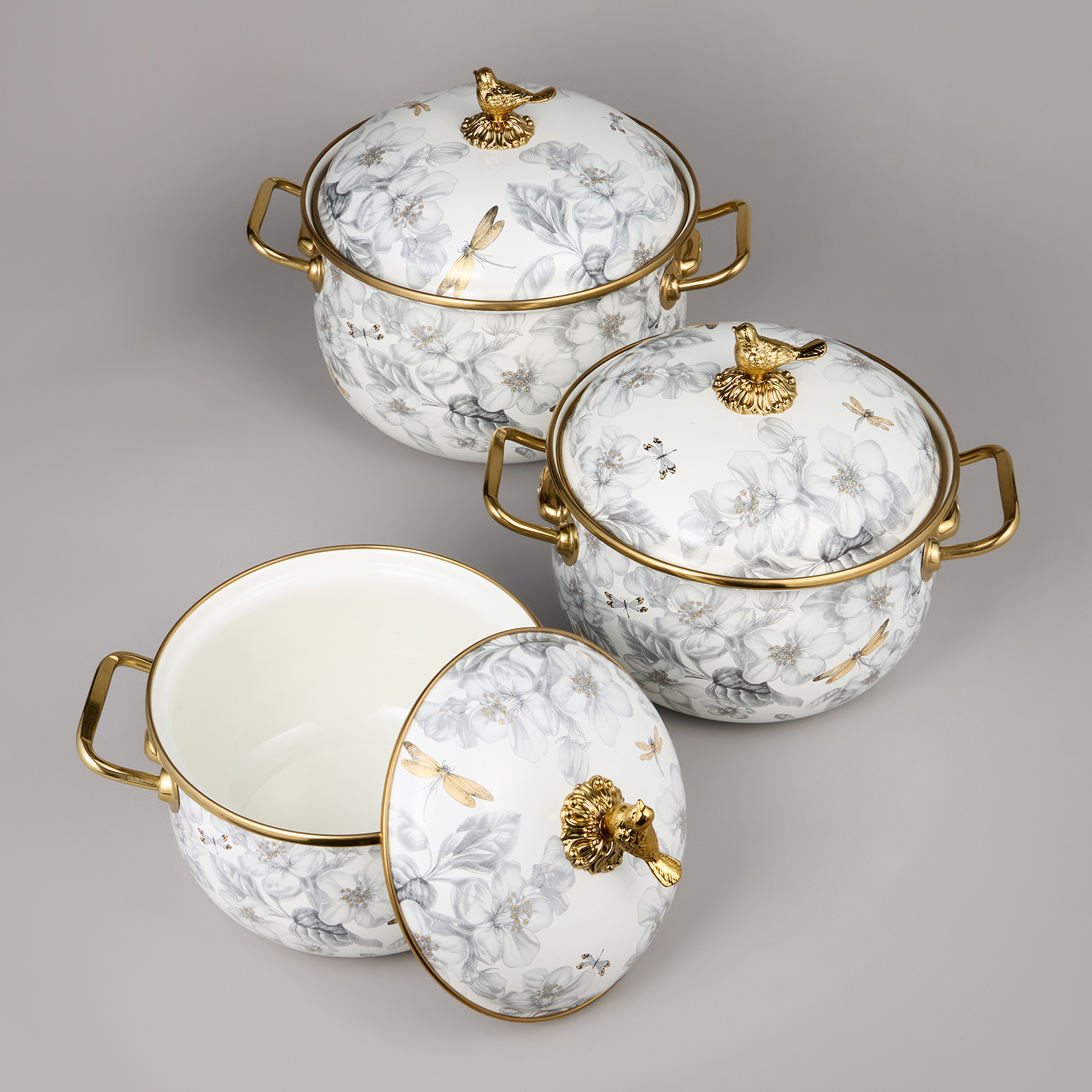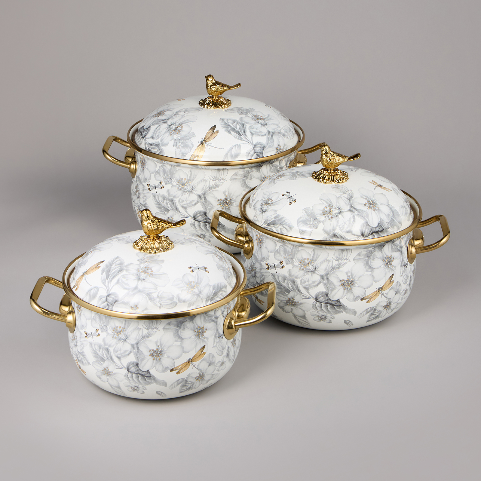 НАБОР КАСТРЮЛЬ AGNESS ЭМАЛИРОВАННЫХ СЕРИЯ "ЯБЛОНЕВЫЙ САД", 6ПР. 2,1Л, 2,8Л И 3,8Л
