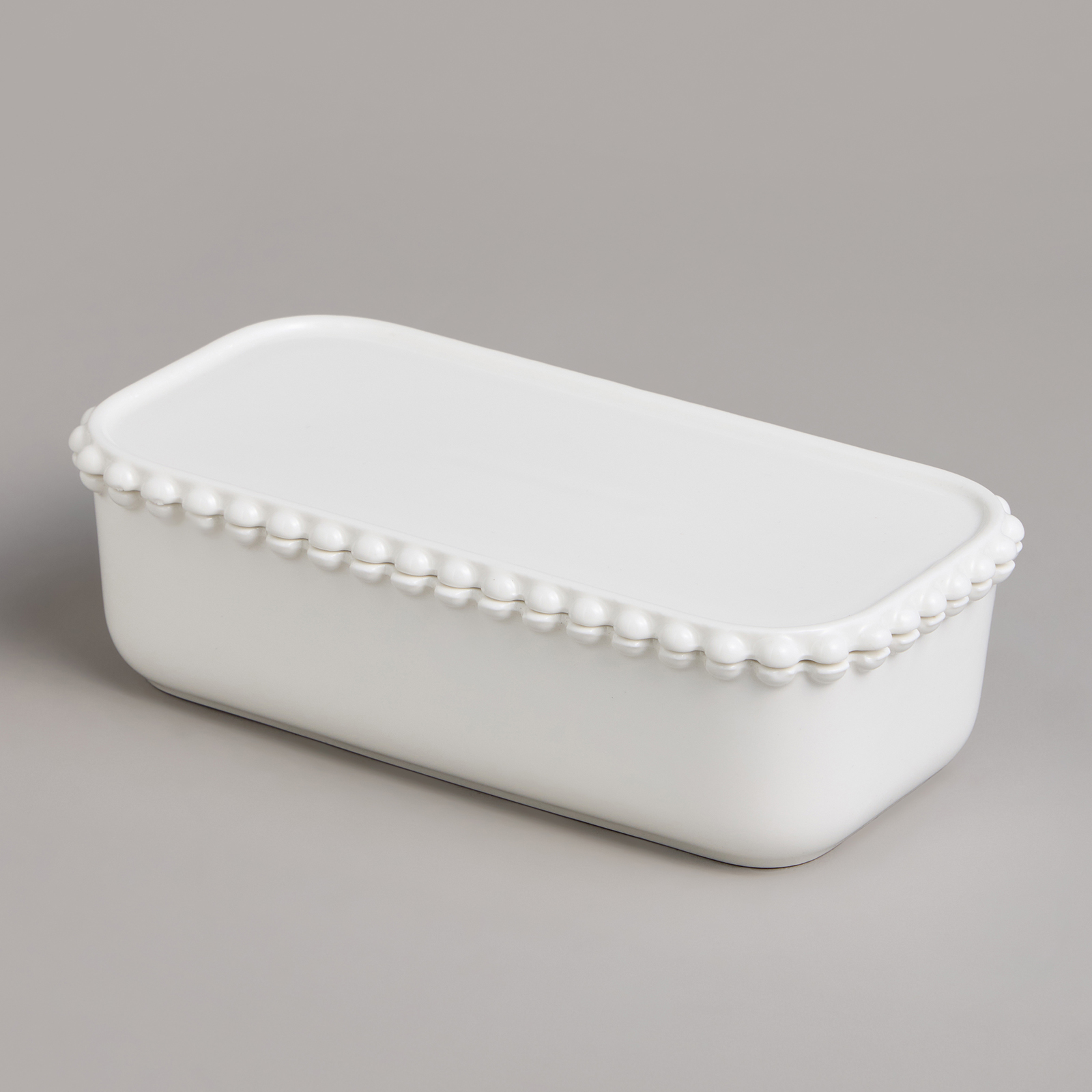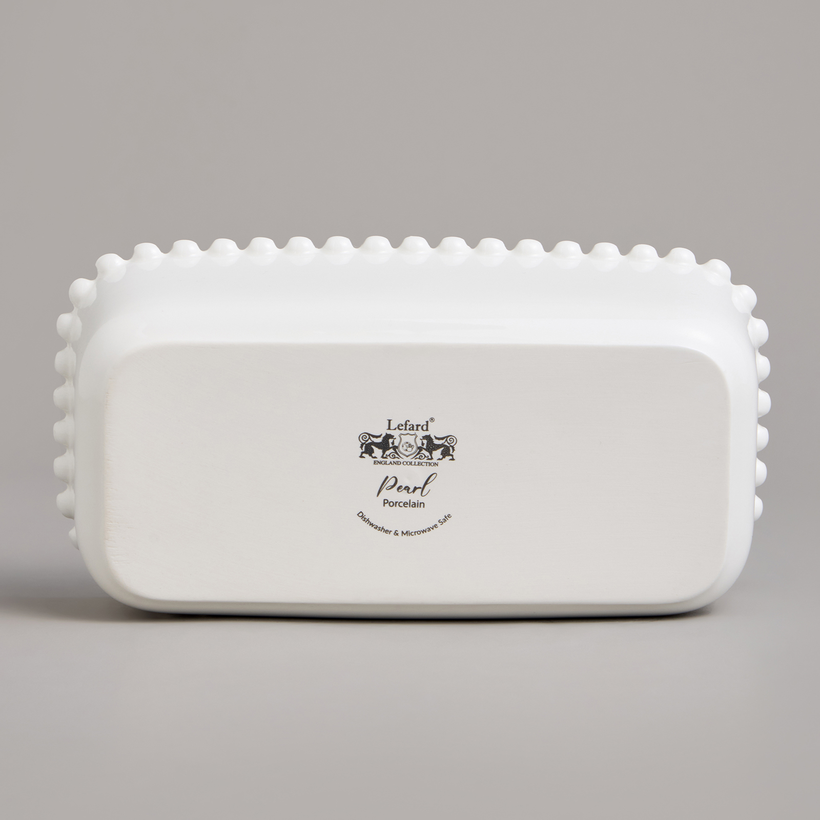 ТМ LEFARD коллекция "PEARL - ЖЕМЧУЖИНА" - трендовая, белоснежная, с оригинальным рельефом по краю в виде горошин, базовая для любой сервировки, выполнена из упрочненного фарфора. Паштетница – это полезный инструмент для приготовления, хранения и красивой подачи блюда. Ваш стол неотразим! Удобные формы и размеры. Прекрасно сочетается с любой декорированной посудой. Можно мыть в посудомоечной машине, использовать в микроволновой печи.