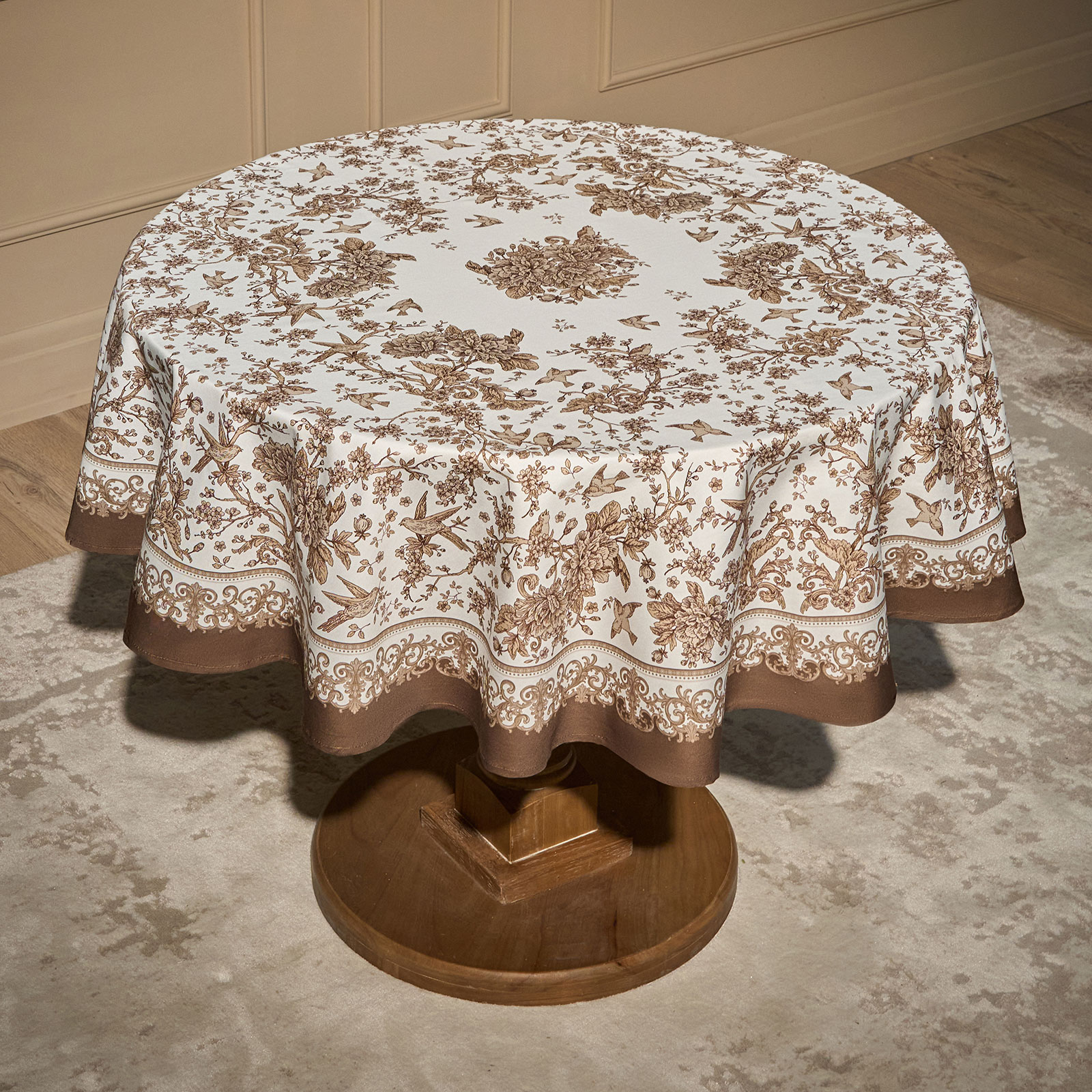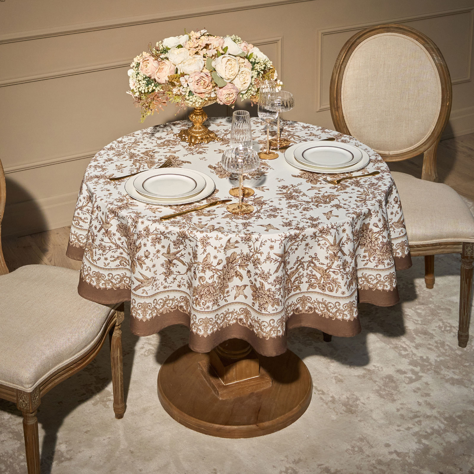 Диаметр 150 см, подходит для круглых и овальных столов обеспечивая эстетичный свес. Плотное хлопковое полотно устойчиво к износу, а цифровая печать сохраняет насыщенность цвета даже после многократных стирок.