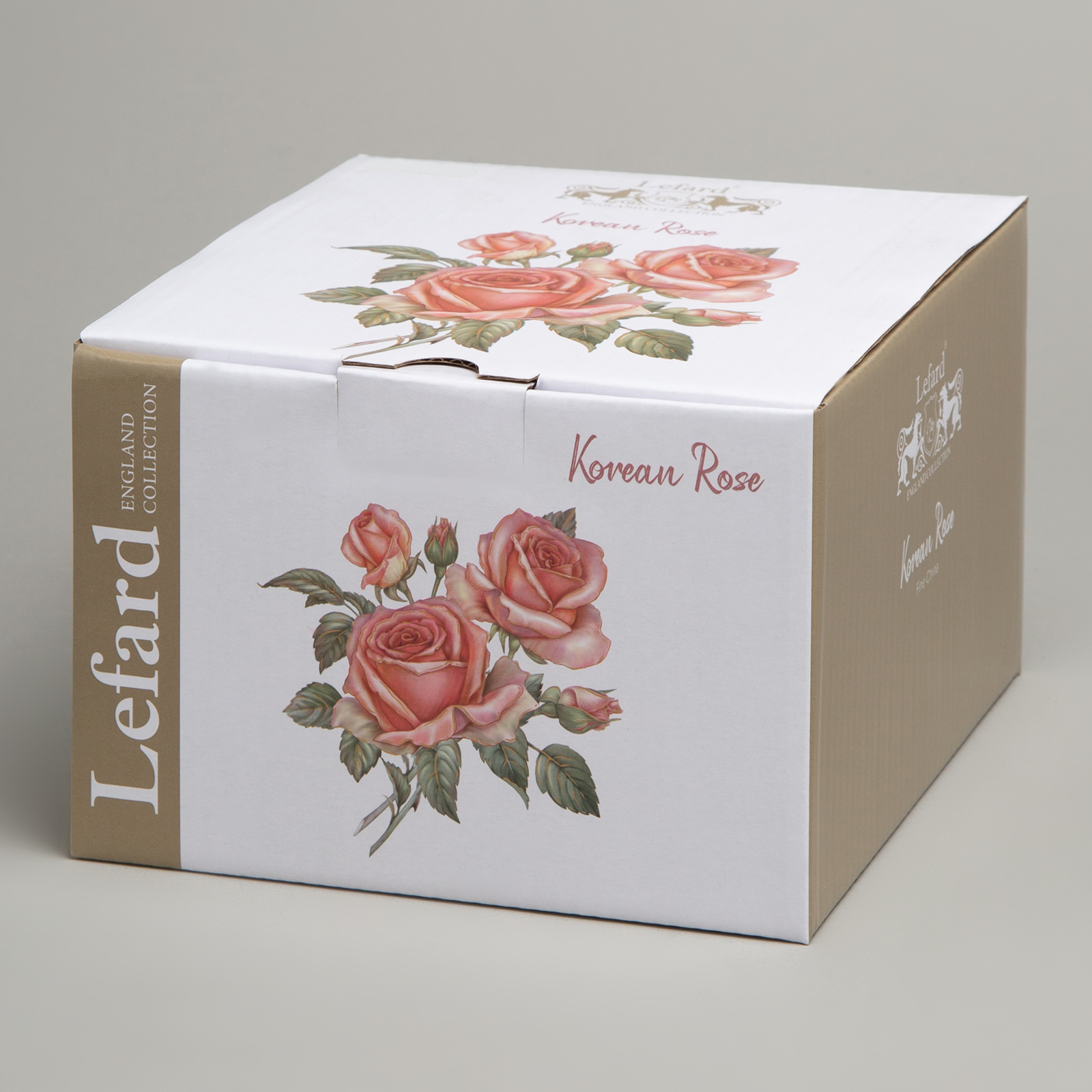 TM LEFARD коллекция "Корейская роза" - это ремейк эксклюзивной коллекции роз на современных формах с окантовкой под золото. Нежные цветы легко узнаваемы и любимы многими. Роза - королева цветов, она популярна во всём мире с древних времен. Этот цветок выглядит изящно и утончённо, считается символом любви, красоты и романтики. Тонкостенный белый фарфор, рельефная деколь, красочная упаковка делают предметы коллекции прекрасным подарком по любому случаю. Продукция сертифицирована и безопасна для контакта с пищевыми продуктами. Можно использовать в микроволновой печи, не рекомендуется мыть в посудомоечной машине.
