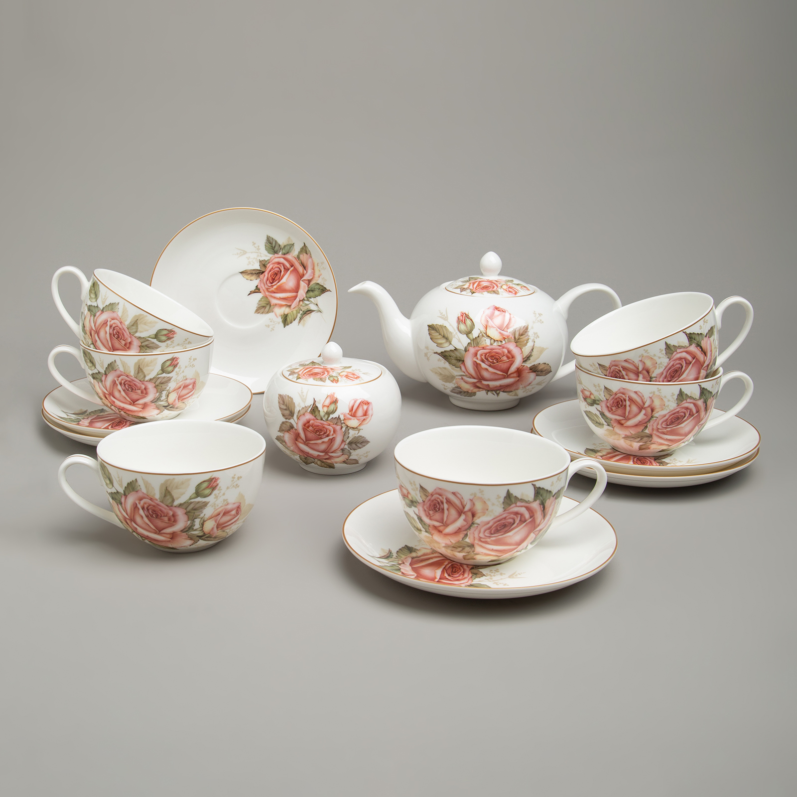 СЕРВИЗ ЧАЙНЫЙ LEFARD "КОРЕЙСКАЯ РОЗА" НА 6 ПЕР. 14 ПР. (КОР=2НАБ.)