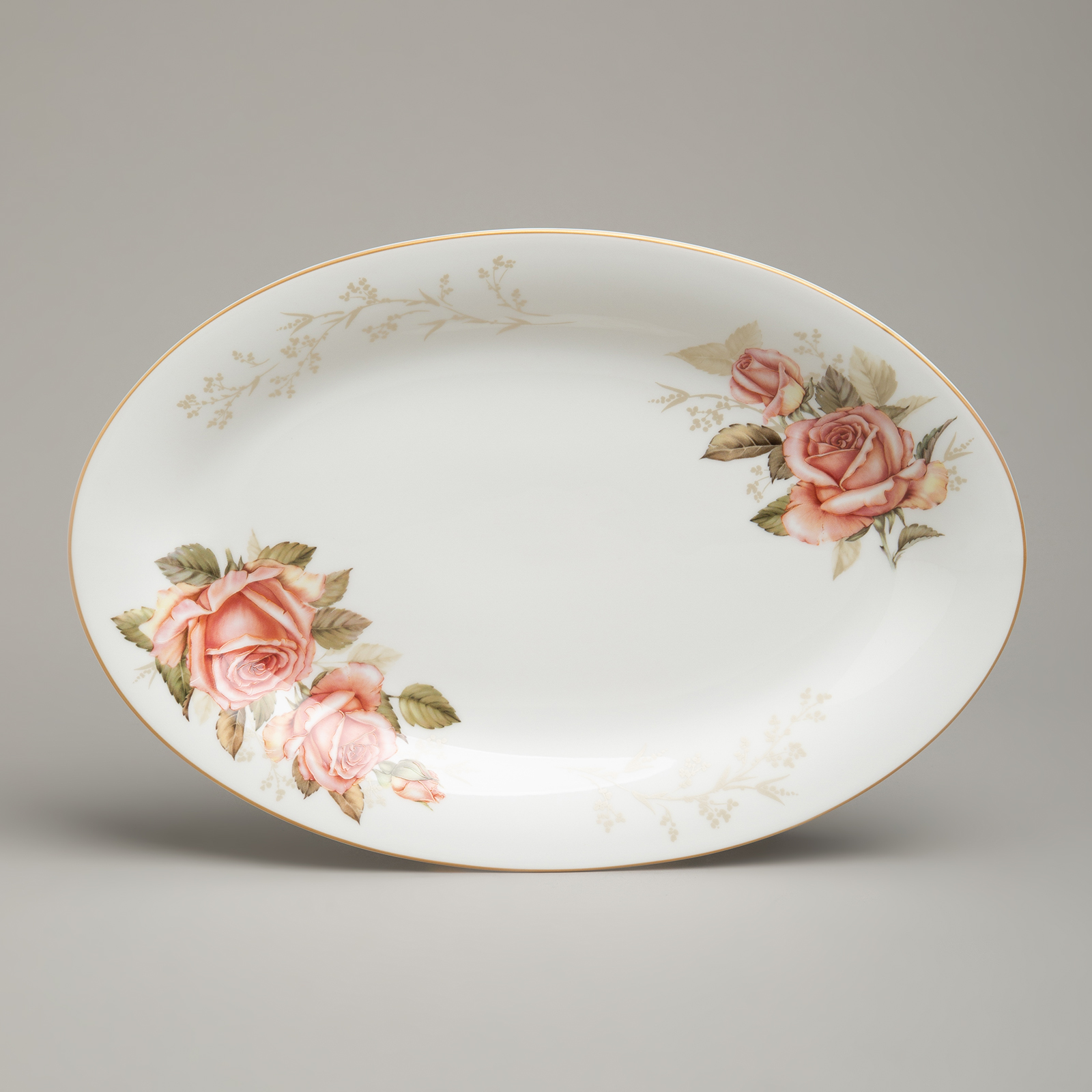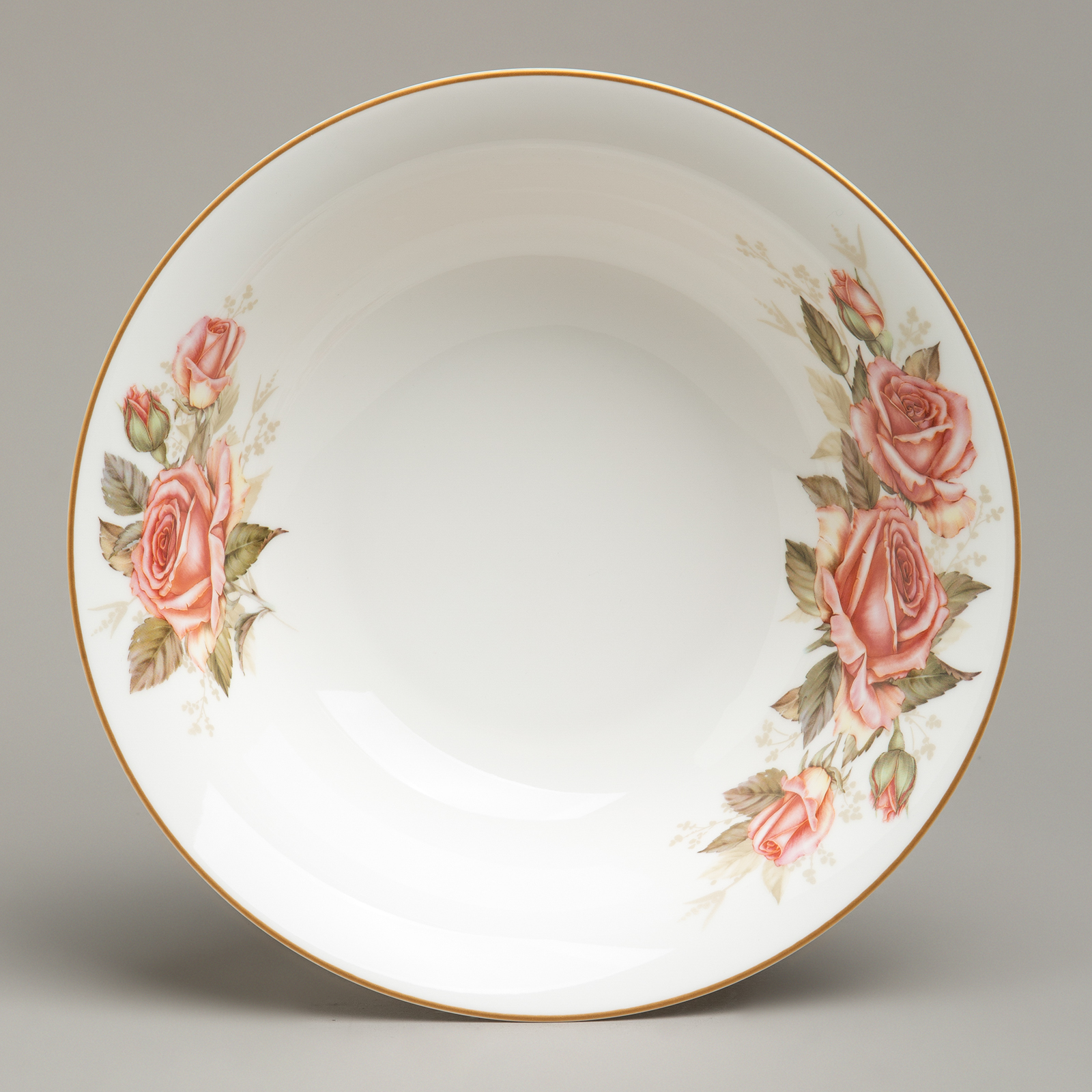 Комплектность: тарелка обеденная 25,5 см 6 шт., тарелка закусочная 20,5 см 6 шт, салатник-тарелка суповая 18*5 см 700 мл 6 шт, блюдо овальное 32*22 см 2 шт., салатник 23*7 см 1400 мл 1 шт., салатник 15,5*5 см 400 мл 2 шт.