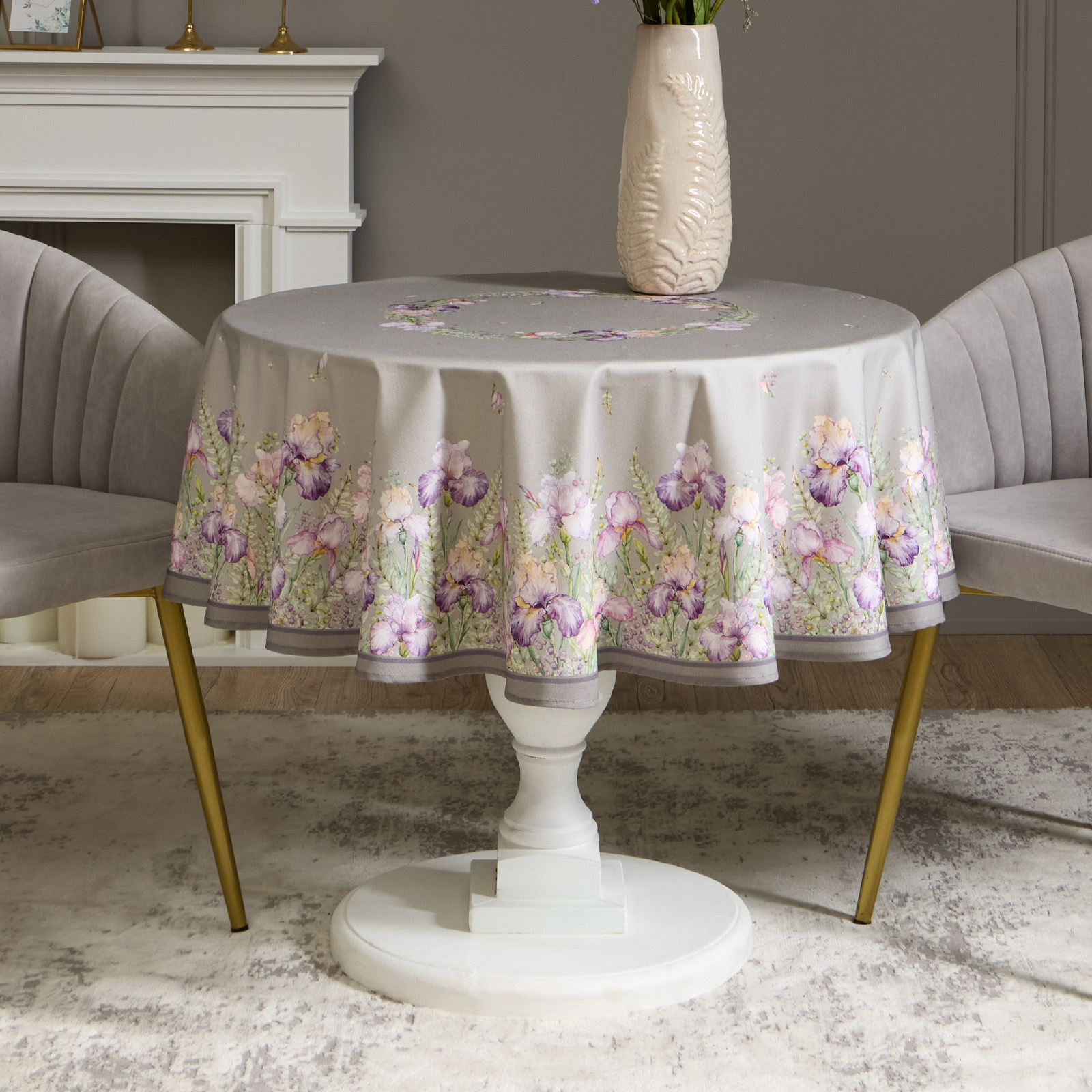 Круглая скатерть 150 см водоотталкивающая из хлопка с цветочным принтом “Irises” от Lefard