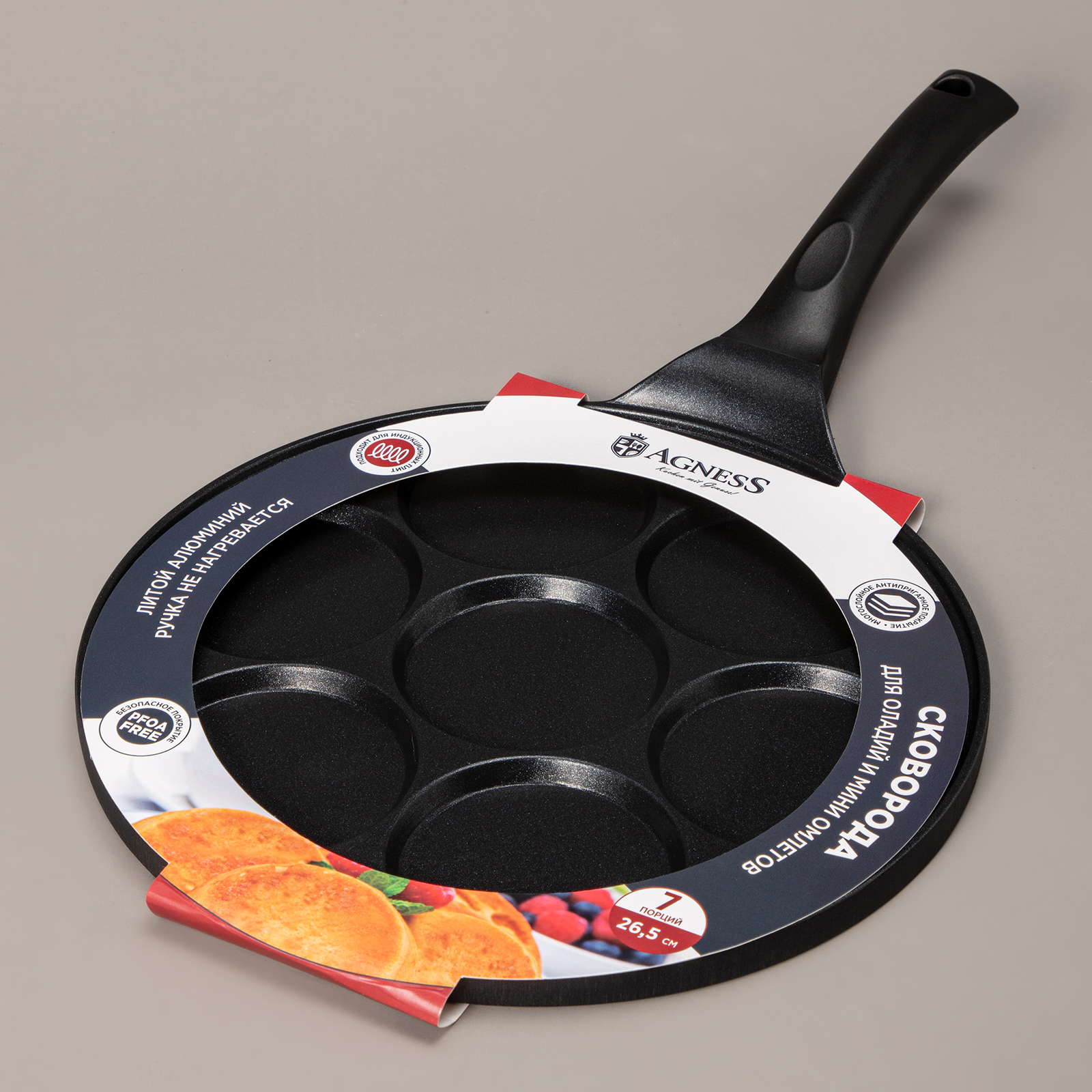 СКОВОРОДА AGNESS ДЛЯ ОЛАДИЙ С АНТИПРИГАР.ПОКРЫТИЕМ, ИНДУКЦИЯ, ДИАМЕТР=26.5 СМ