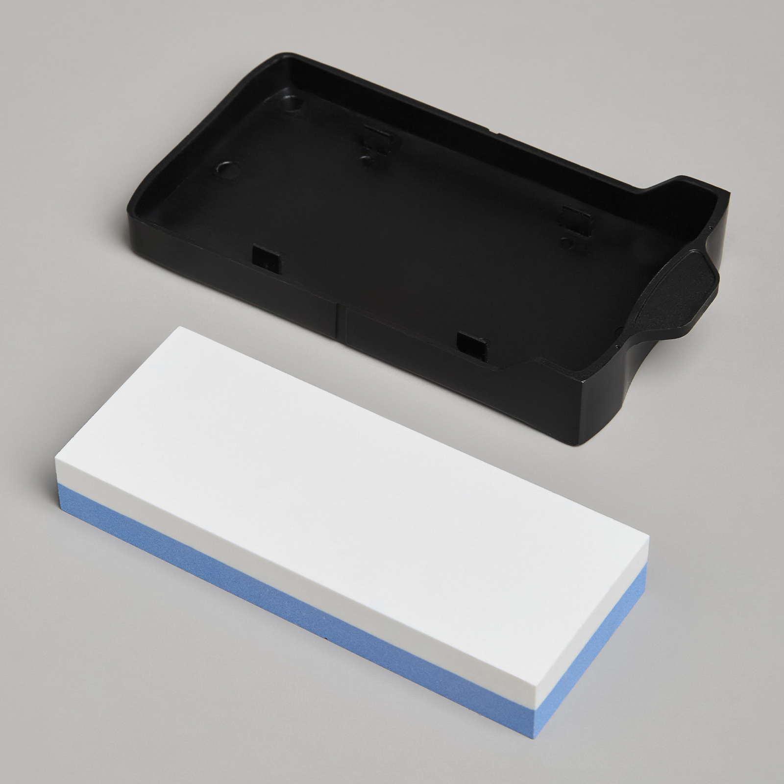Перед началом заточки точильный камень необходимо смочить водой. Начинайте заточку ножей со стороны, обладающей большей зернистостью (800 грит), затем перейдите на мелкозернистую сторону (2000 грит).
