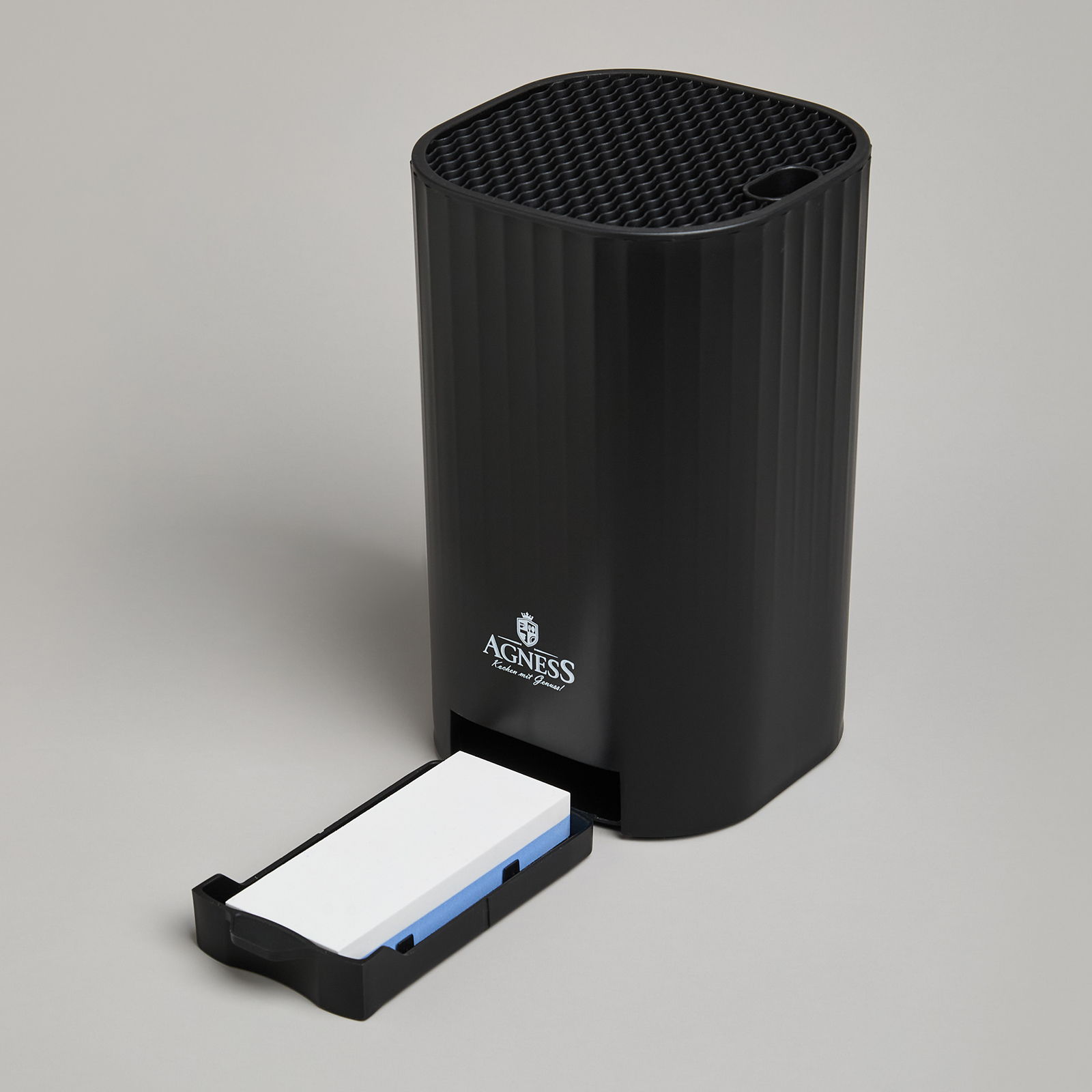 ПОДСТАВКА ДЛЯ НОЖЕЙ AGNESS С ТОЧИЛЬНЫМ КАМНЕМ 13,6*14,6*23 СМ