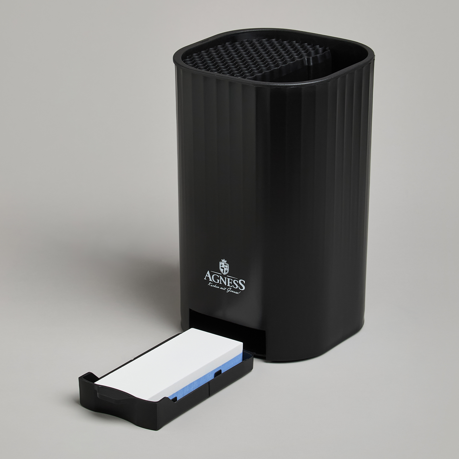 ПОДСТАВКА ДЛЯ НОЖЕЙ AGNESS С ТОЧИЛЬНЫМ КАМНЕМ 13,6*14,6*23 СМ
