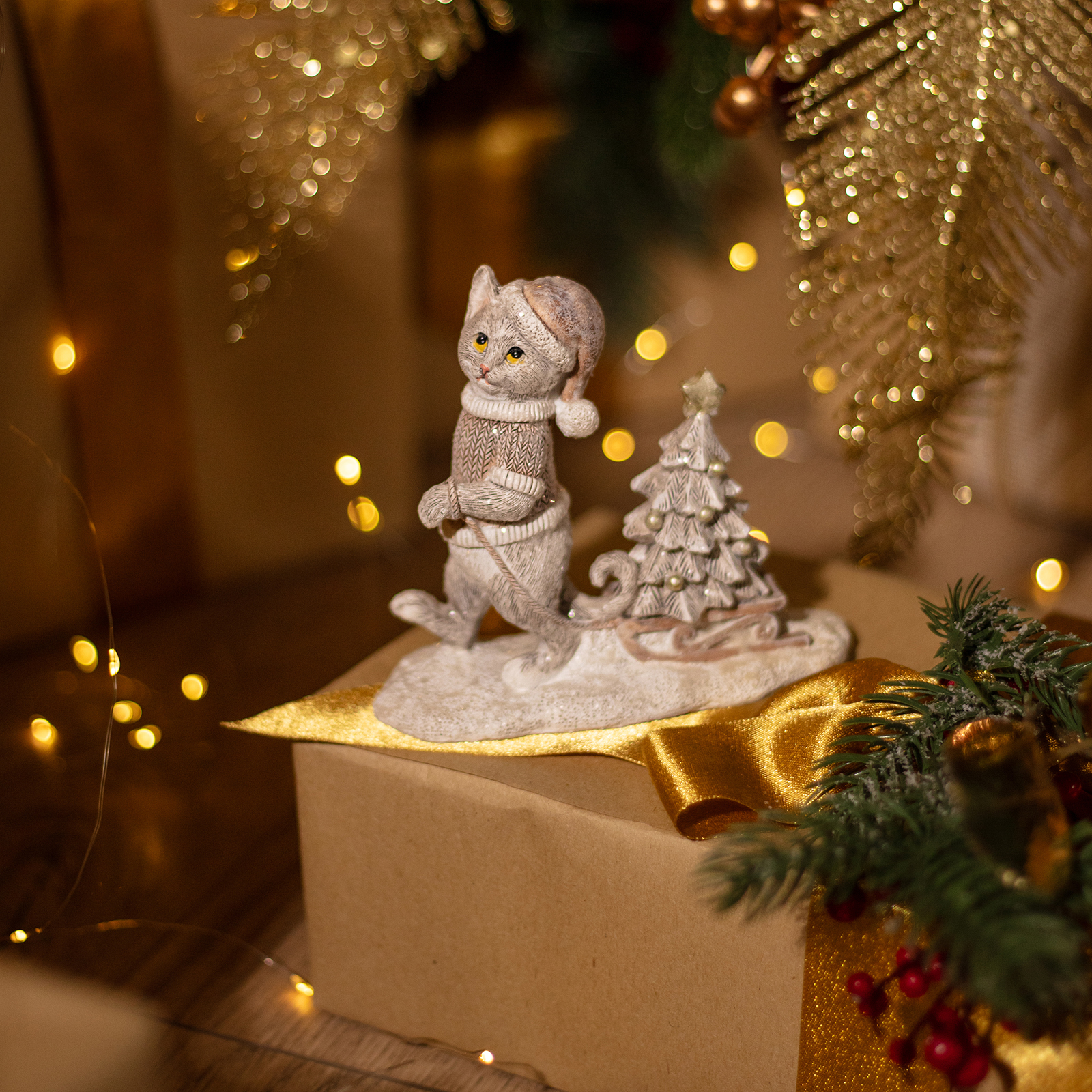 СТАТУЭТКА "КОТИК С ЕЛОЧКОЙ" 13Х5,5Х11,5 СМ