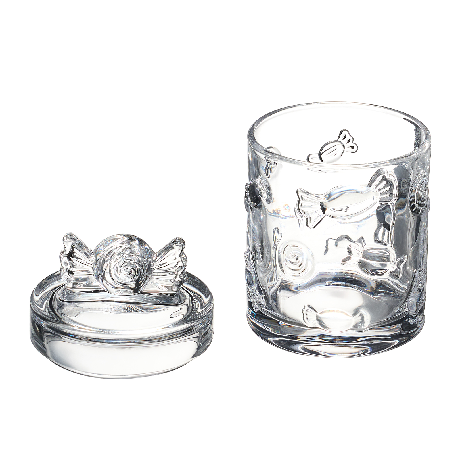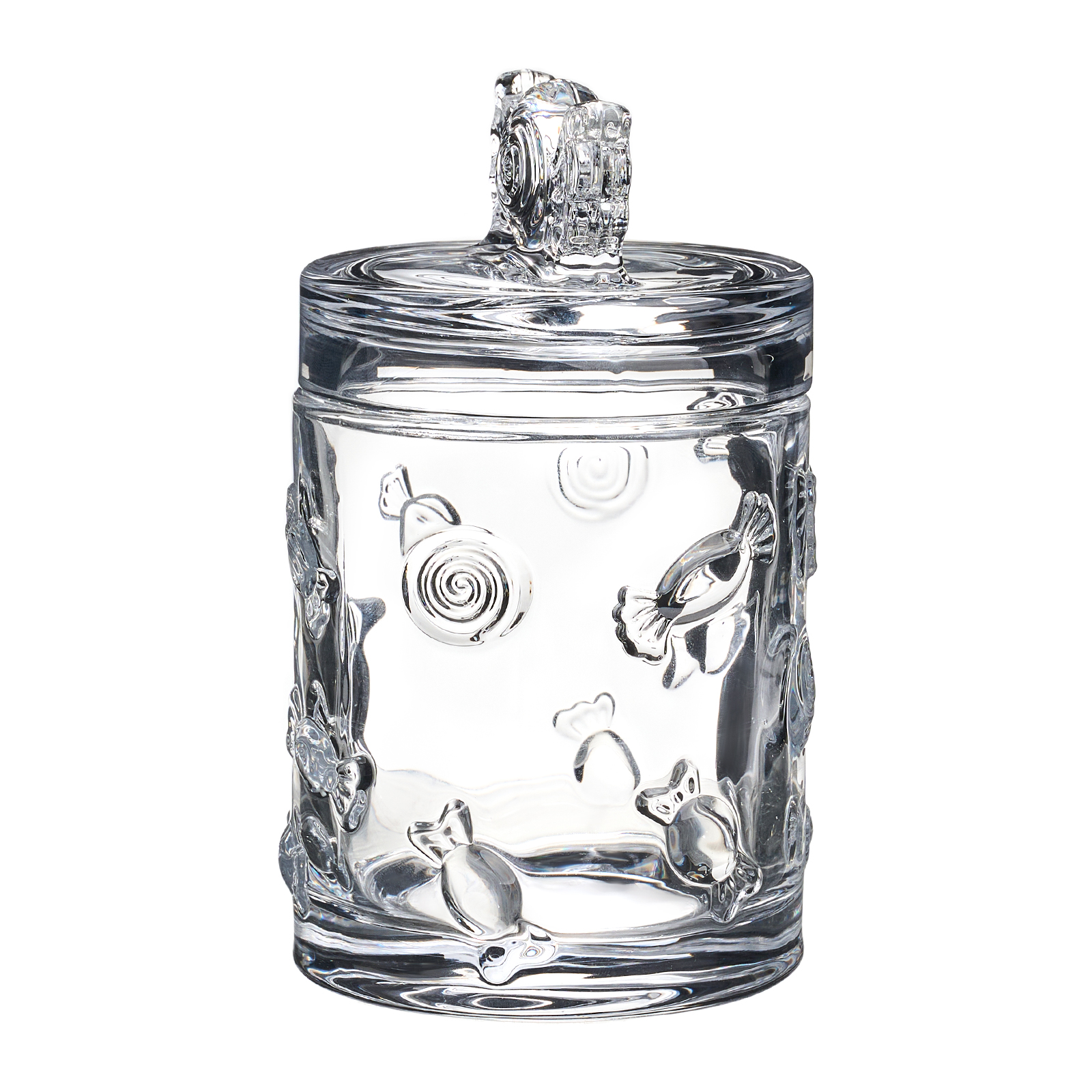 Эта ёмкость — настоящее произведение искусства, созданное из прозрачного стекла и украшенное уникальными рельефными узорами. Каждая линия, каждый элемент дизайна отражает историю и мастерство, воплощённые в этом предмете. Она не просто ёмкость для хранения — это настоящий декоративный аксессуар, который преобразит любое пространство.