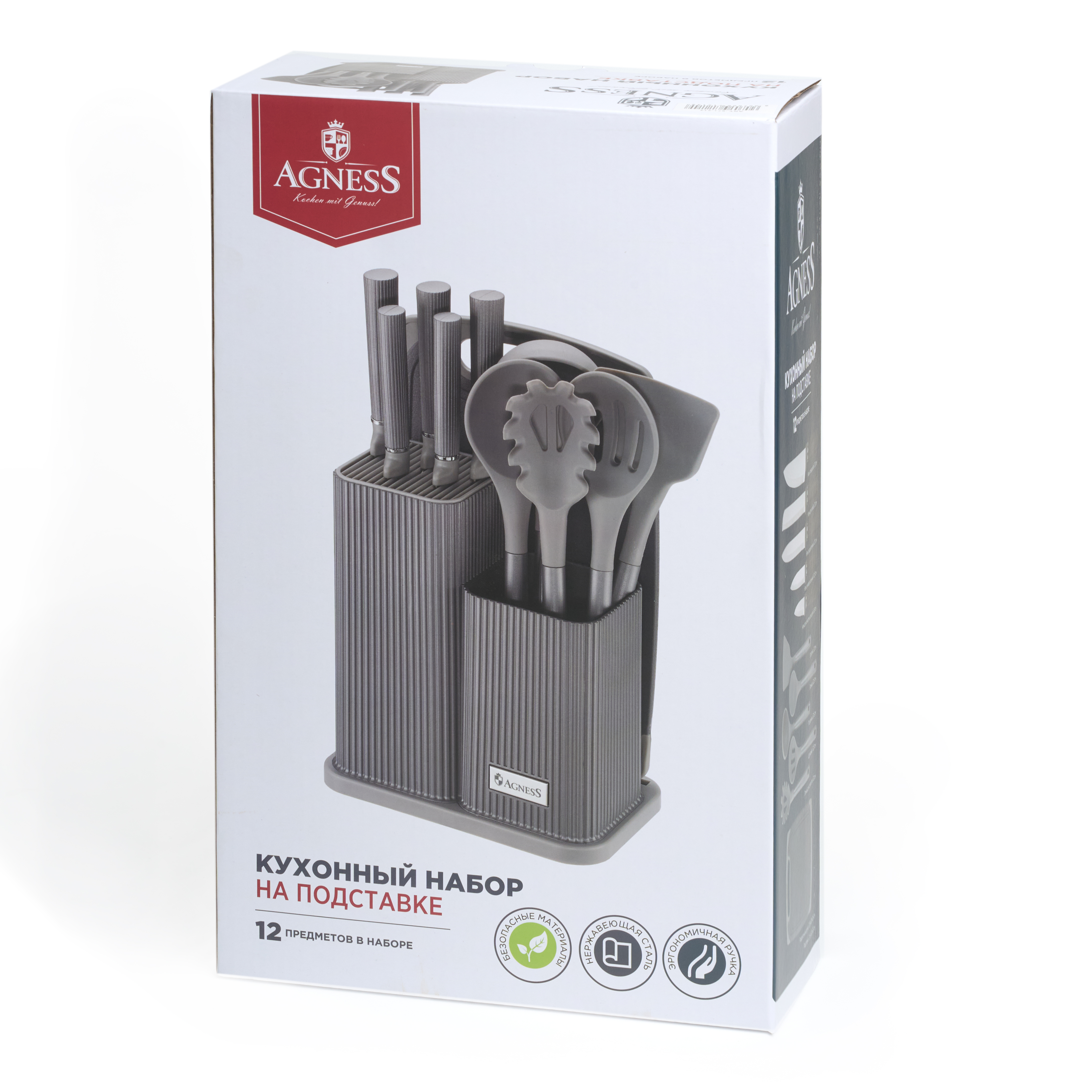 НАБОР AGNESS ИЗ 12ПР: 5 НОЖЕЙ,ДОСКА,ПОДСТАВКА,ПОЛОВНИК,ЛОЖКА,ЛОПАТКА,ШУМОВКА,ЛОЖКА ДЛЯ СПАГЕТТИ